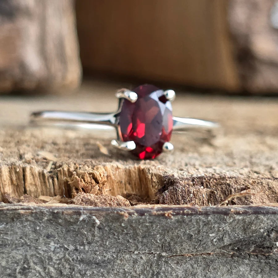 Granat symbolizuje siłę, odwagę i pasję, wzmacniając pozytywną energię i pewność siebie. Oferuje stabilność emocjonalną i pomaga w osiąganiu celów.