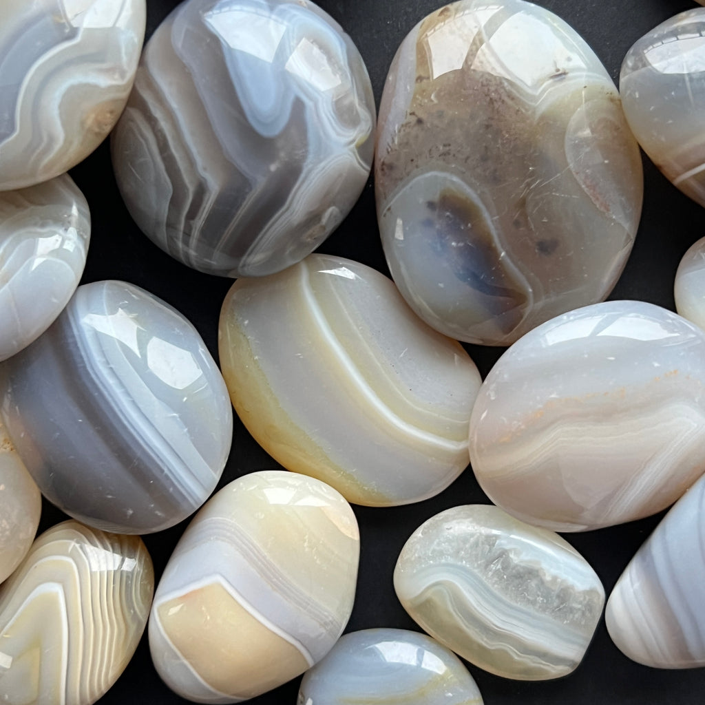 Agat: Dzięki swoim właściwościom ochronnym i stabilizującym, agat może zapewnić Twojej mamie poczucie bezpieczeństwa i komfortu w jej otoczeniu.