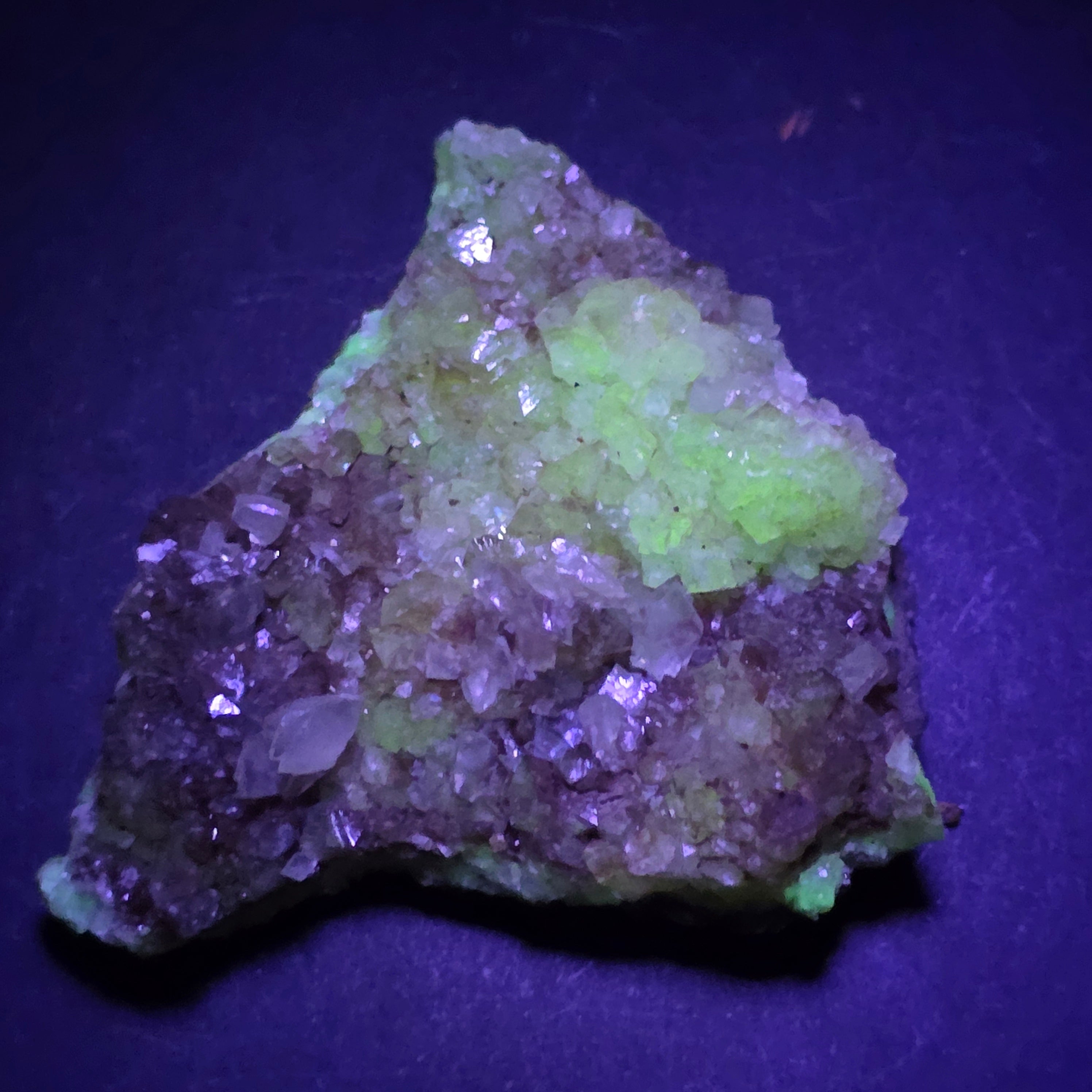 Acest specimen de adamit din Mexic, provenit din faimoasa Mina Ojuela, Mapimí – Durango, este o piesă mineralogică de colecție, extrem de apreciată pentru culoarea sa intensă, verde-gălbuie, și pentru fluorescența spectaculoasă sub lumină UV. Mina Ojuela este considerată una dintre cele mai importante localități clasice din lume pentru adamit, piesele de aici fiind de referință pentru acest mineral.
