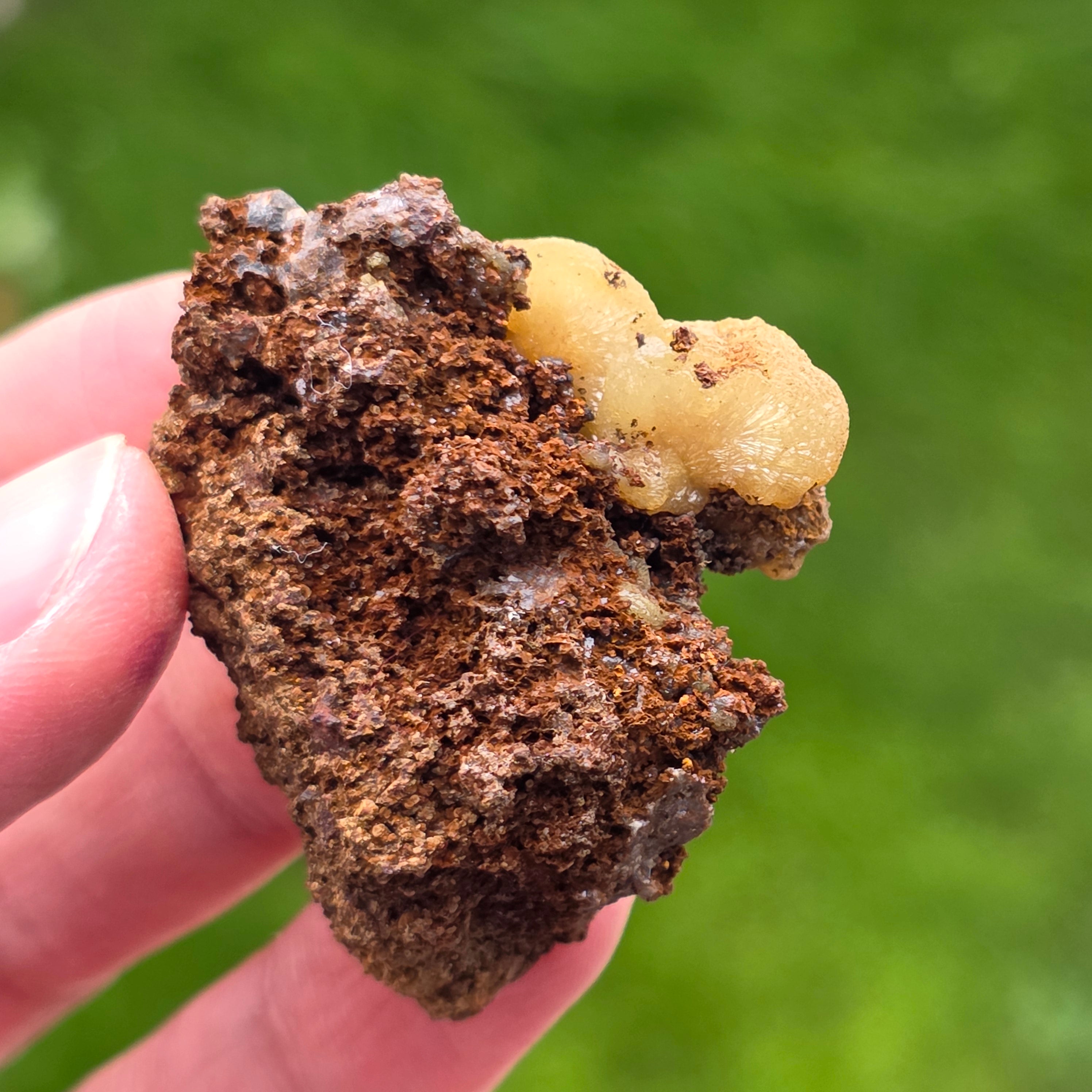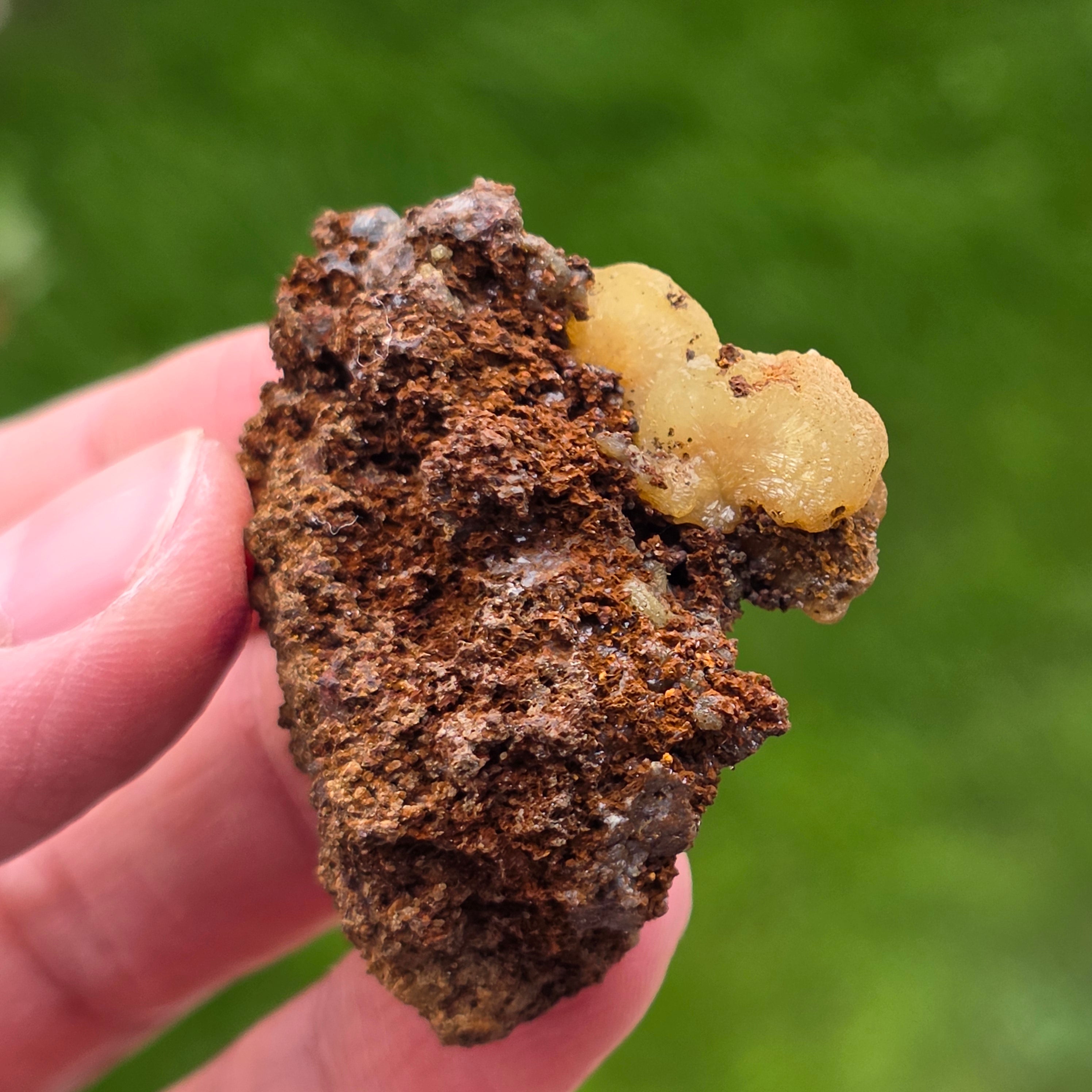 Acest specimen de adamit din Mexic, provenit din faimoasa Mina Ojuela, Mapimí – Durango, este o piesă mineralogică de colecție, extrem de apreciată pentru culoarea sa intensă, verde-gălbuie, și pentru fluorescența spectaculoasă sub lumină UV. Mina Ojuela este considerată una dintre cele mai importante localități clasice din lume pentru adamit, piesele de aici fiind de referință pentru acest mineral.