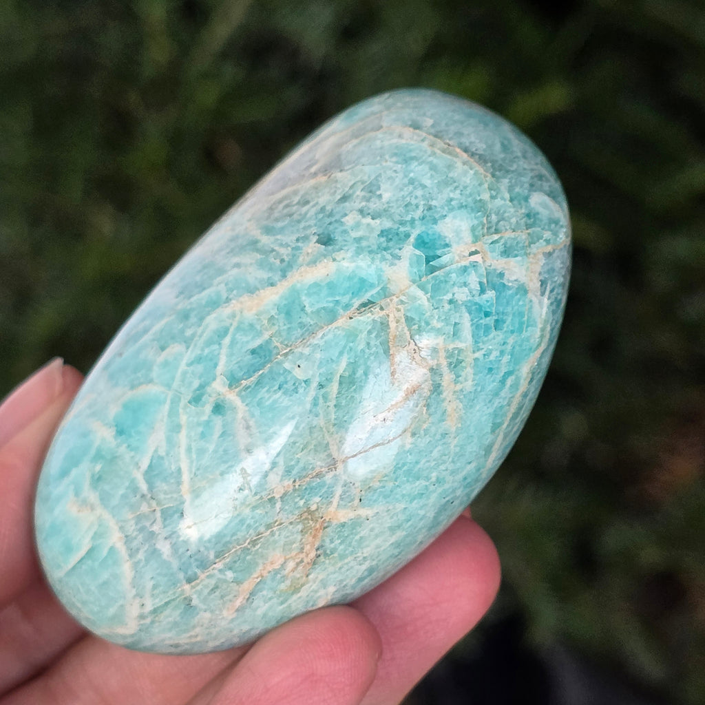 Amazonit nazywany jest również zwiastunem pokoju. Uważa się, że jest to kamień równowagi, który może pomóc uspokoić nerwowość, emocje i zachęcić do autentycznej ekspresji oraz poprawić relacje z otaczającymi Cię osobami.