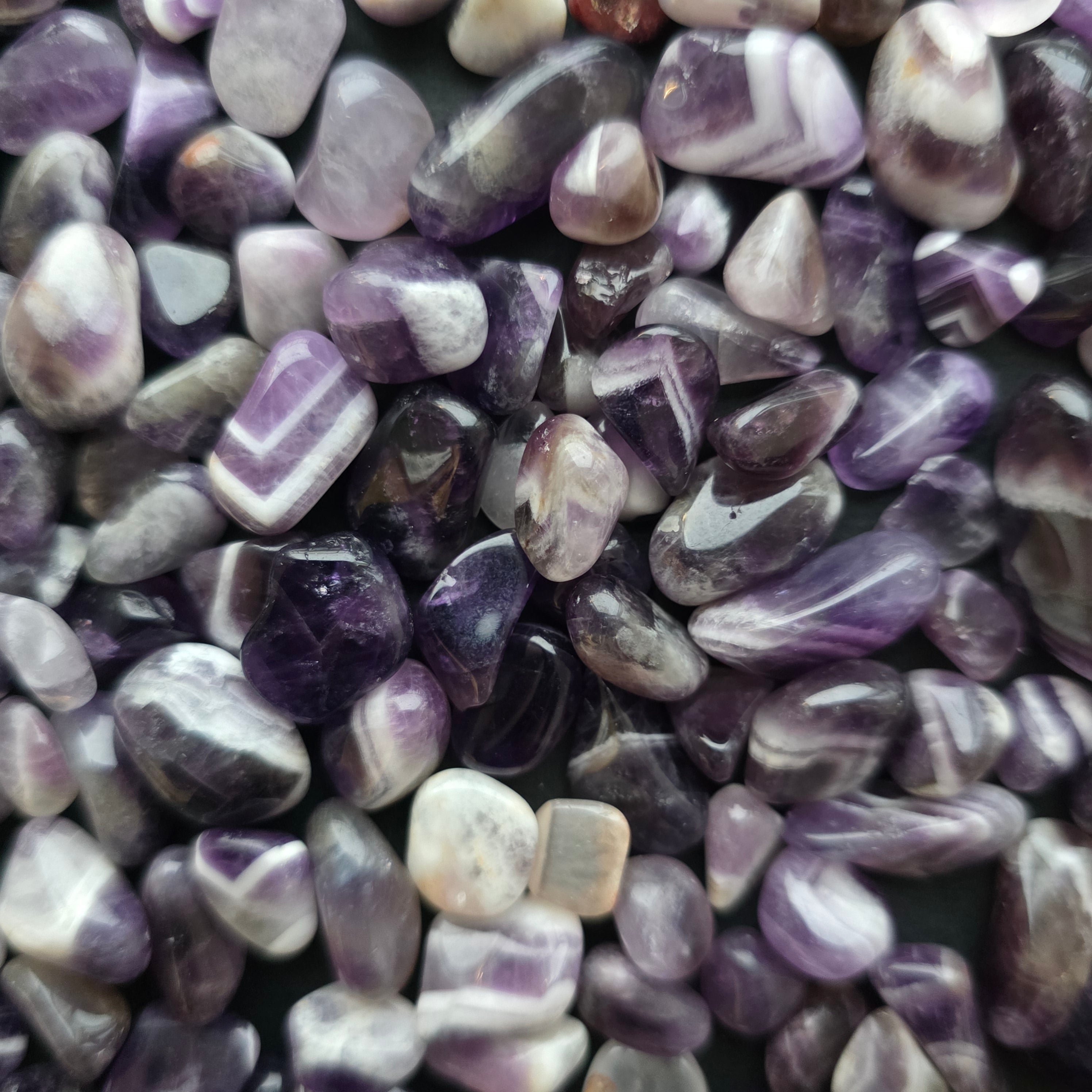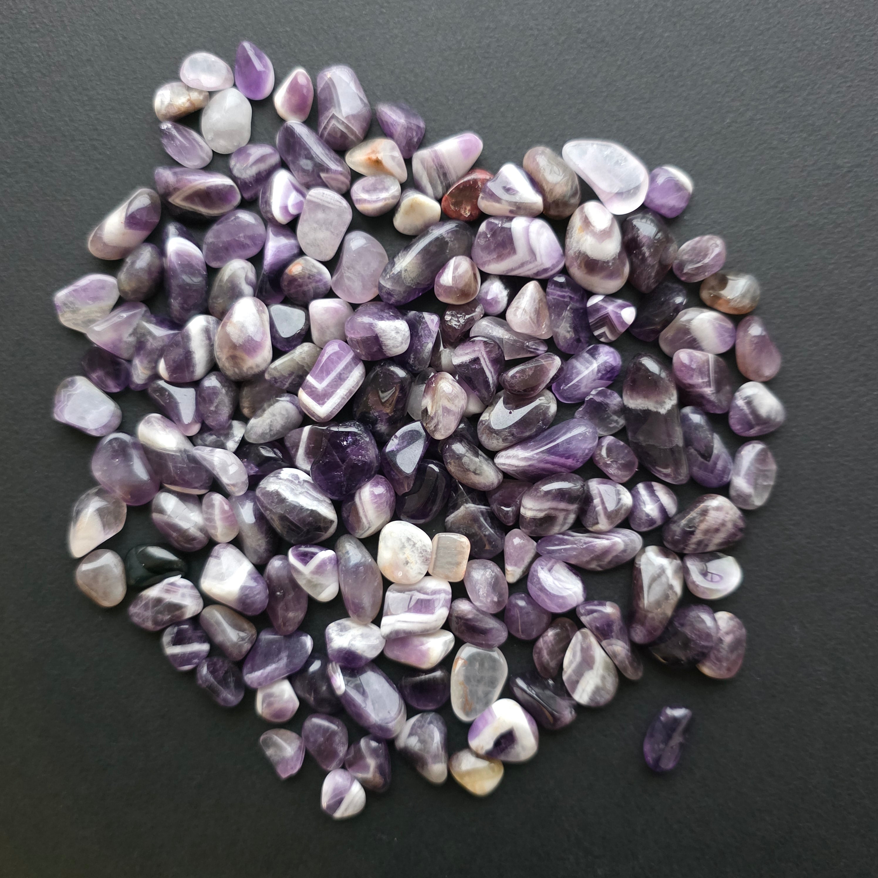 Tip: chipsuri ametist chevron Zambia (pietre mici șlefuite, neregulate)