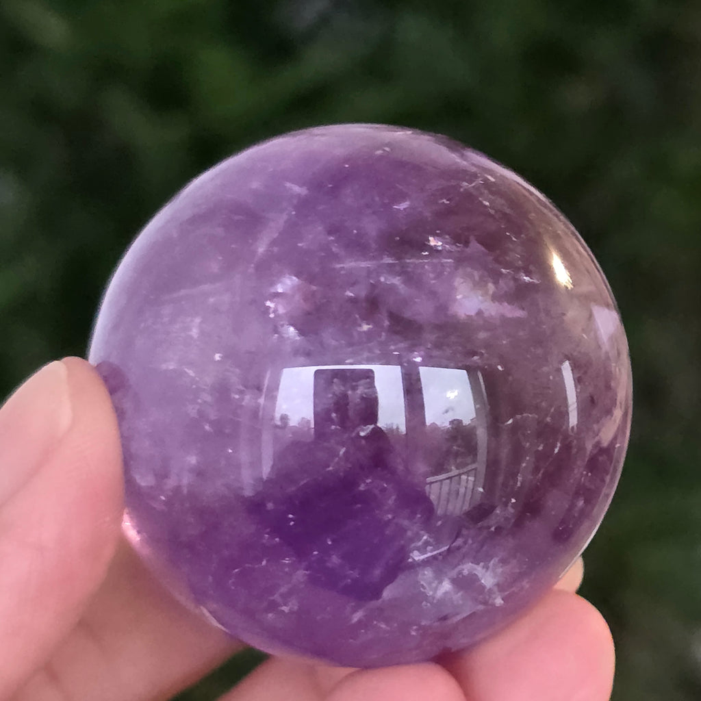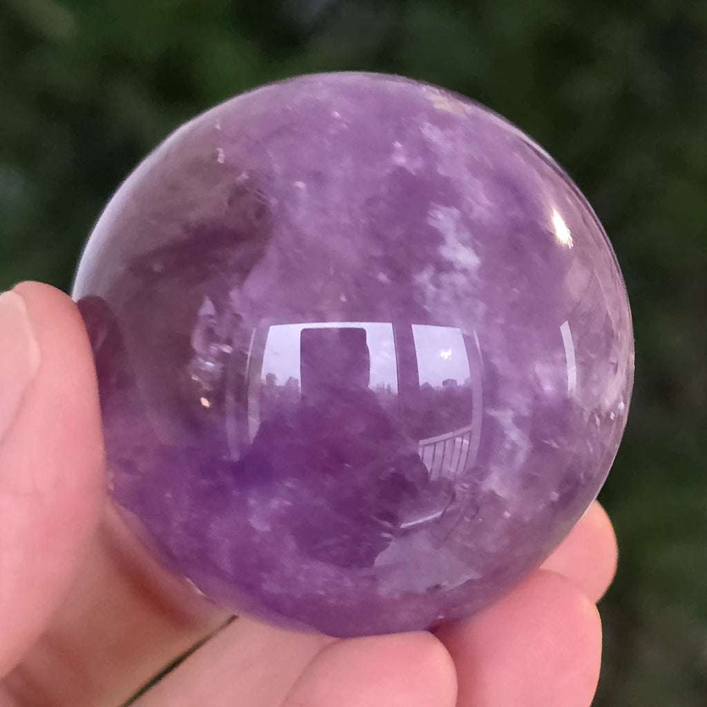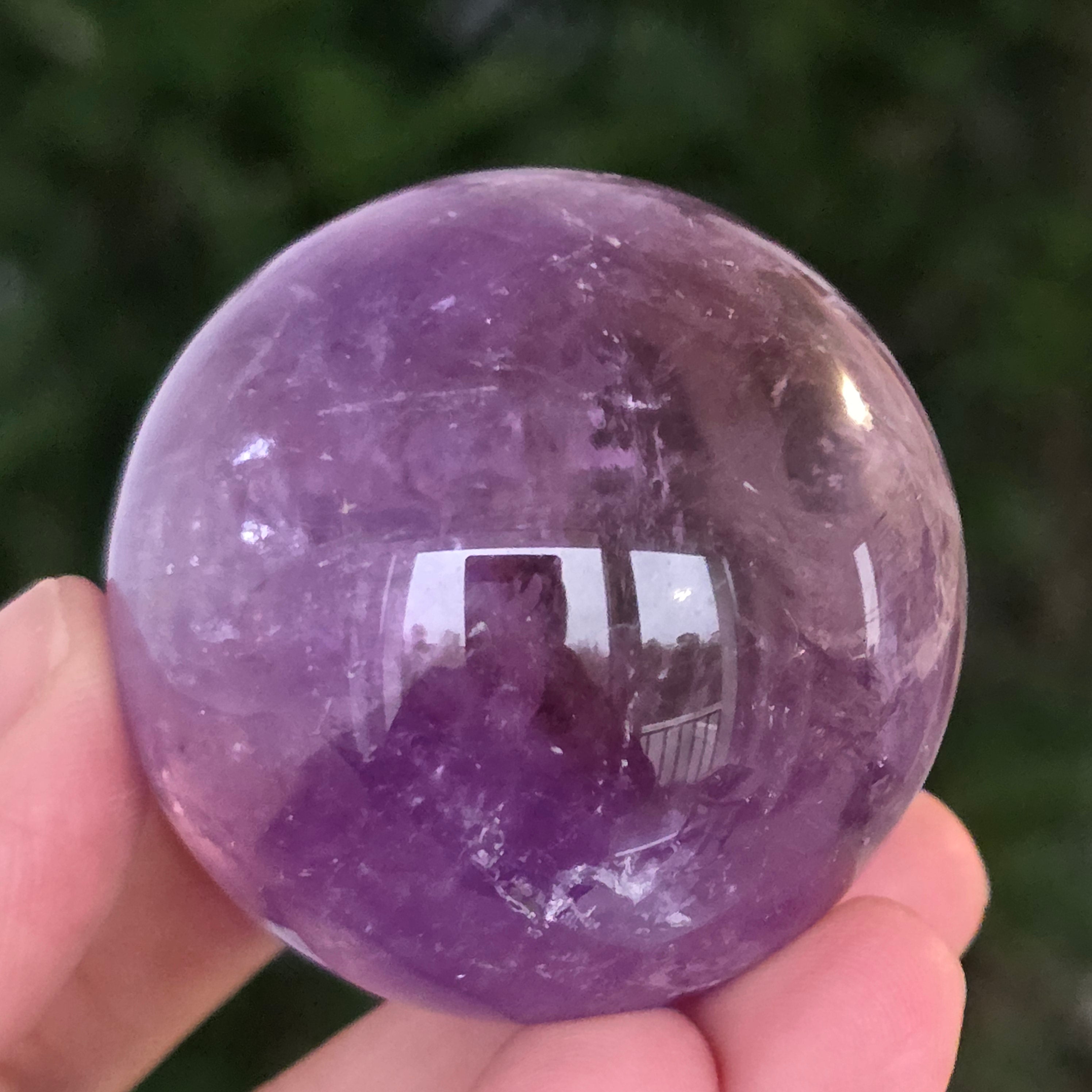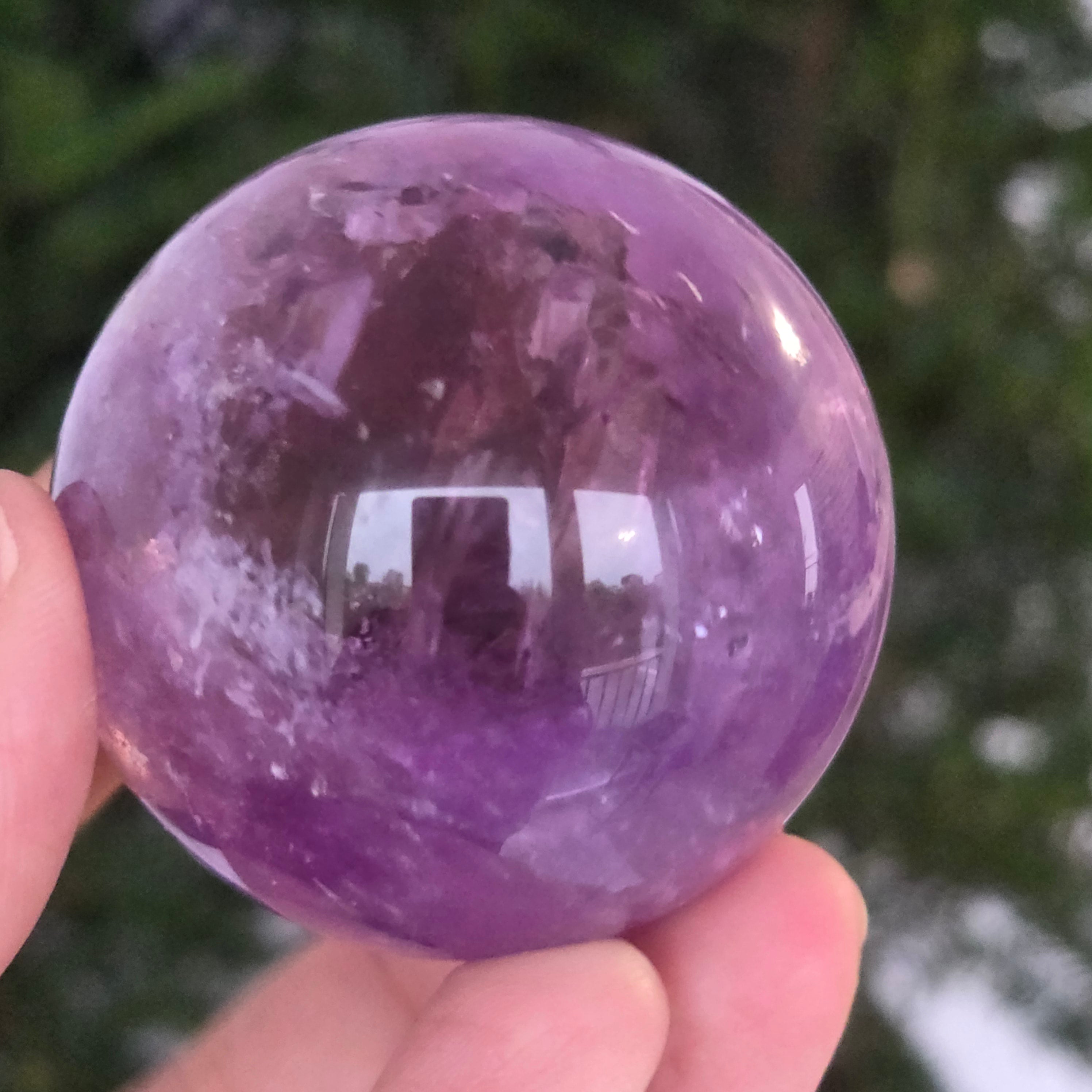Kula, która wydaje się uchwycić esencję nieba o zachodzie słońca. Ten unikalny kawałek naturalnego ametystu AA z Brazylii, emanuje głębokim, półprzezroczystym blaskiem, z odcieniami królewskiego fioletu, bzu i lawendy, które igrają w świetle. Idealnie wypolerowane wykończenie wydobywa czystość kryształu i finezję jego naturalnej tekstury – mineralny klejnot o klasycznym i zrównoważonym pięknie.