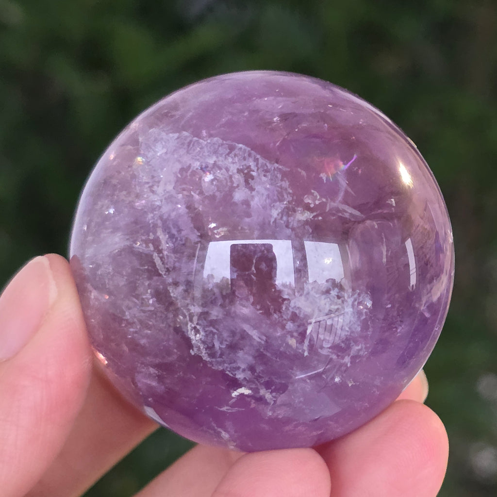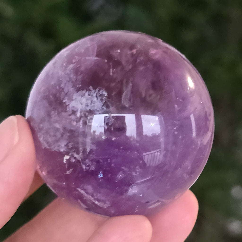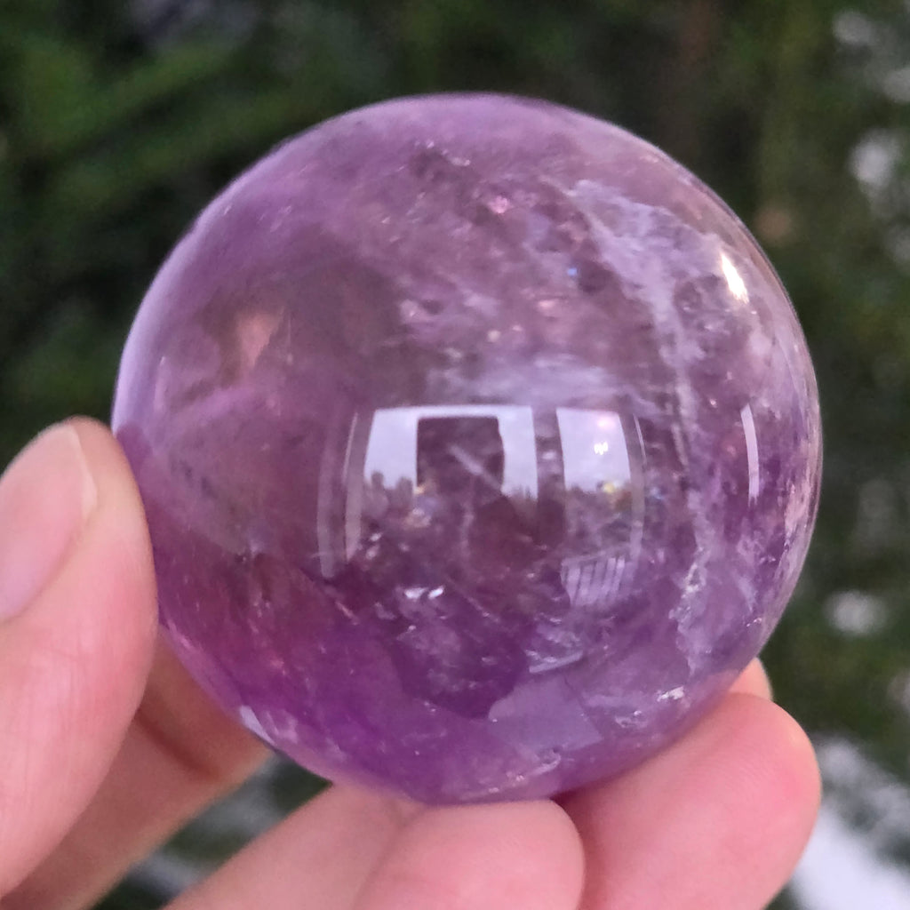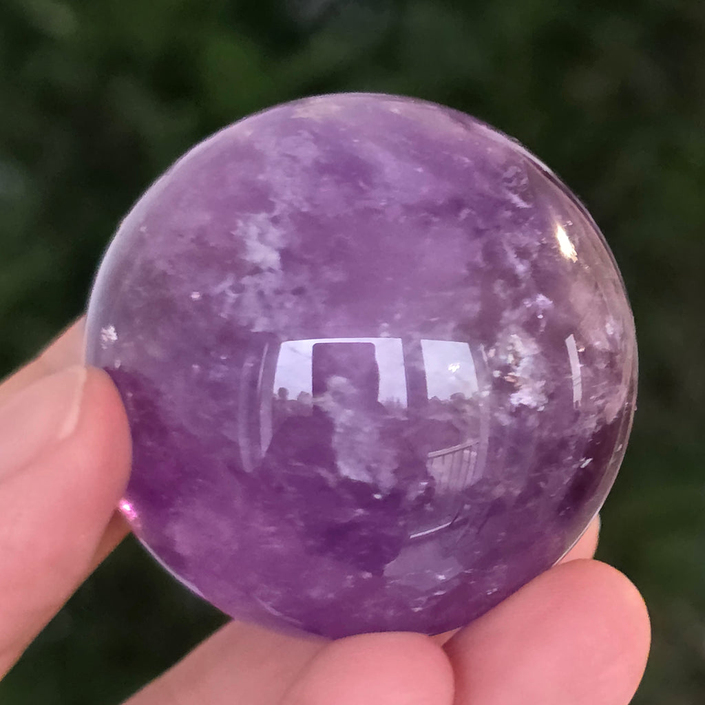 Kula, która wydaje się uchwycić esencję nieba o zachodzie słońca. Ten unikalny kawałek naturalnego ametystu AA z Brazylii, emanuje głębokim, półprzezroczystym blaskiem, z odcieniami królewskiego fioletu, bzu i lawendy, które igrają w świetle. Idealnie wypolerowane wykończenie wydobywa czystość kryształu i finezję jego naturalnej tekstury – mineralny klejnot o klasycznym i zrównoważonym pięknie.