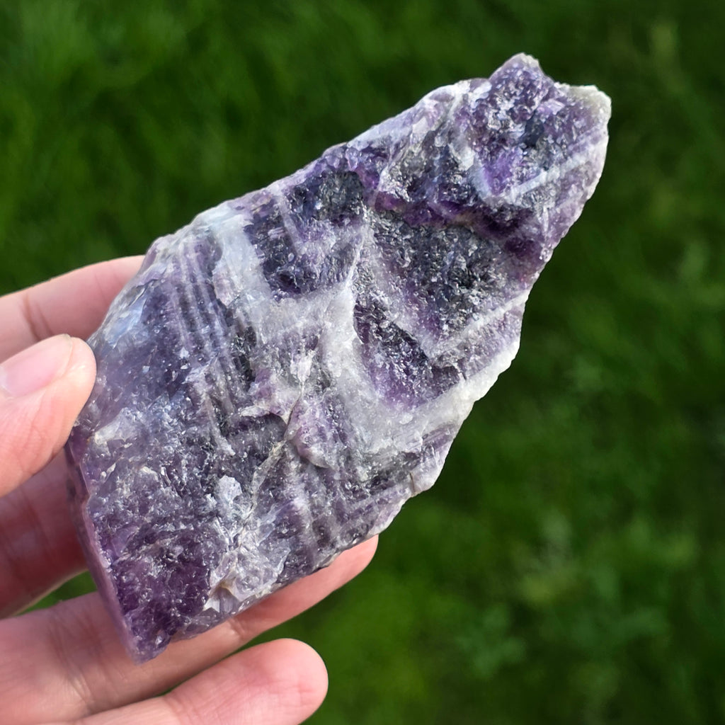 Ametyst Chevron może być używany w medytacji, jako biżuteria lub do nadania naturalnego i eleganckiego wyglądu domowi lub biuru.