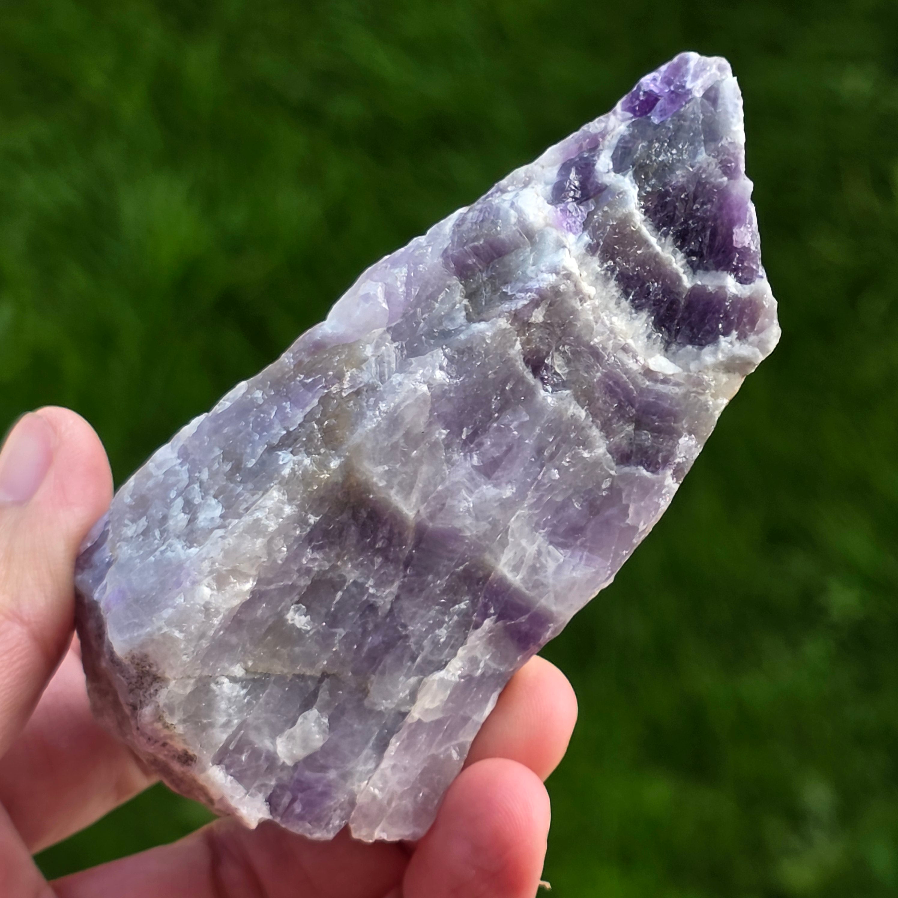 Ametyst Chevron może być używany w medytacji, jako biżuteria lub do nadania naturalnego i eleganckiego wyglądu domowi lub biuru.
