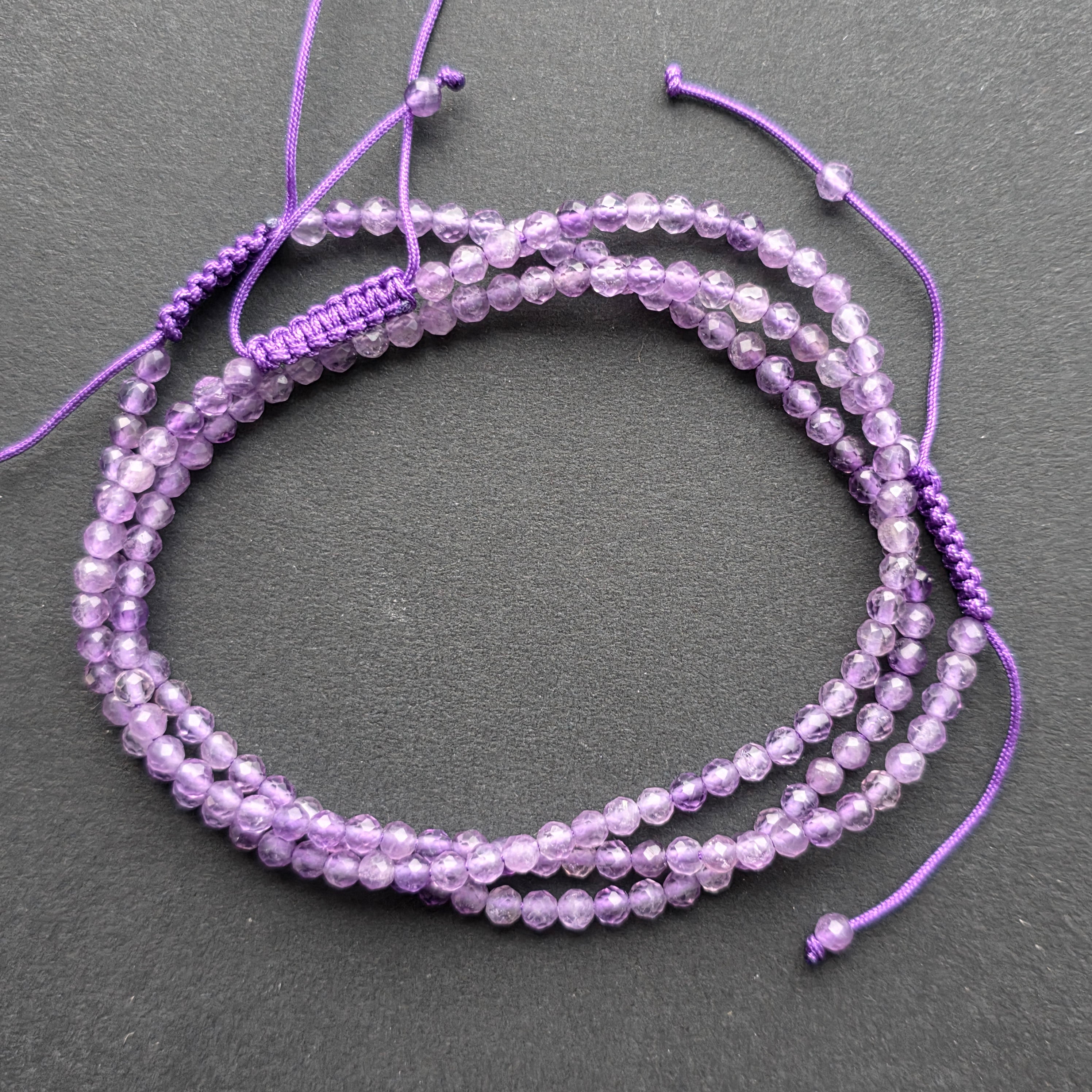 Opis - Ametystowe bransolety z fasetami 3 mm regulowany sznurek