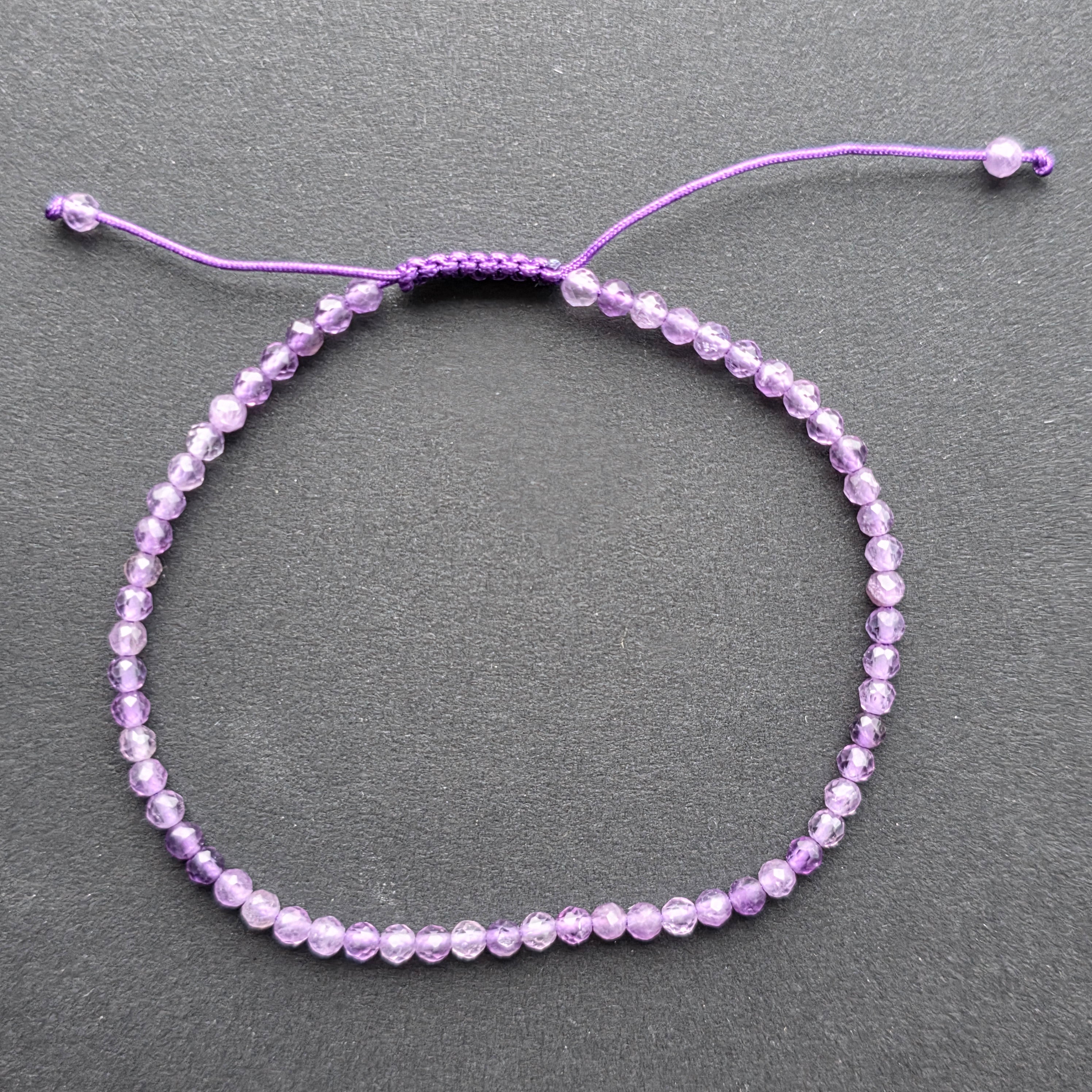 Ametystowe bransolety z fasetami 3 mm regulowany sznurek