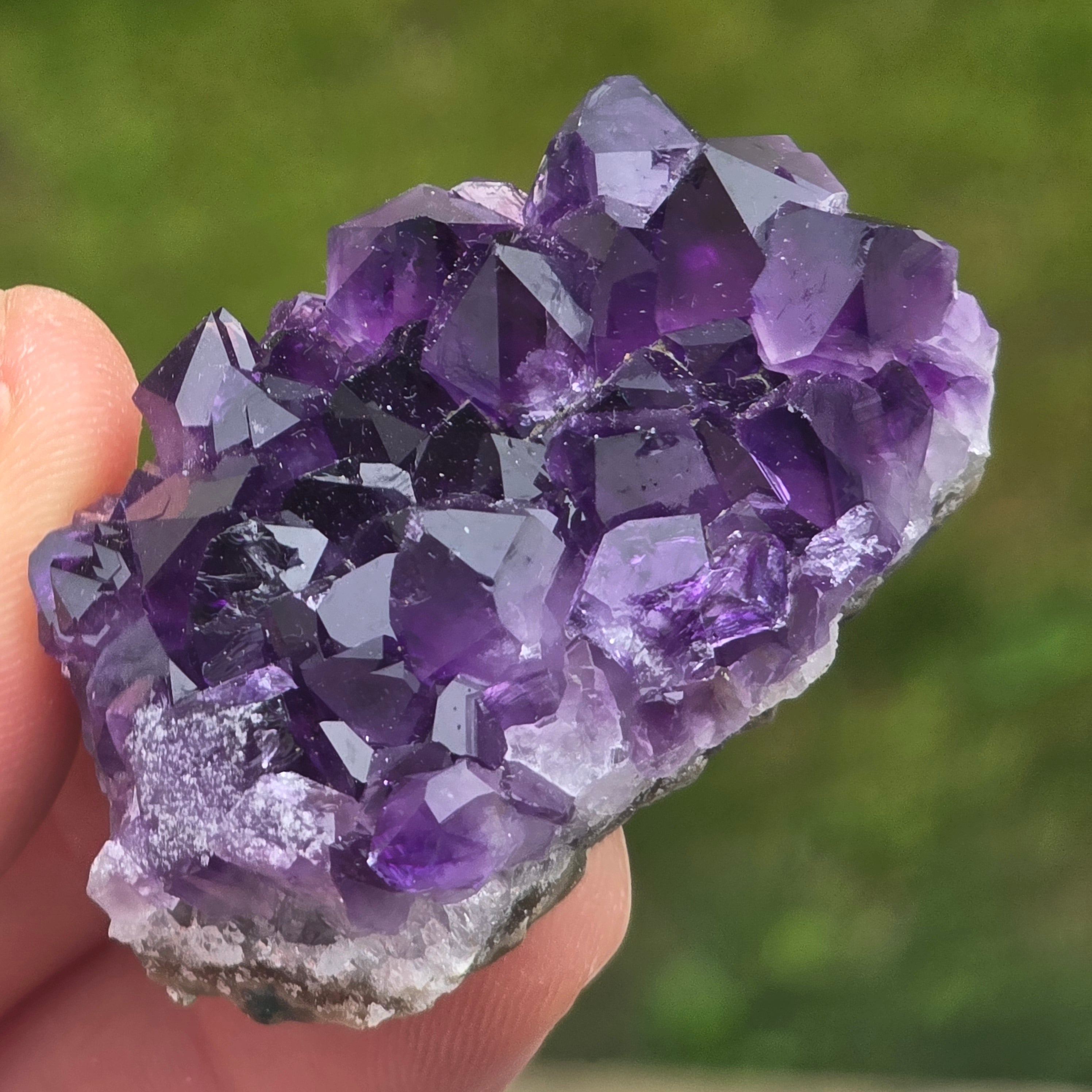 • Kolor: intensywny fiolet z połyskującymi refleksami, głęboki odcień charakterystyczny dla urugwajskiego ametystu