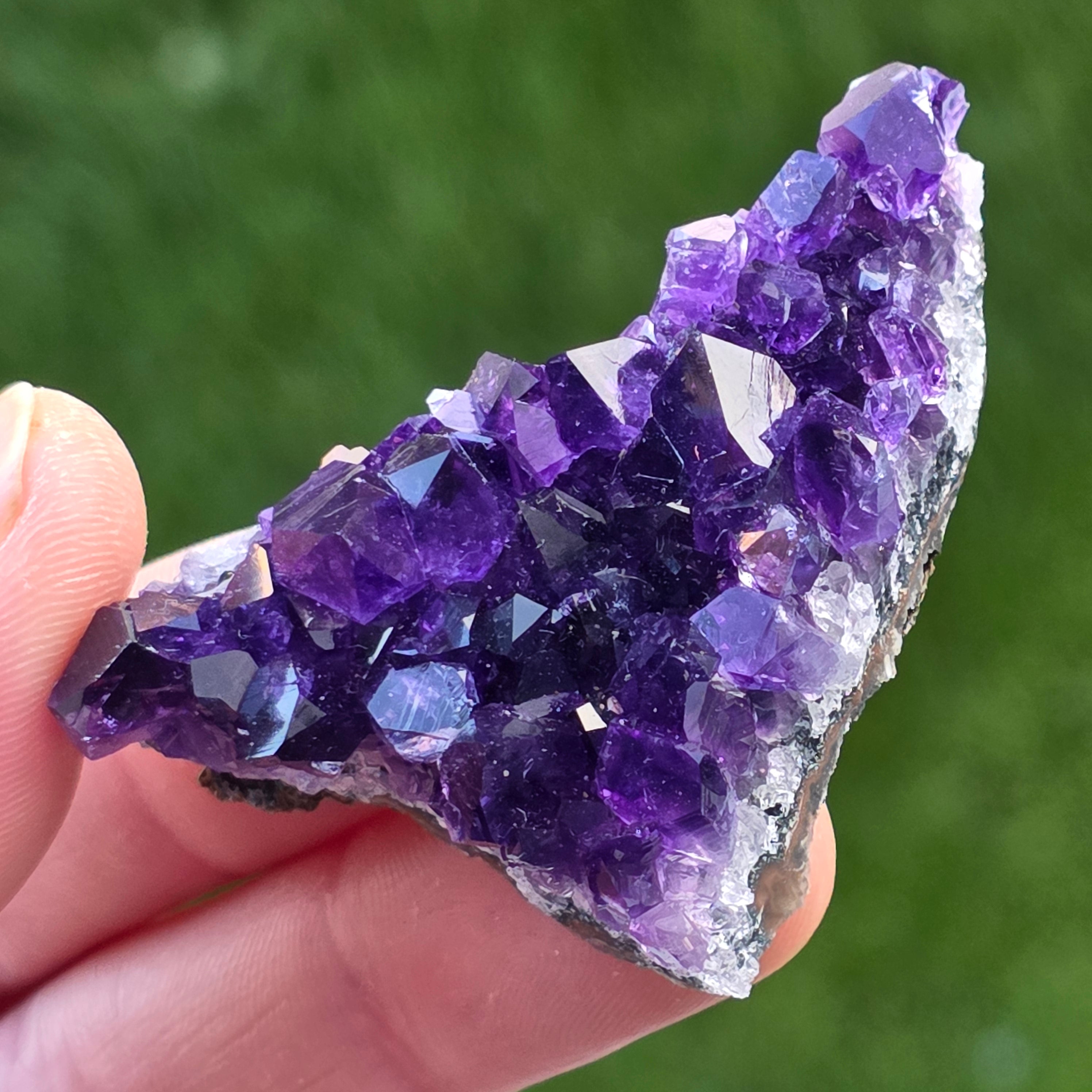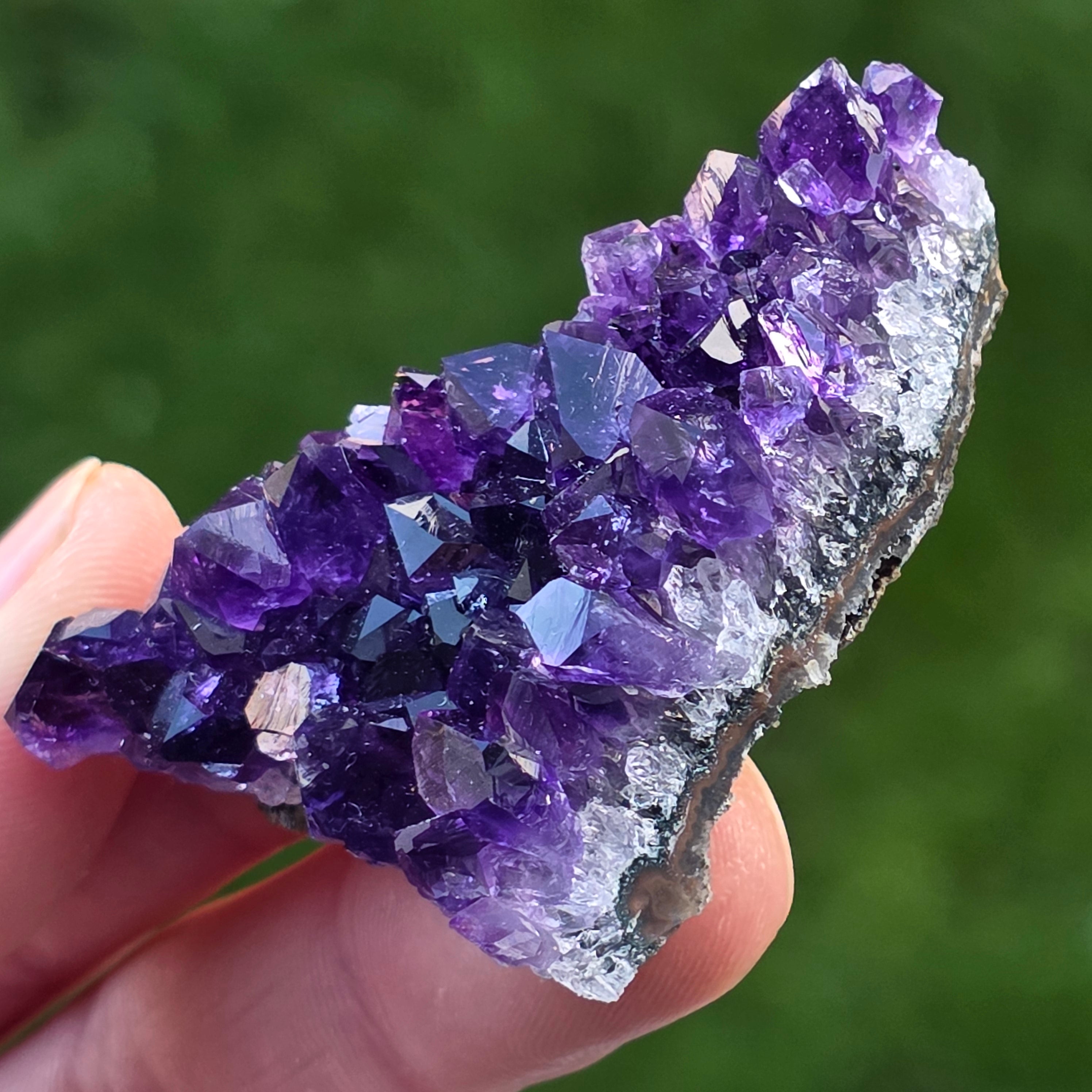• Kolor: intensywny fiolet z refleksami świetlnymi, głęboki odcień typowy dla ametystu urugwajskiego