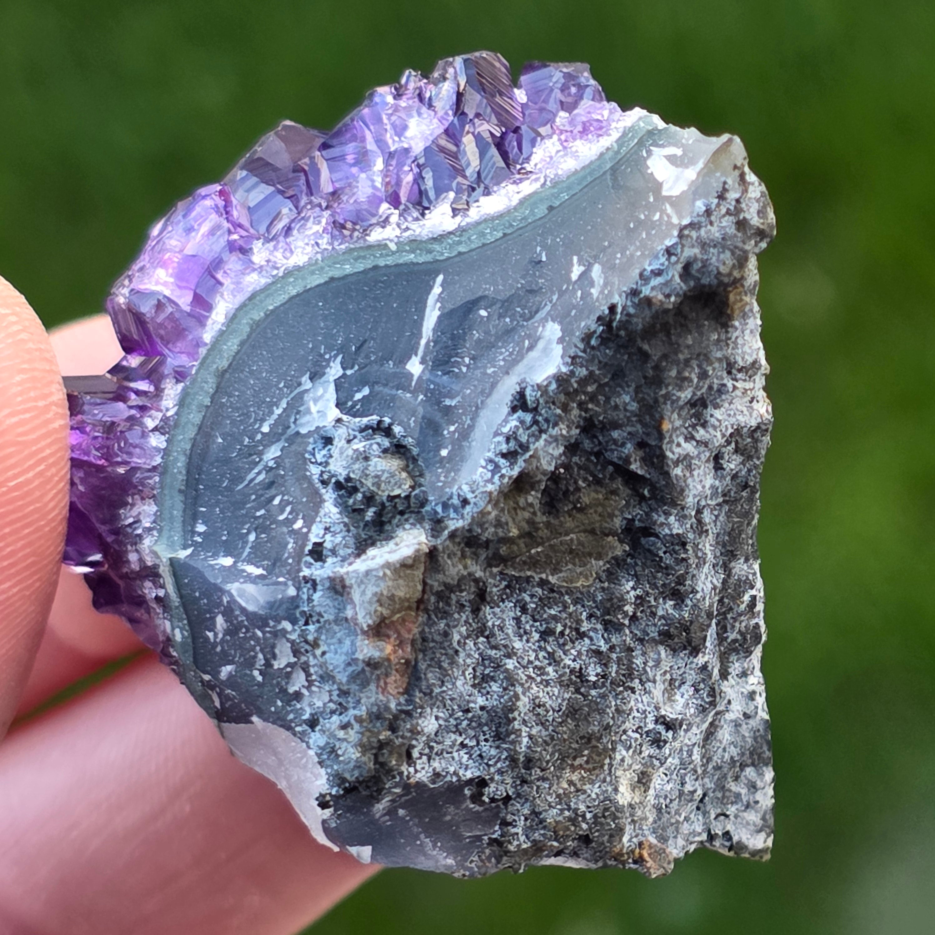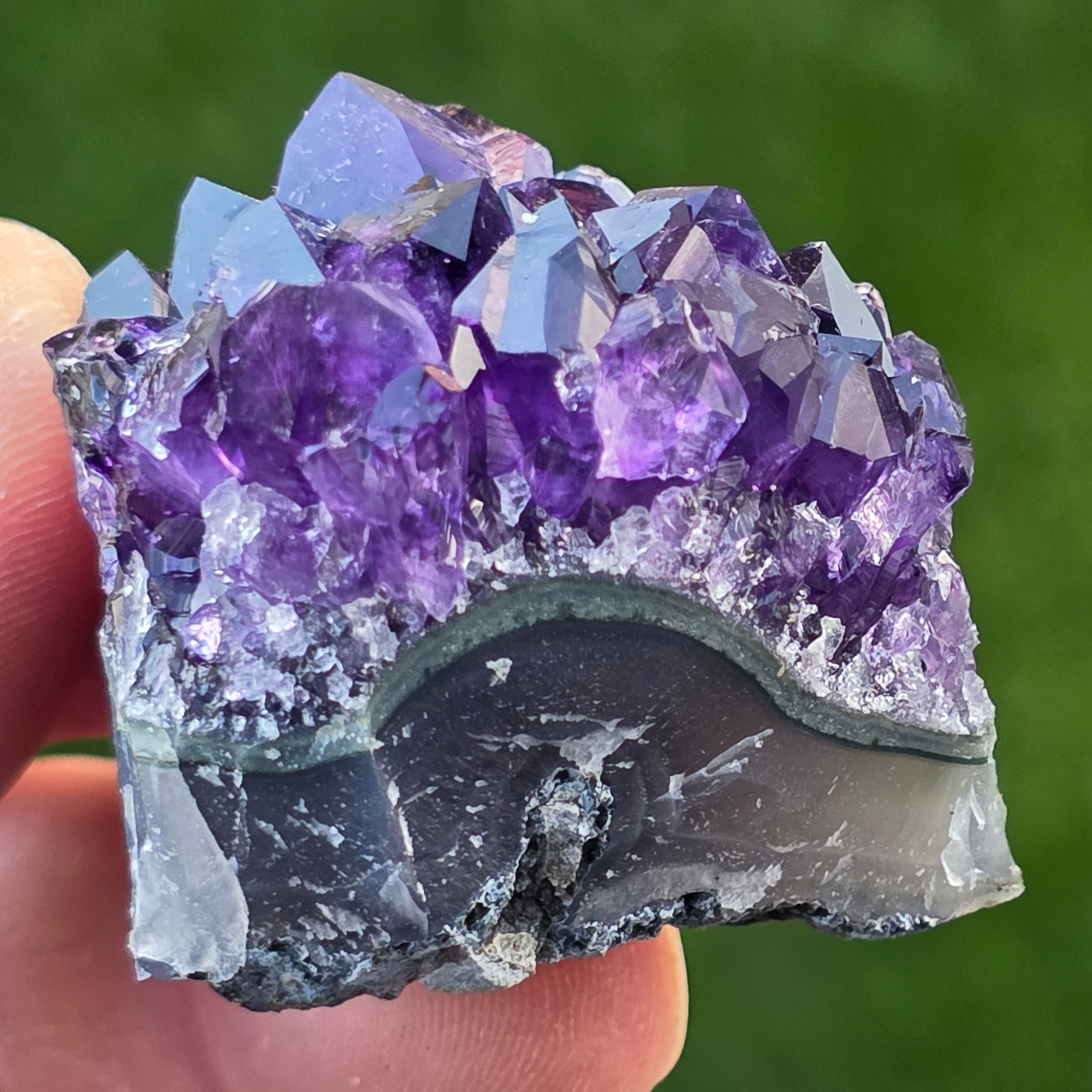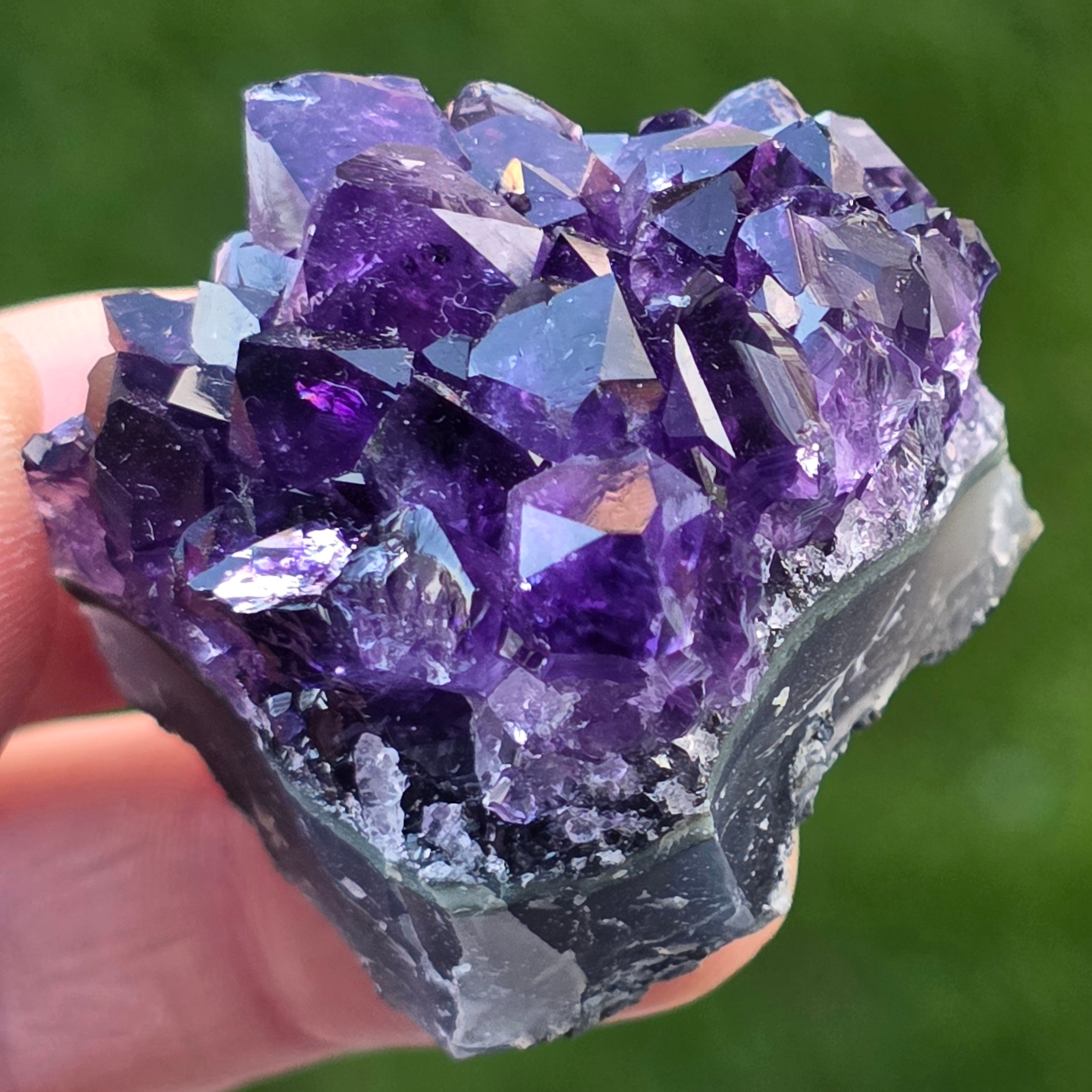 • Kolor: intensywny fiolet z refleksami świetlnymi, głęboki odcień typowy dla ametystu urugwajskiego