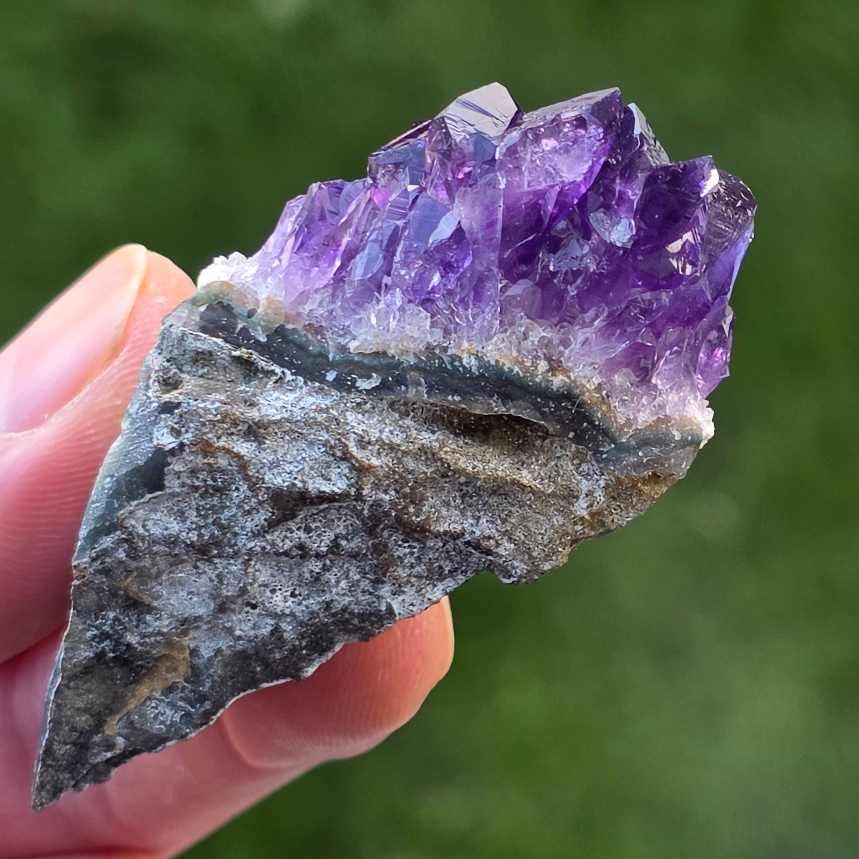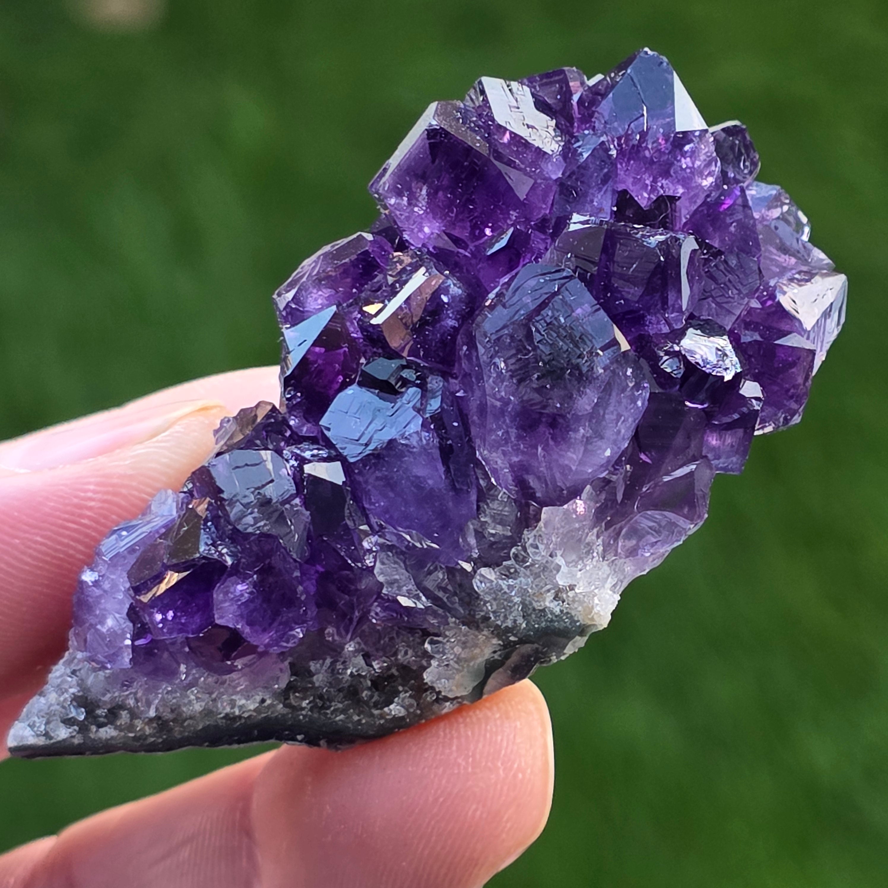 • Kolor: intensywny fiolet z refleksami świetlnymi, głęboki odcień typowy dla ametystu urugwajskiego