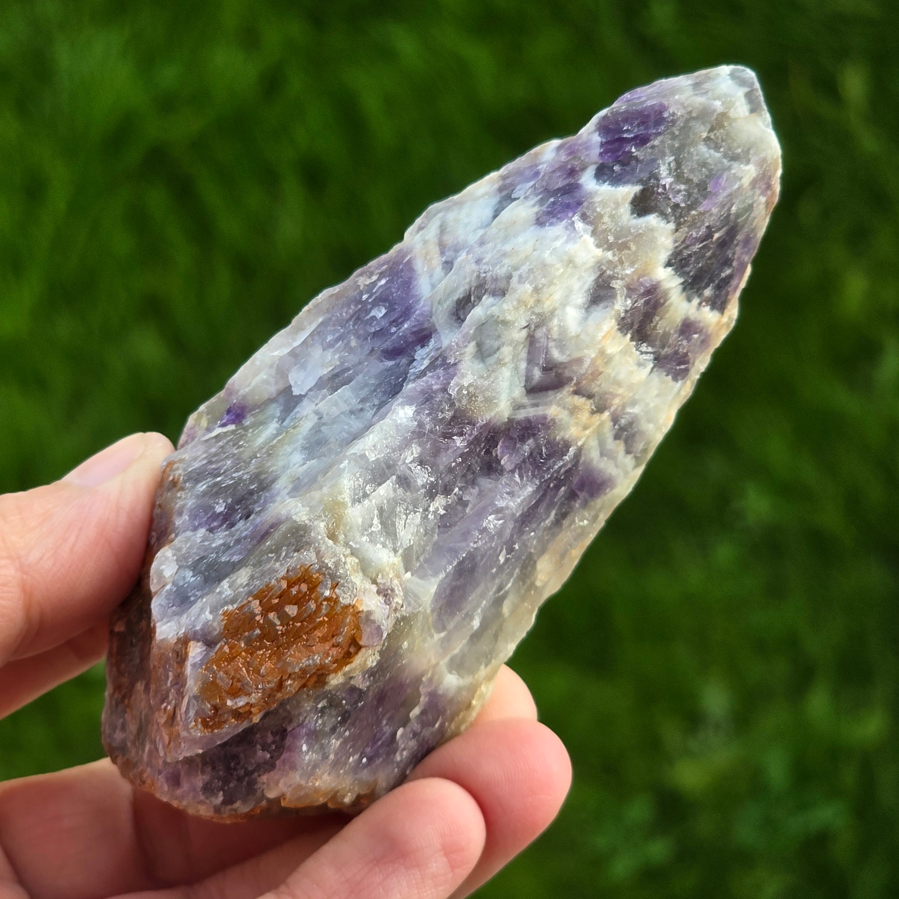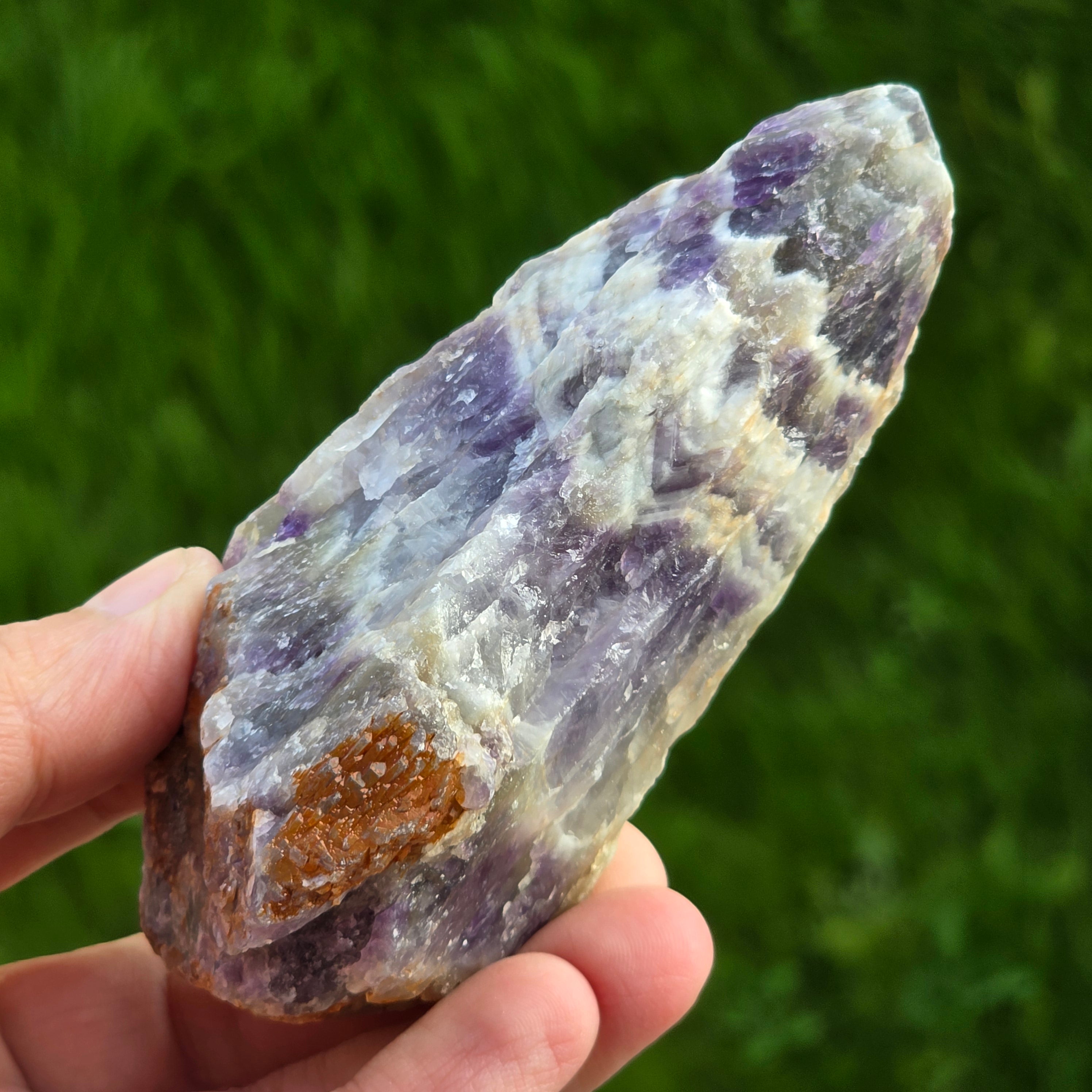 Ametyst chevronowy znany jest ze swoich powiązań z czakrami korony i trzeciego oka, co zwiększa intuicję i umiejętności podejmowania decyzji.