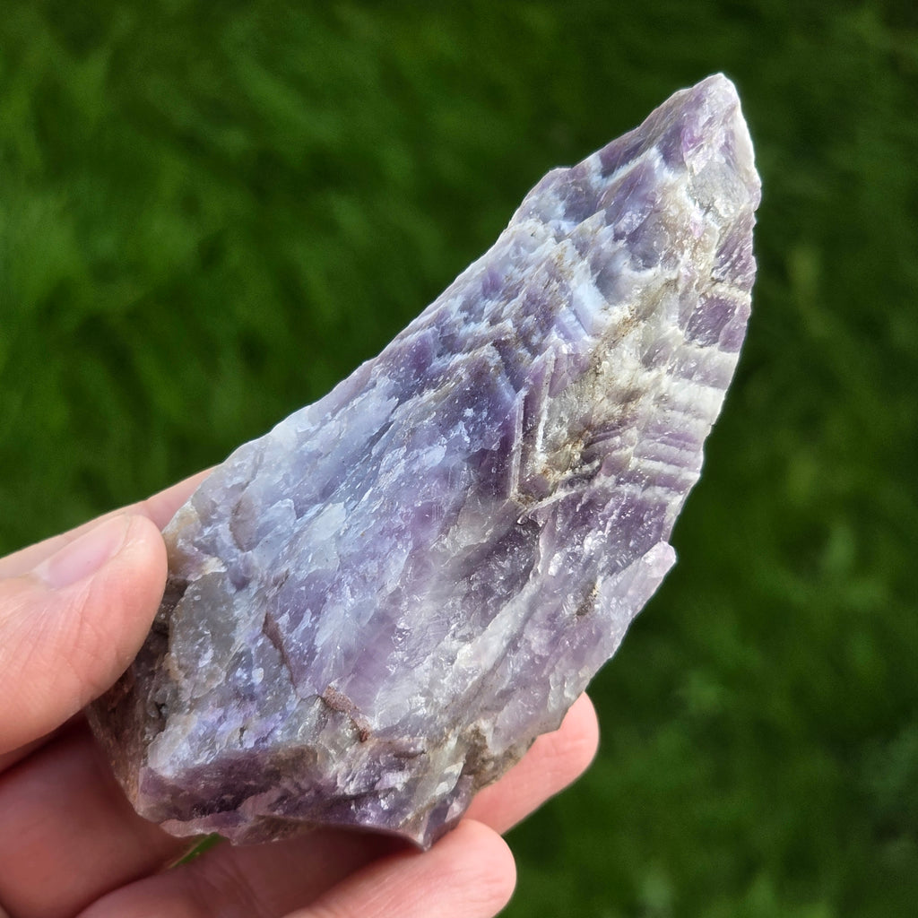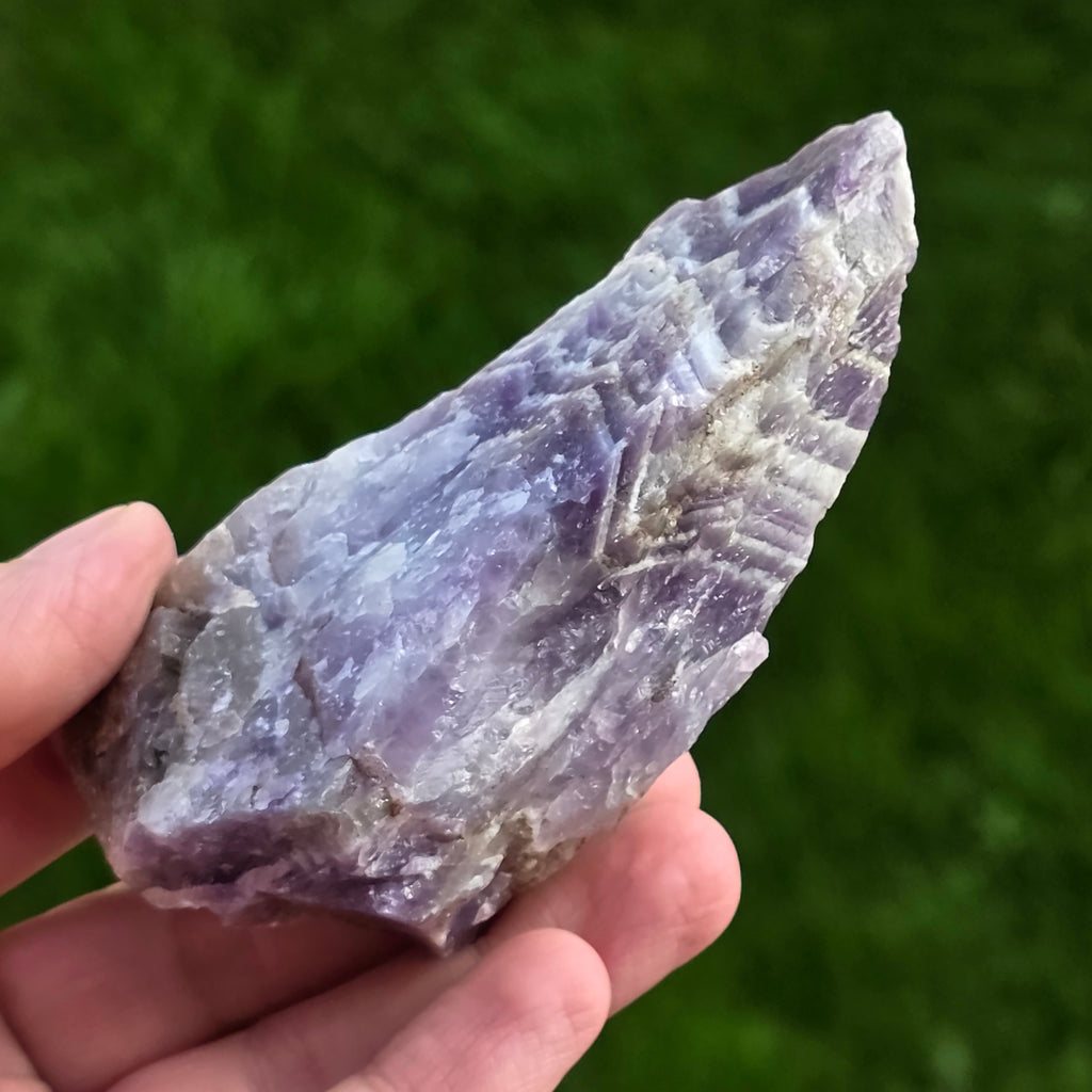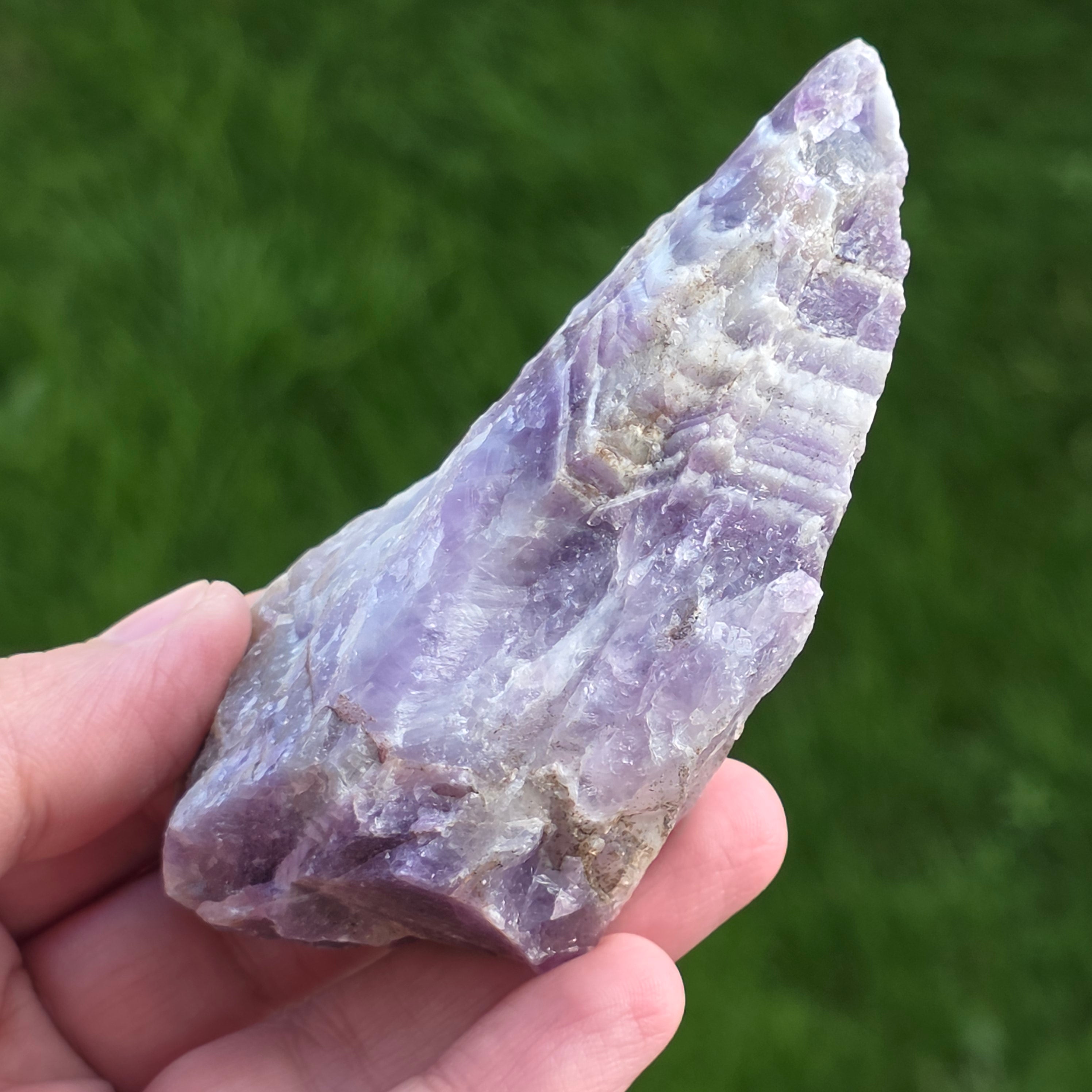 Ametyst Chevron jest znany ze swoich powiązań z czakrami korony i trzecim okiem, zwiększając intuicję i zdolność podejmowania decyzji.