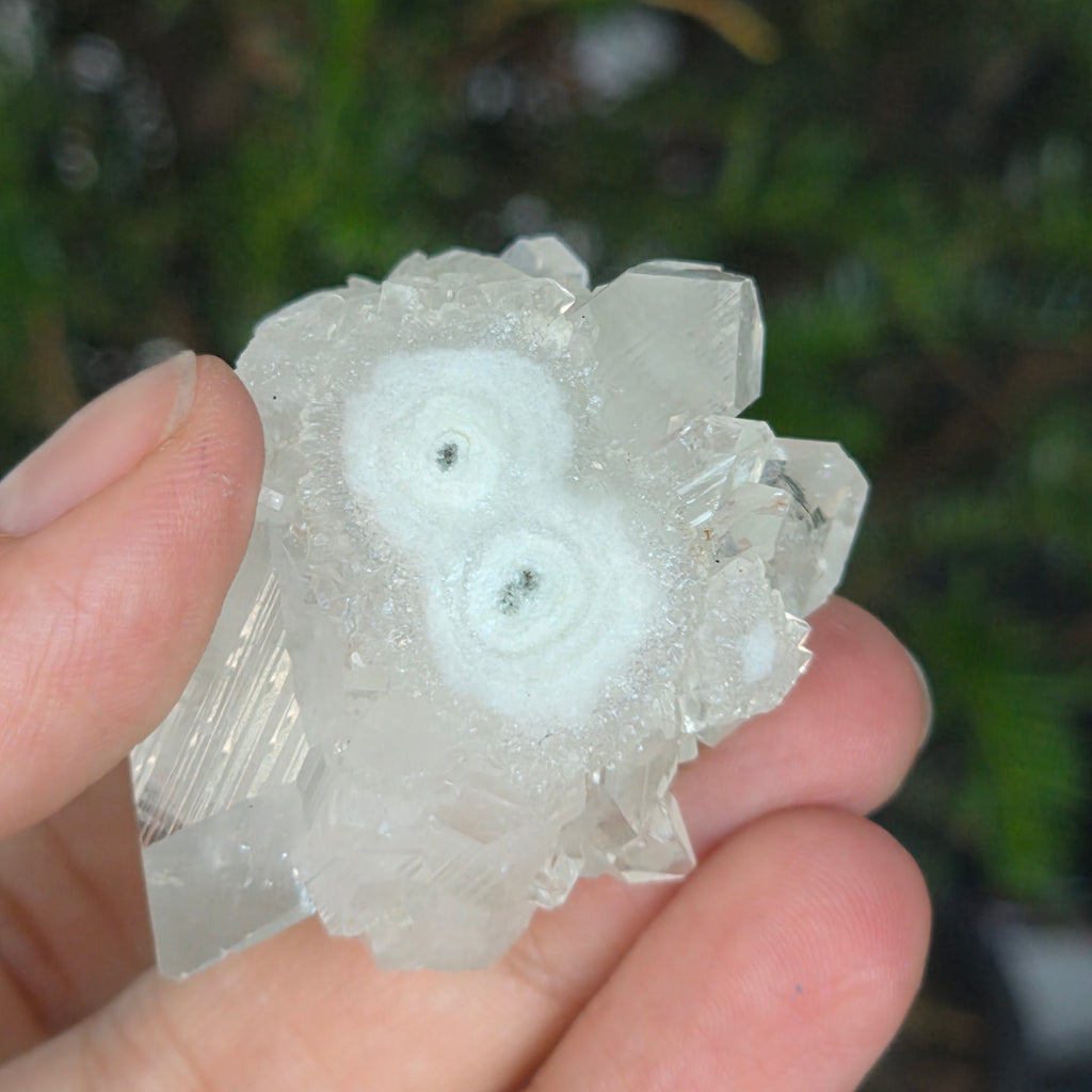 Născut în adâncurile rocilor bazaltice, acolo unde natura sculptează în tăcere formele sale perfecte, acest cluster de apofilit poartă în el claritatea și liniștea cristalelor pure.
