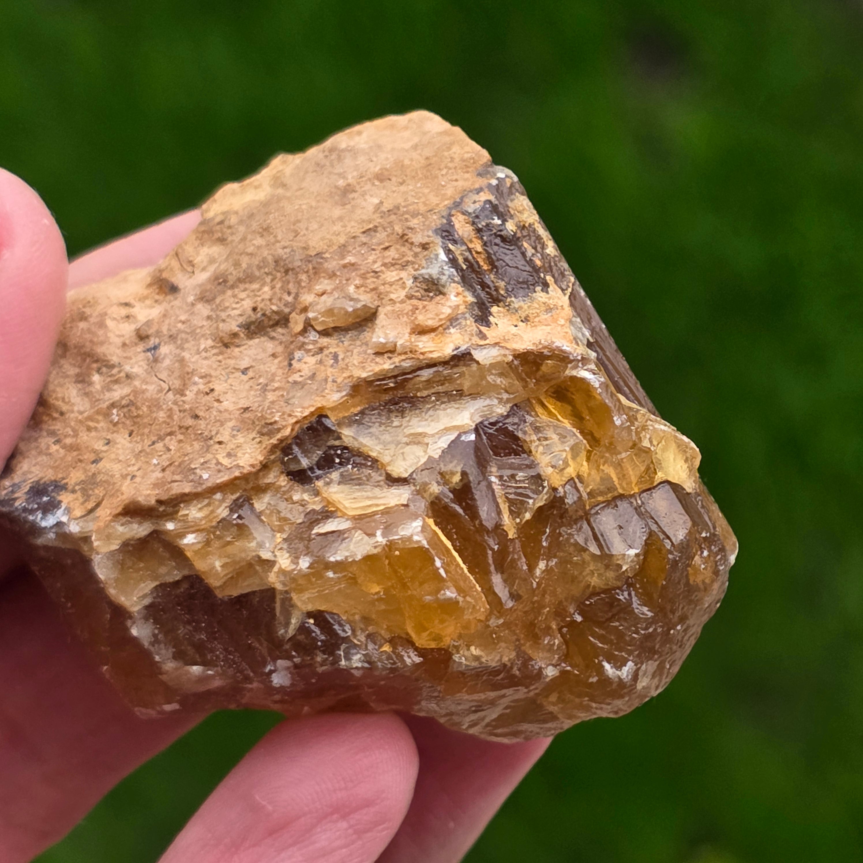 Aragonit miodowy z Namibii to odmiana aragonitu o ciepłych odcieniach żółci, pomarańczy i jasnobrązowego, przypominającego miód, stąd jego nazwa. Aragonit to minerał z rodziny węglanowych, posiadający rombową strukturę krystaliczną, chemicznie podobny do kalcytu, ale różniący się krystalizacją.