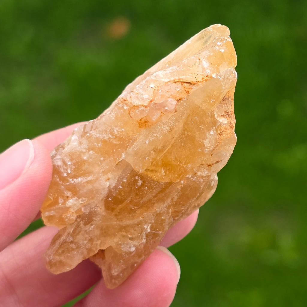 Aragonit miodowy z Namibii to odmiana aragonitu o ciepłych odcieniach żółci, pomarańczy i jasnobrązowego, przypominającego miód, stąd jego nazwa. Aragonit to minerał z rodziny węglanowych, posiadający rombową strukturę krystaliczną, chemicznie podobny do kalcytu, ale różniący się krystalizacją.