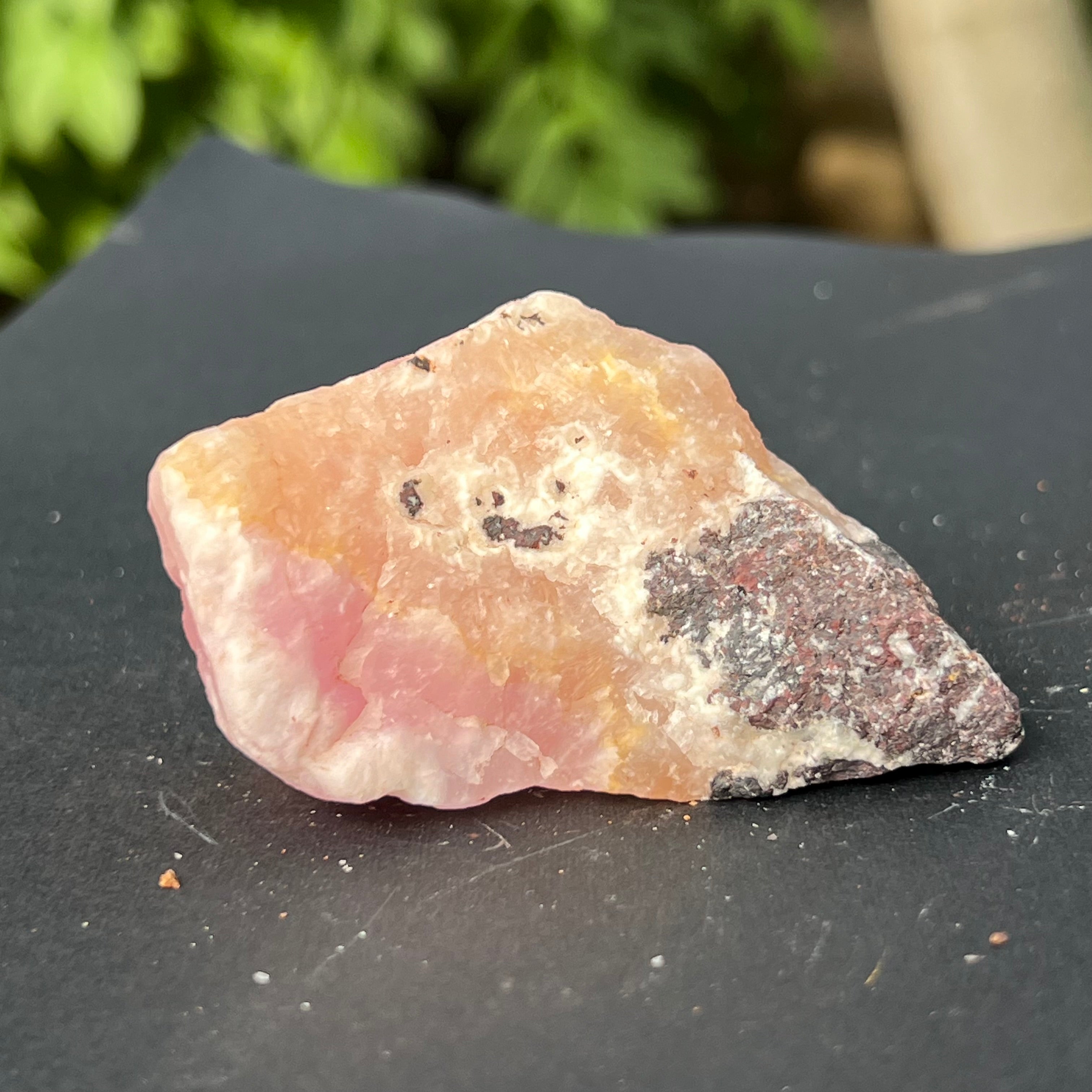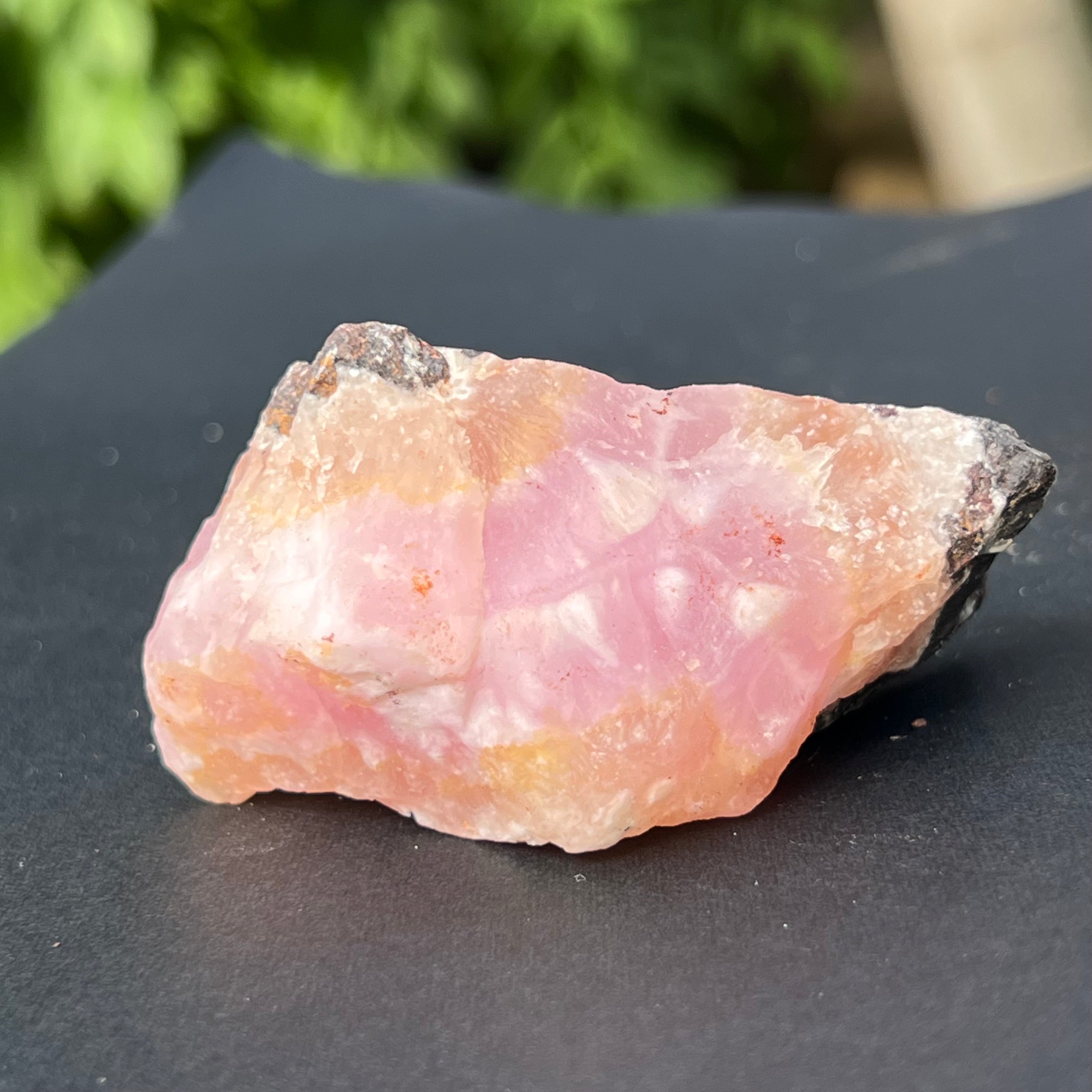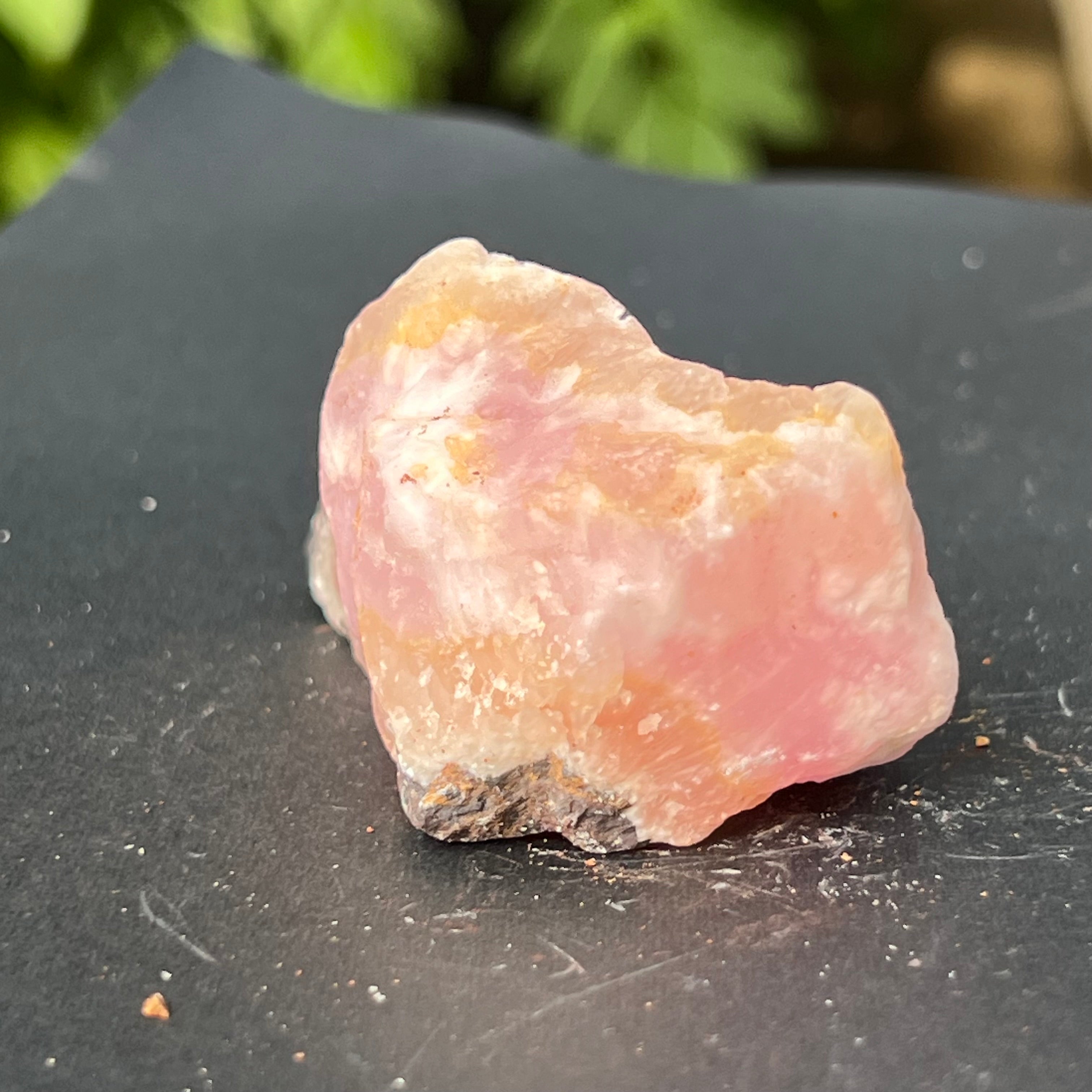 Pink Aragonit to półprzewodnikowy kamień rzadko spotykany. Składa się z węglanu wapnia i ma różowy pomarańczowy kolor z powodu zanieczyszczeń żelaza.