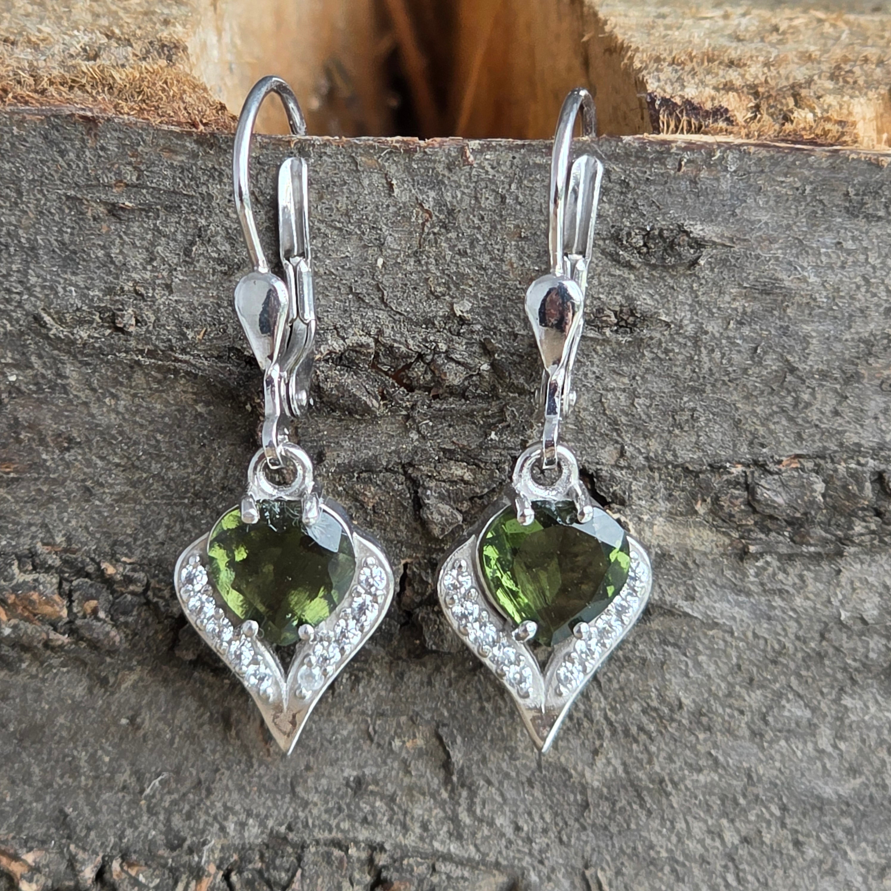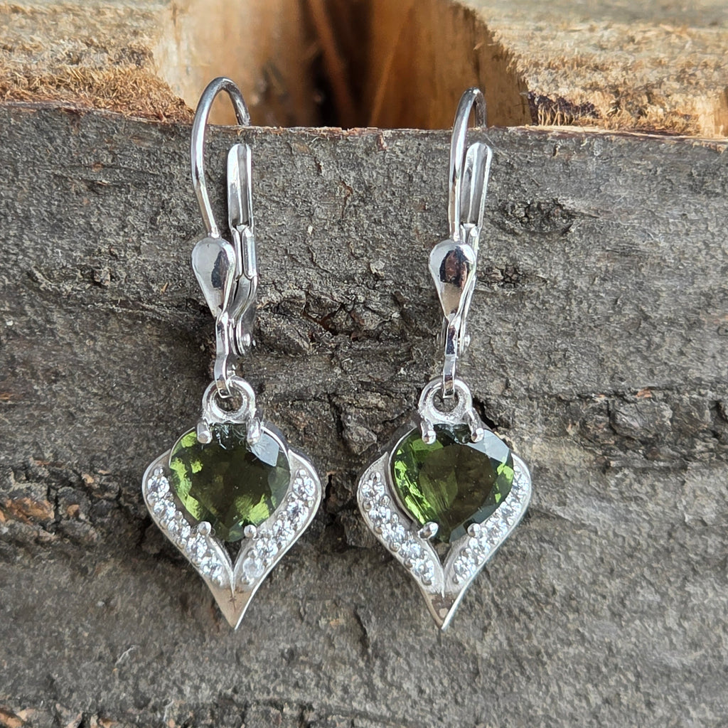 Te eleganckie srebrne kolczyki 925 łączą rzadkie piękno naturalnego Mołdawitu, szlifowane w postaci serca, z dyskretną blaskiem otaczających go przezroczystego cyrkonów. Projekt „upuszczenia serca” dodaje kobiecości i łaski, zamieniając je w wszechstronny kawałek, odpowiedni zarówno na wydarzenia codzienne, jak i specjalne.