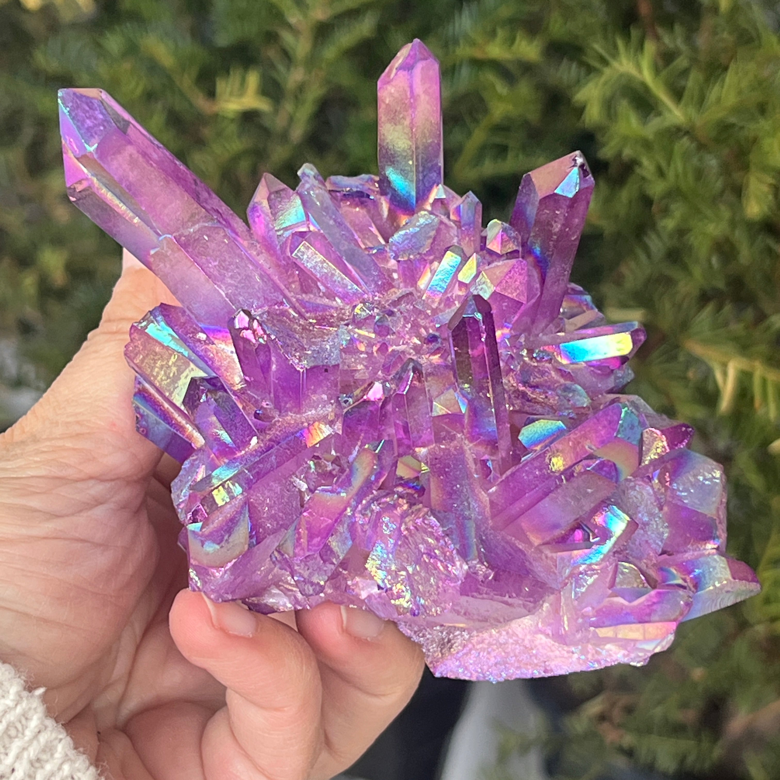 Recenzje - Aura Fioletowy Ciemny, bezbarwny klaster kwarcowy | Model 3