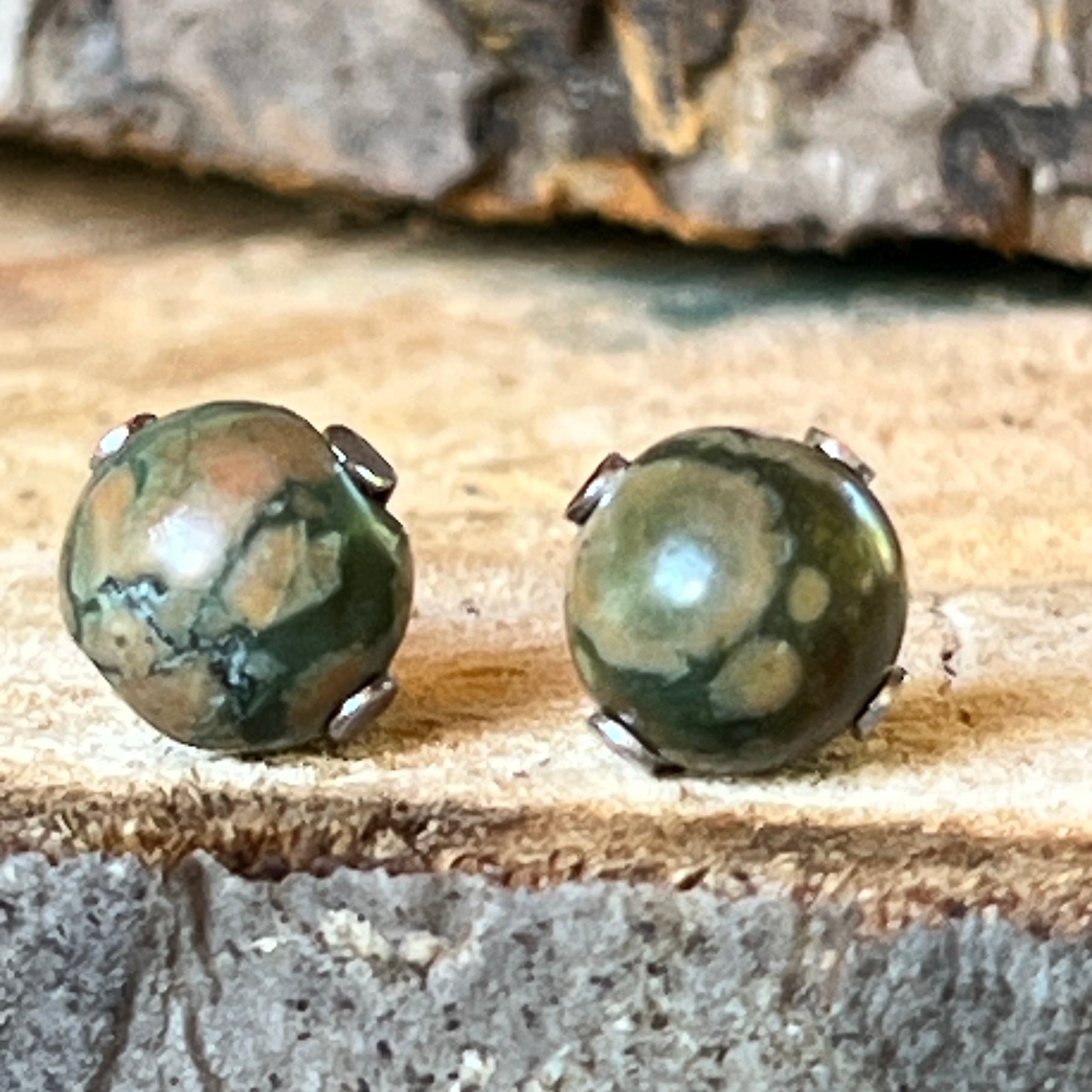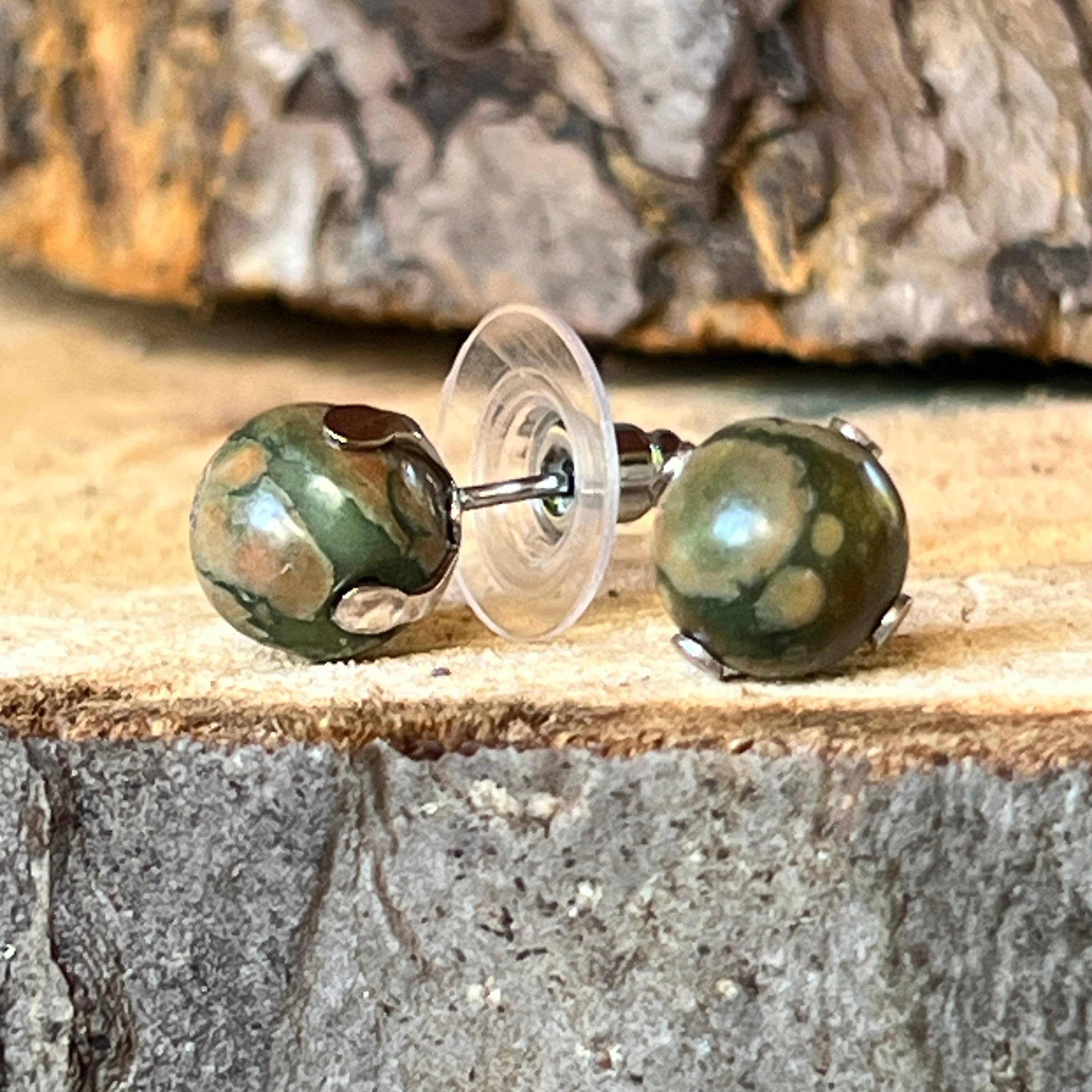 Kolczyki sztyfty z kulką ryolitową 8 mm