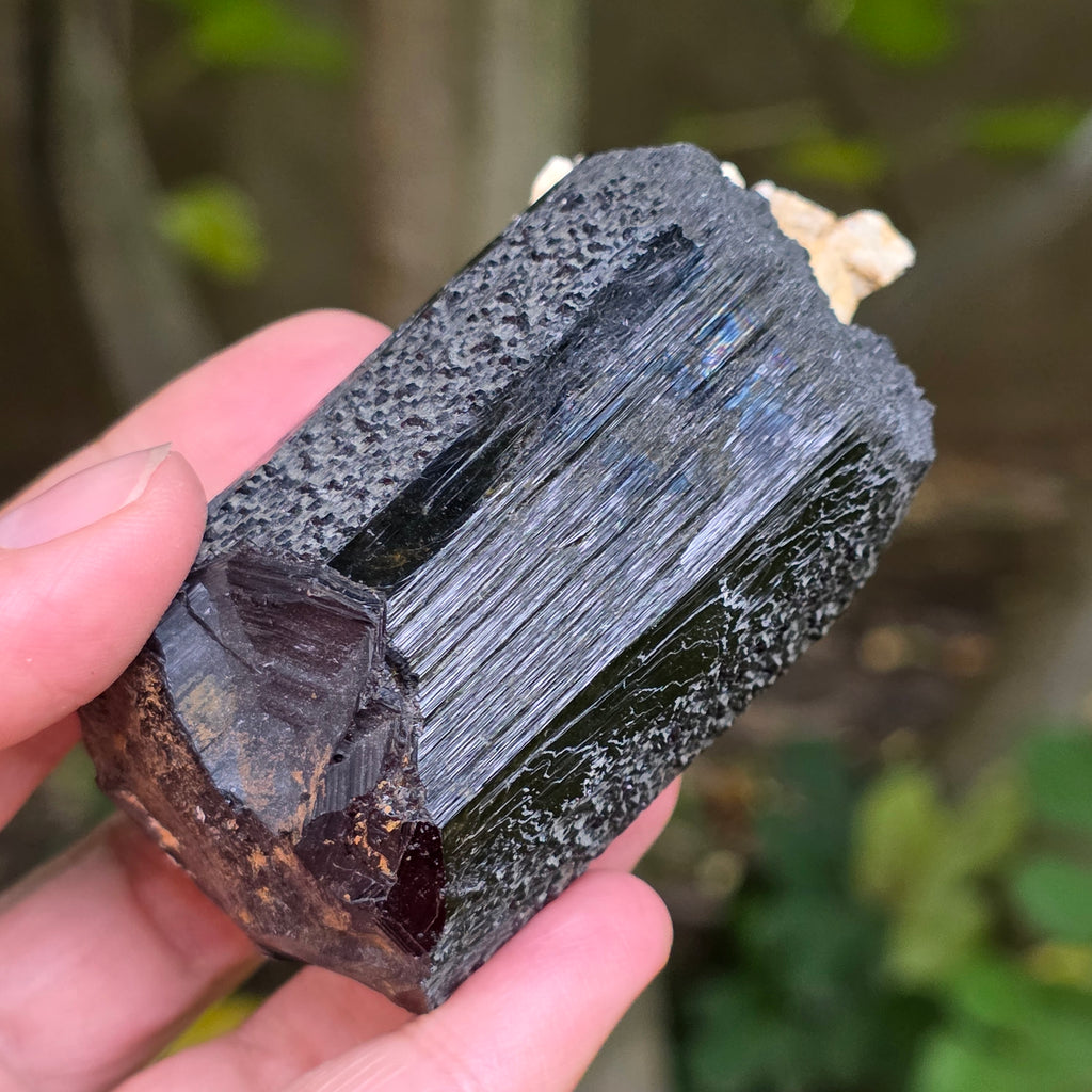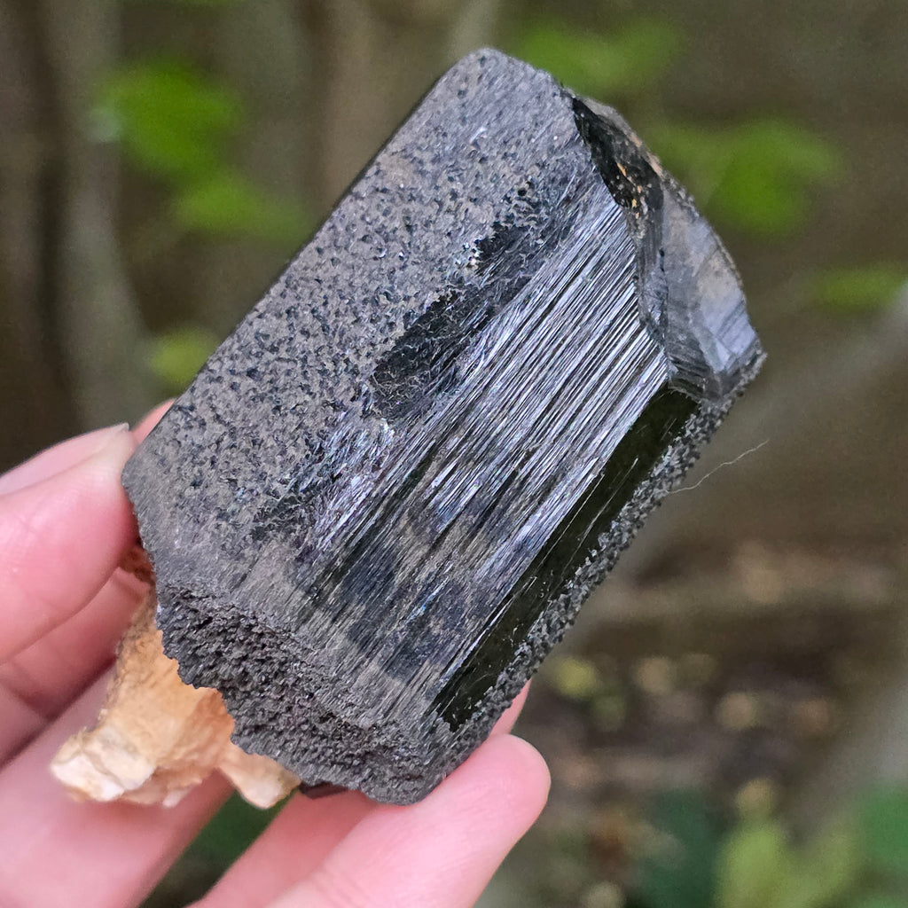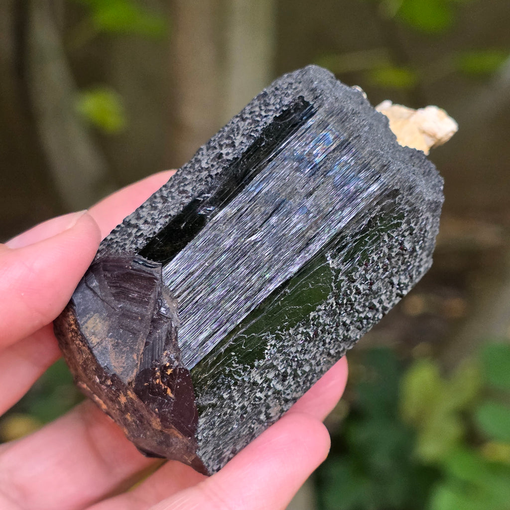 Czarny turmalin, znany również jako Schorl, składa się z złożonej mieszanki borosiliki i występuje w różnych postaciach krystalicznych. Jest to bardzo twardy minerał i ma doskonały odporność na zarysowania i zużycia.