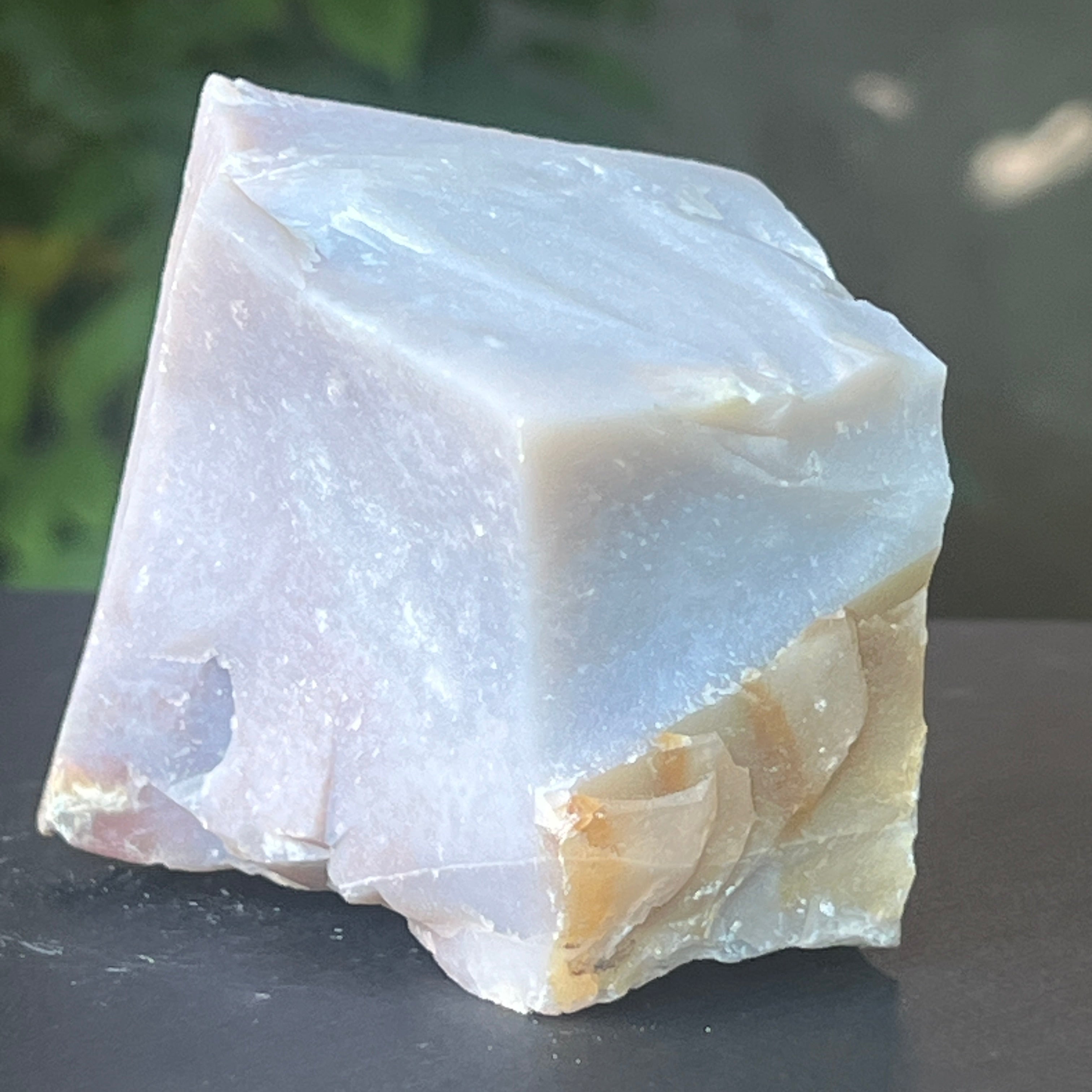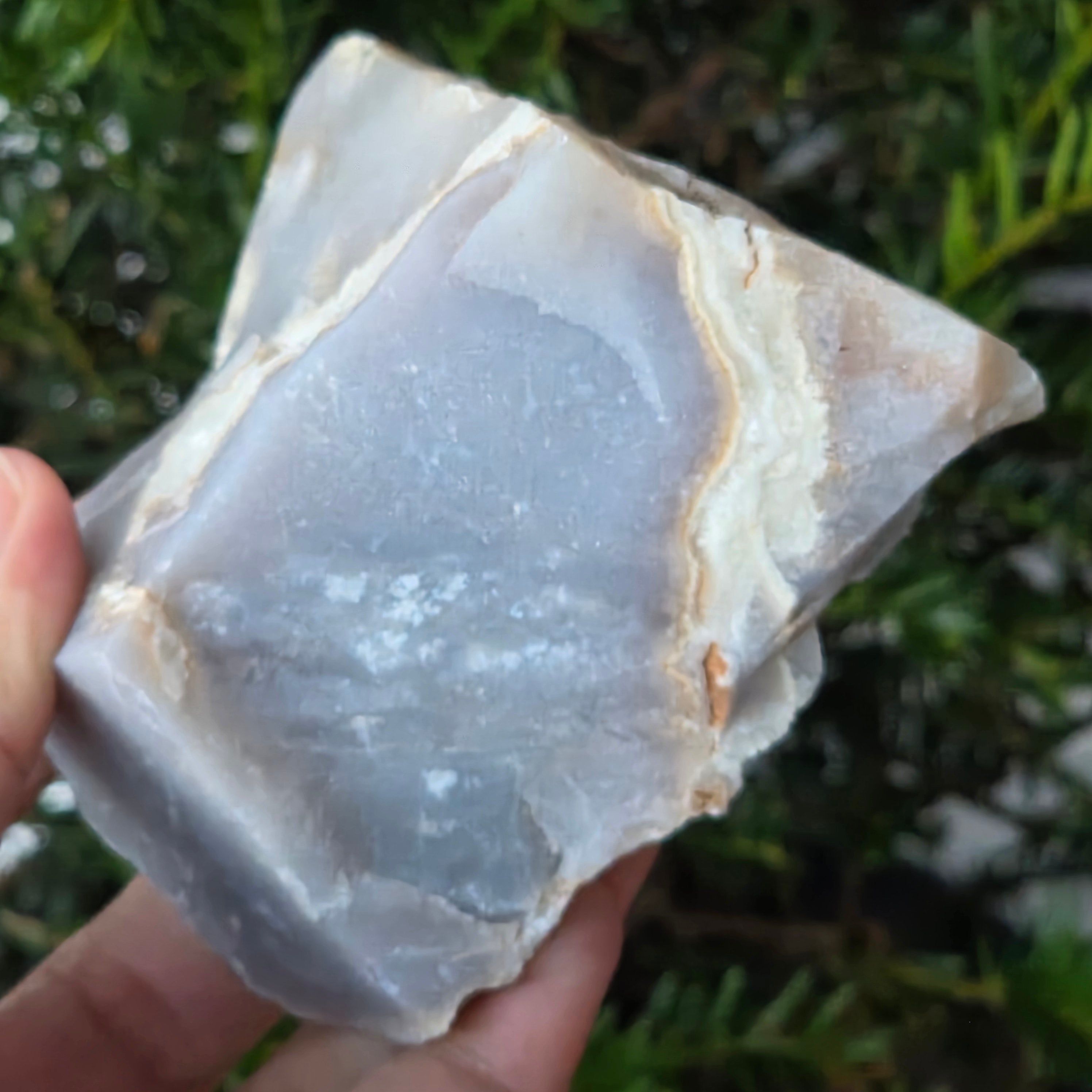 Blue Chalcedony, znany również jako niebieski agat lub niebiańska chalcedony, to różnorodne kwarc mikrokrystalilinowy, który ma odcienie niebieskiego.