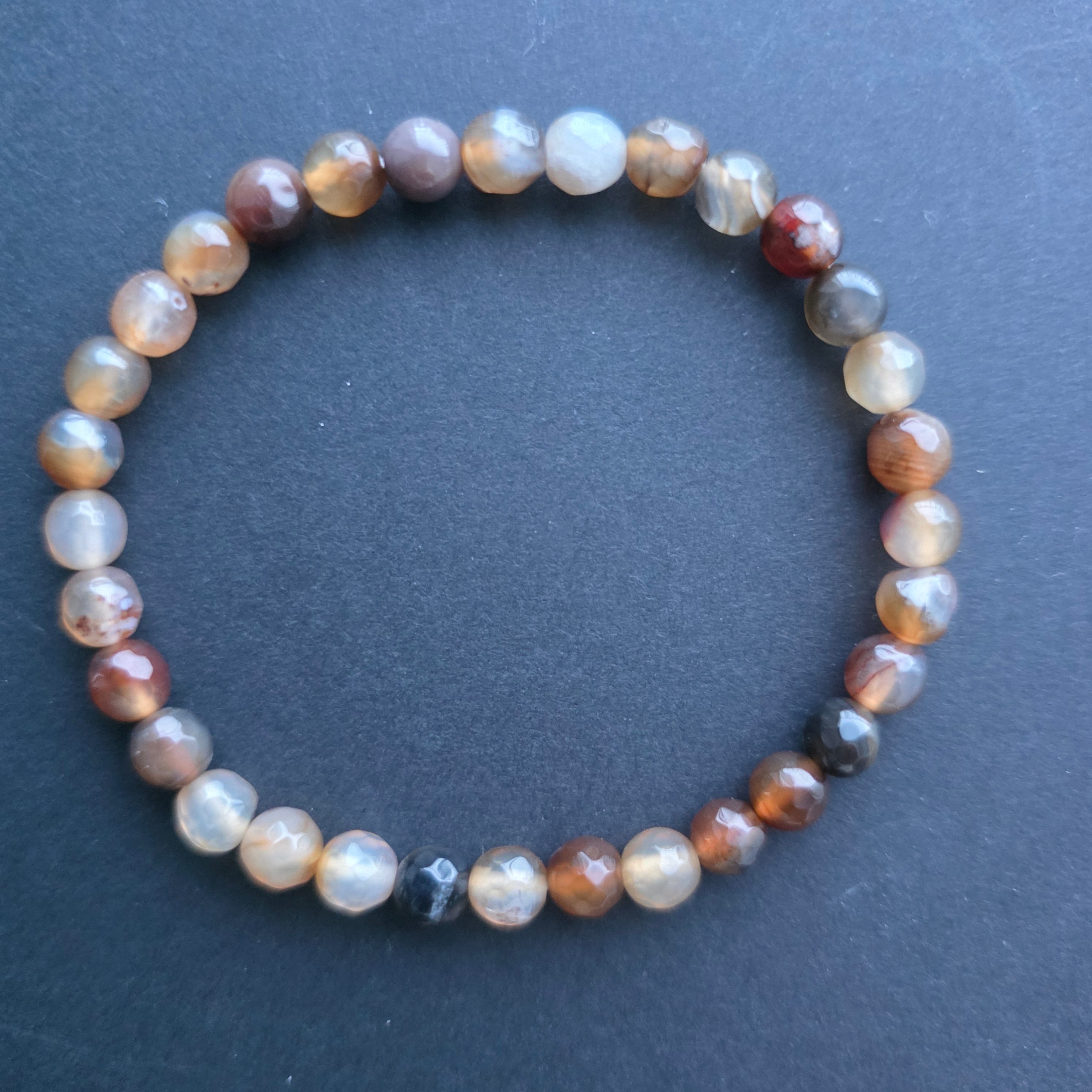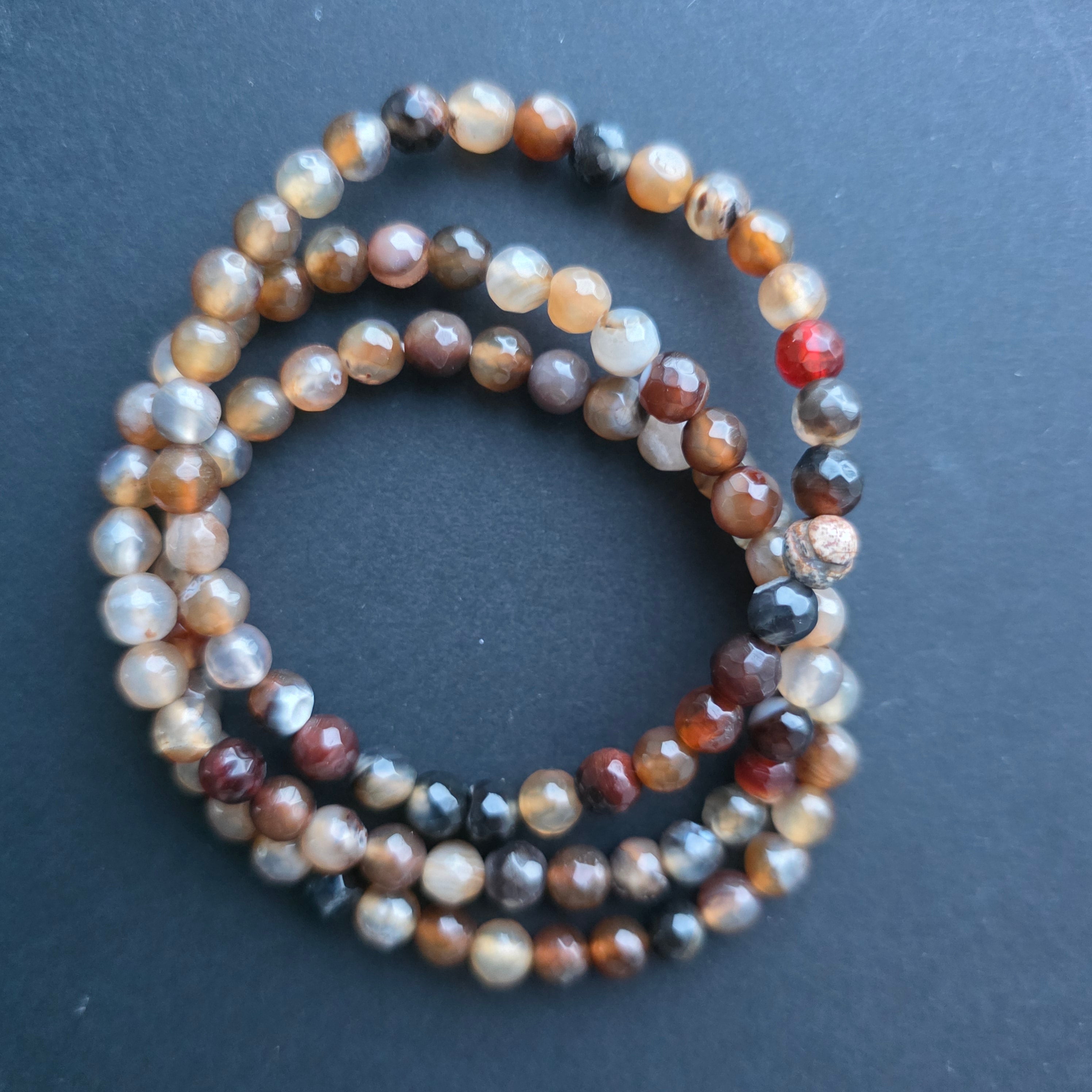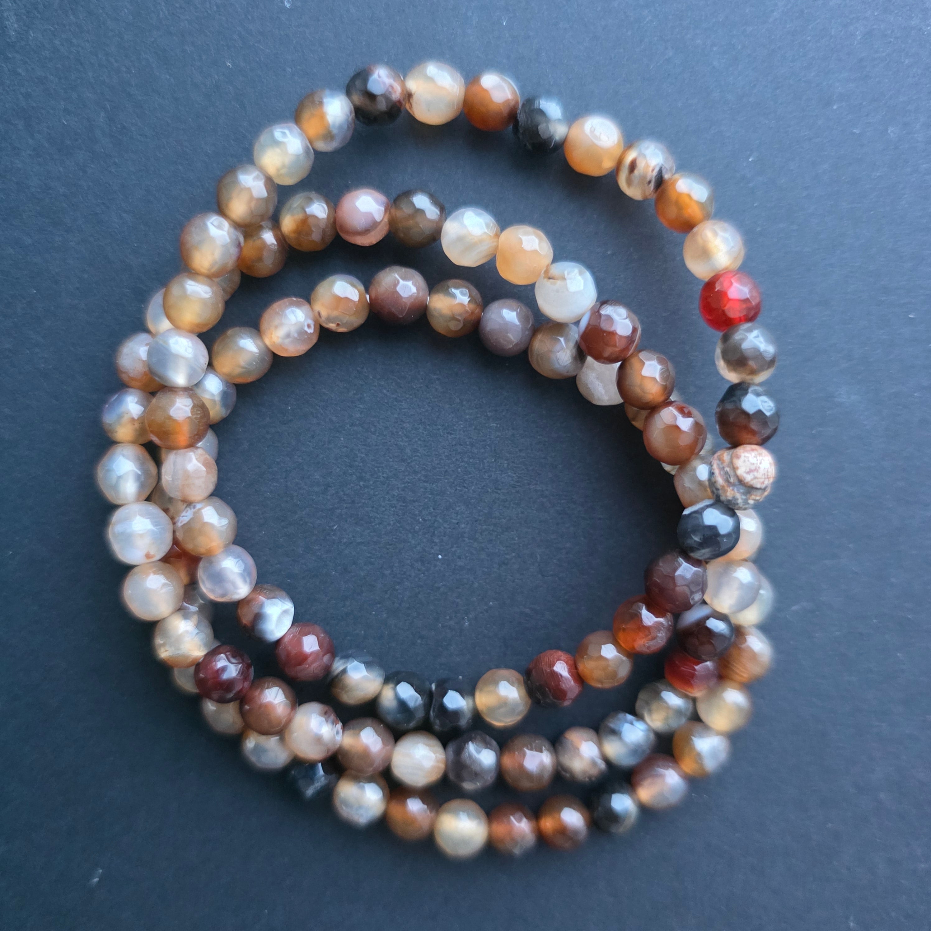 • Tekstura: błyszcząca powierzchnia, masywne koraliki, z naturalnymi wzorami i pasami charakterystycznymi dla agatu