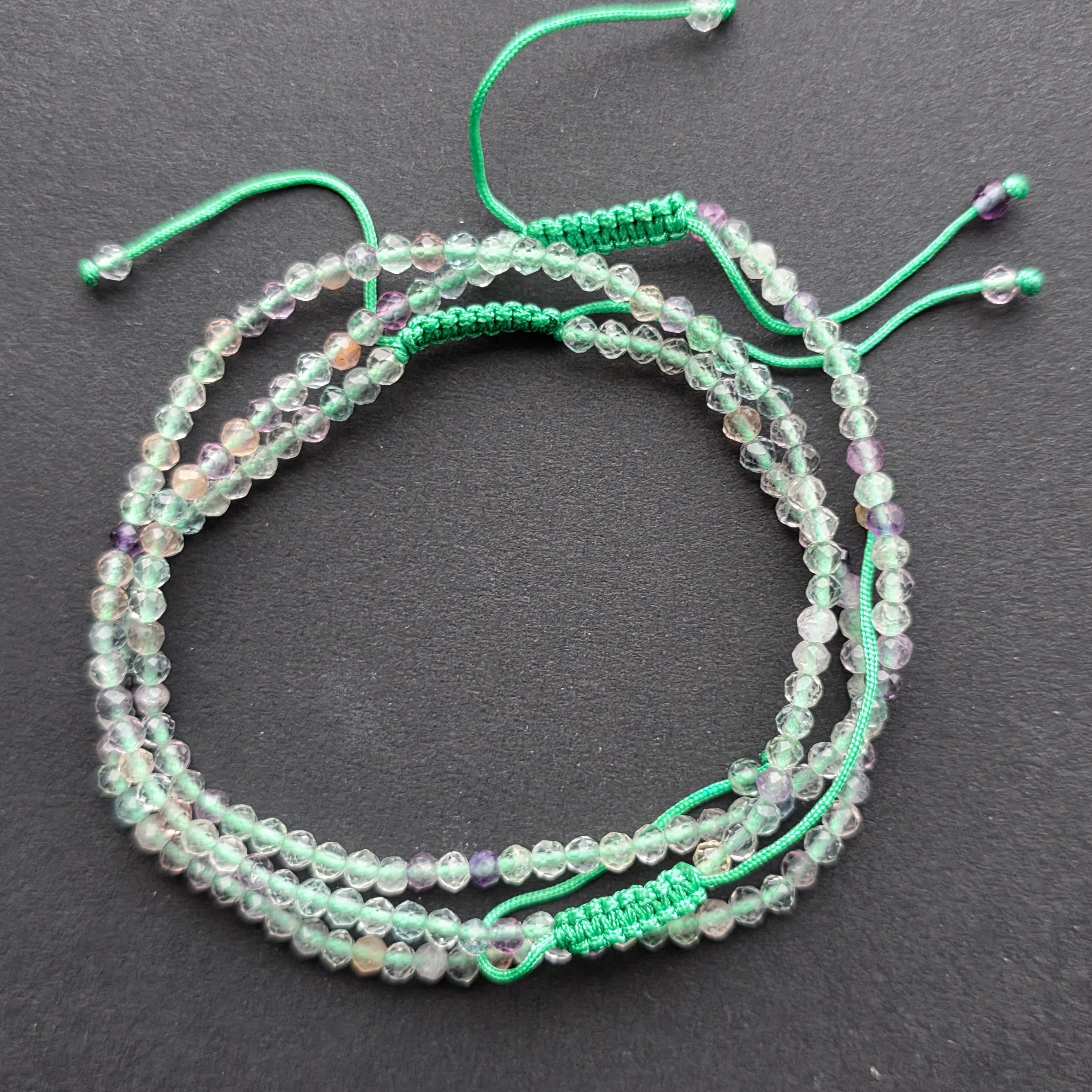 Bransoletka fasetowany fluoryt 3 mm z regulowanym sznurkiem