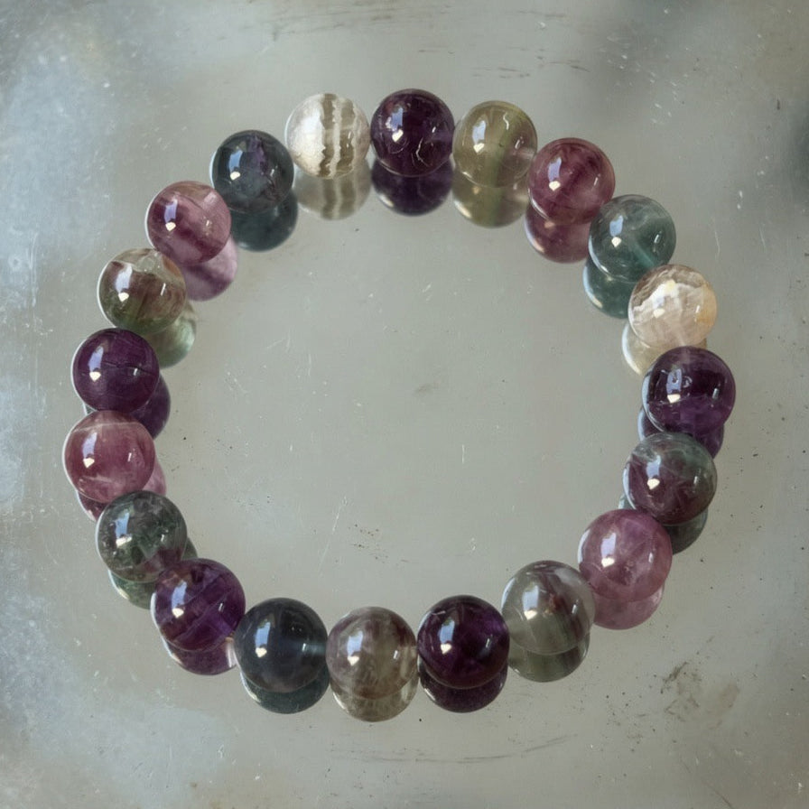 Tęczowy fluoryt pomaga zrównoważyć i zharmonizować otaczającą energię i często jest używany do patrzenia na sytuacje z wielu punktów widzenia i poszerzania naszych perspektyw.