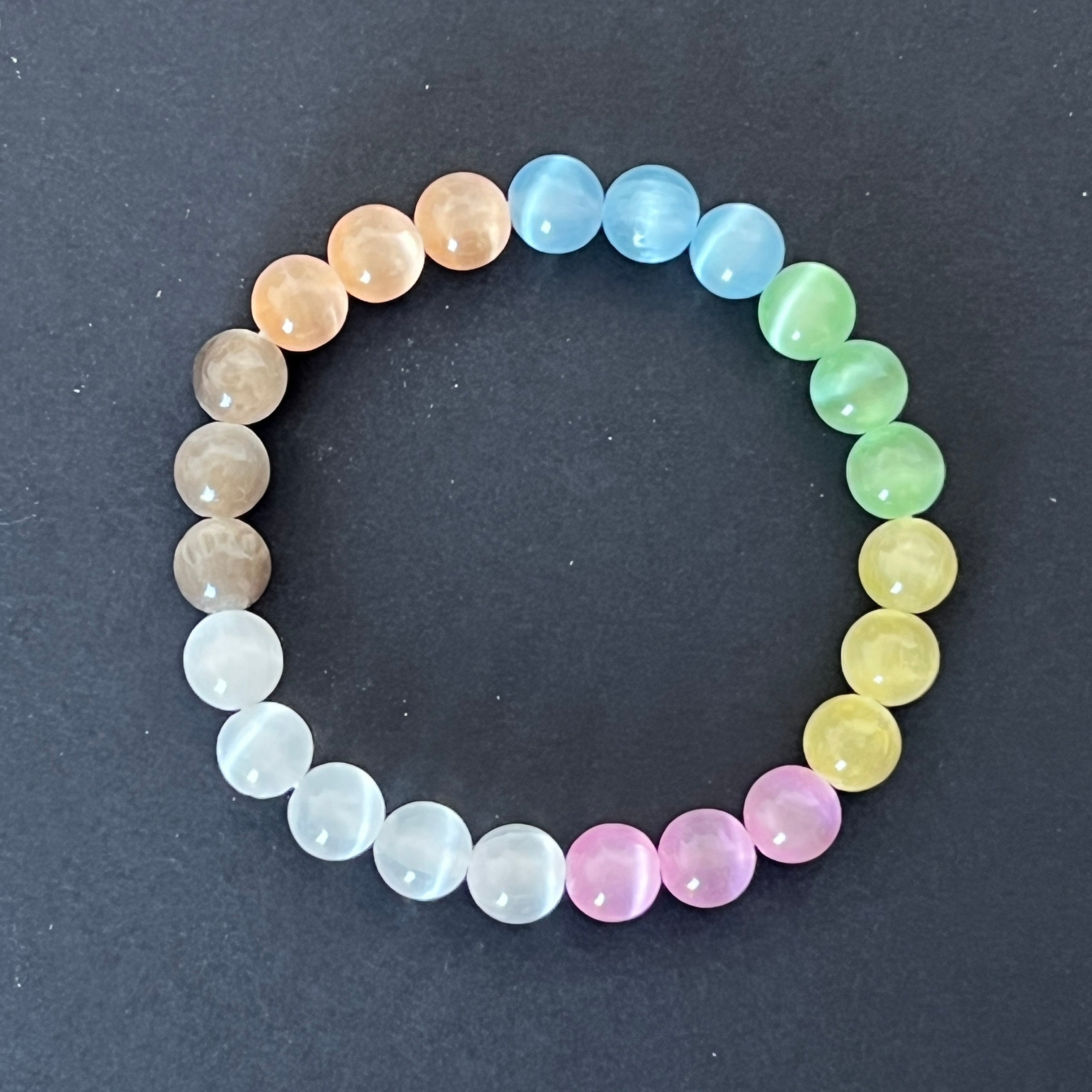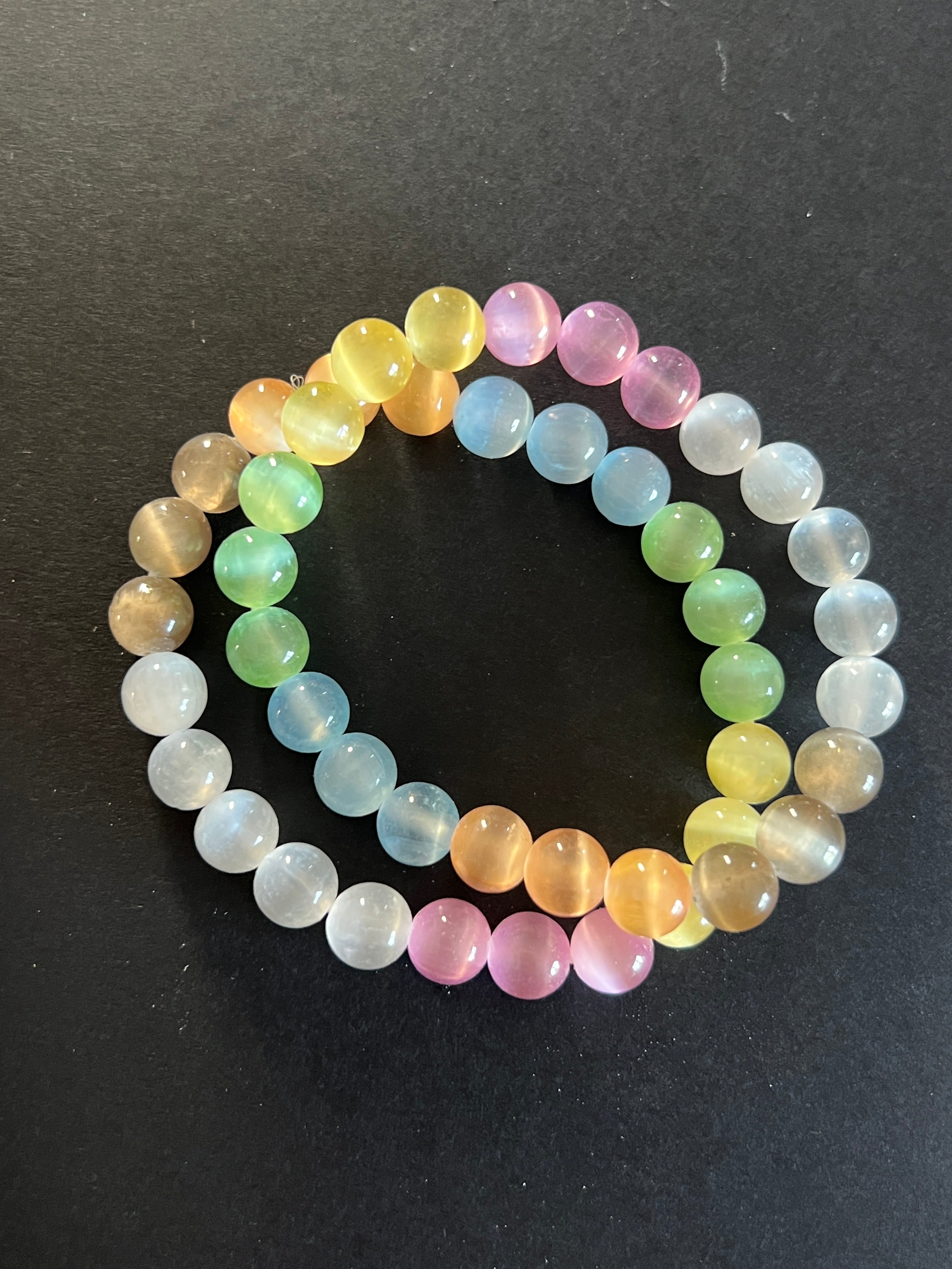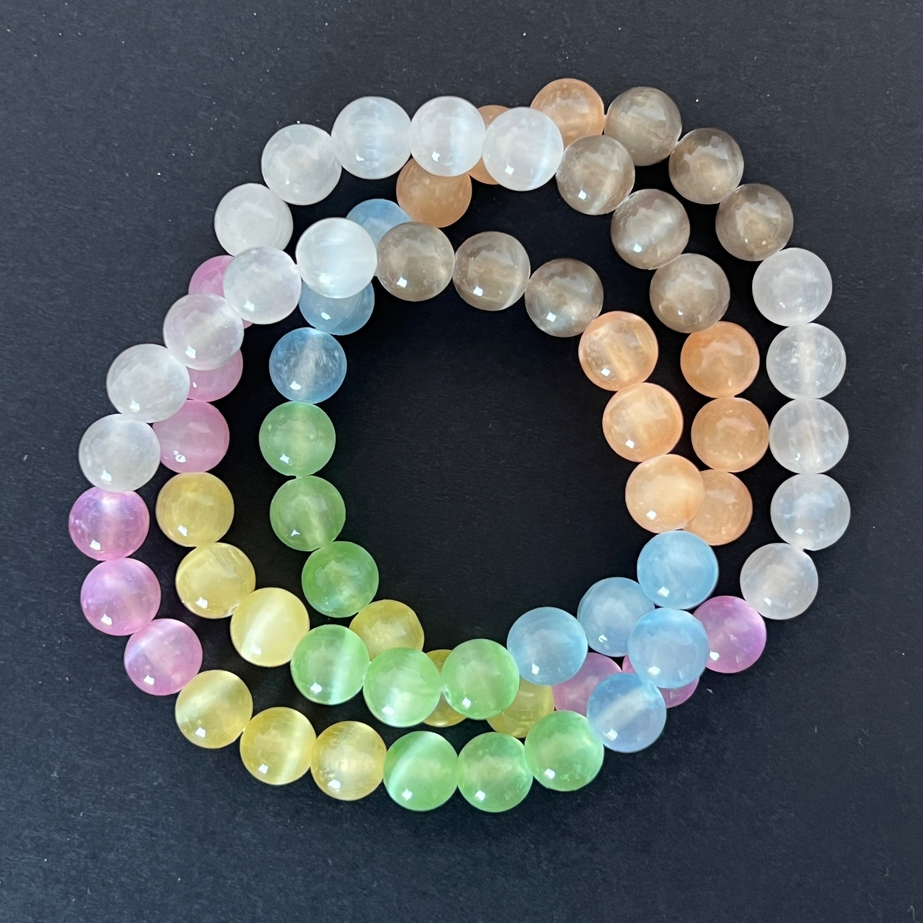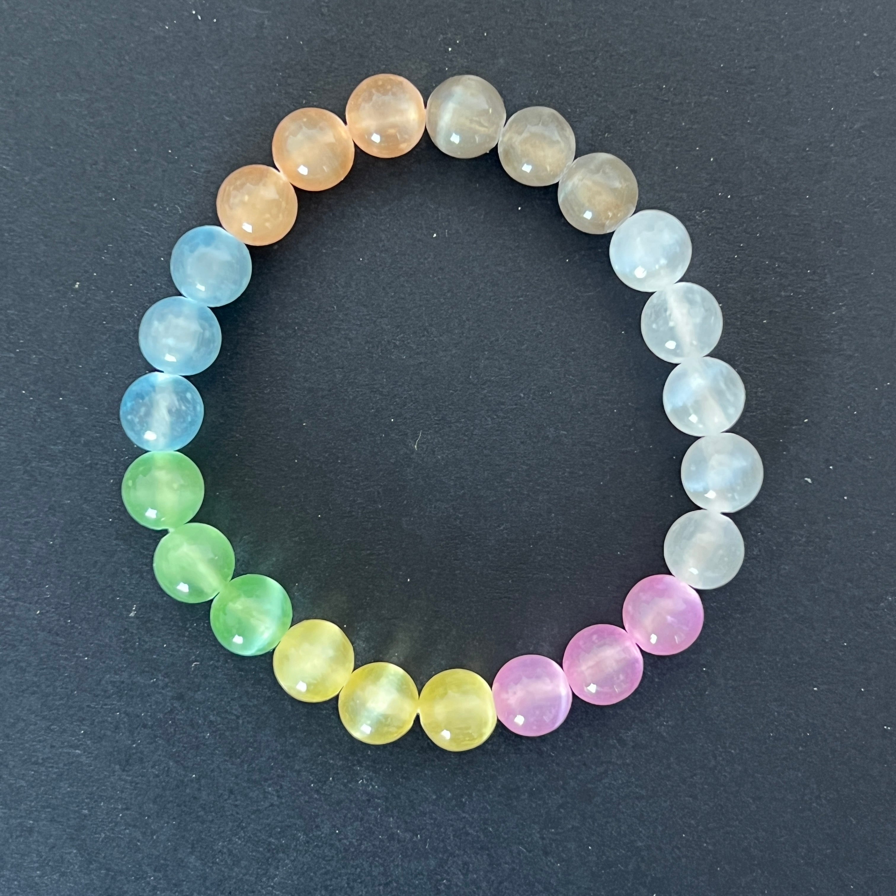 Bransoletka kolorowe kulki wykonane z selenitu 8 mm