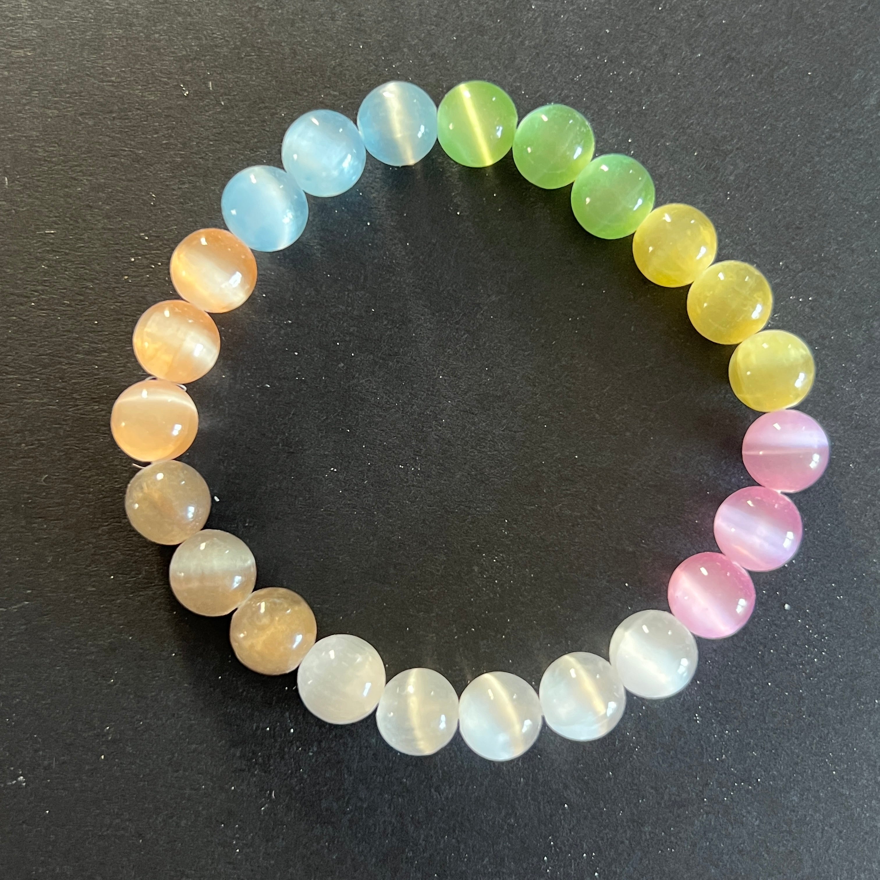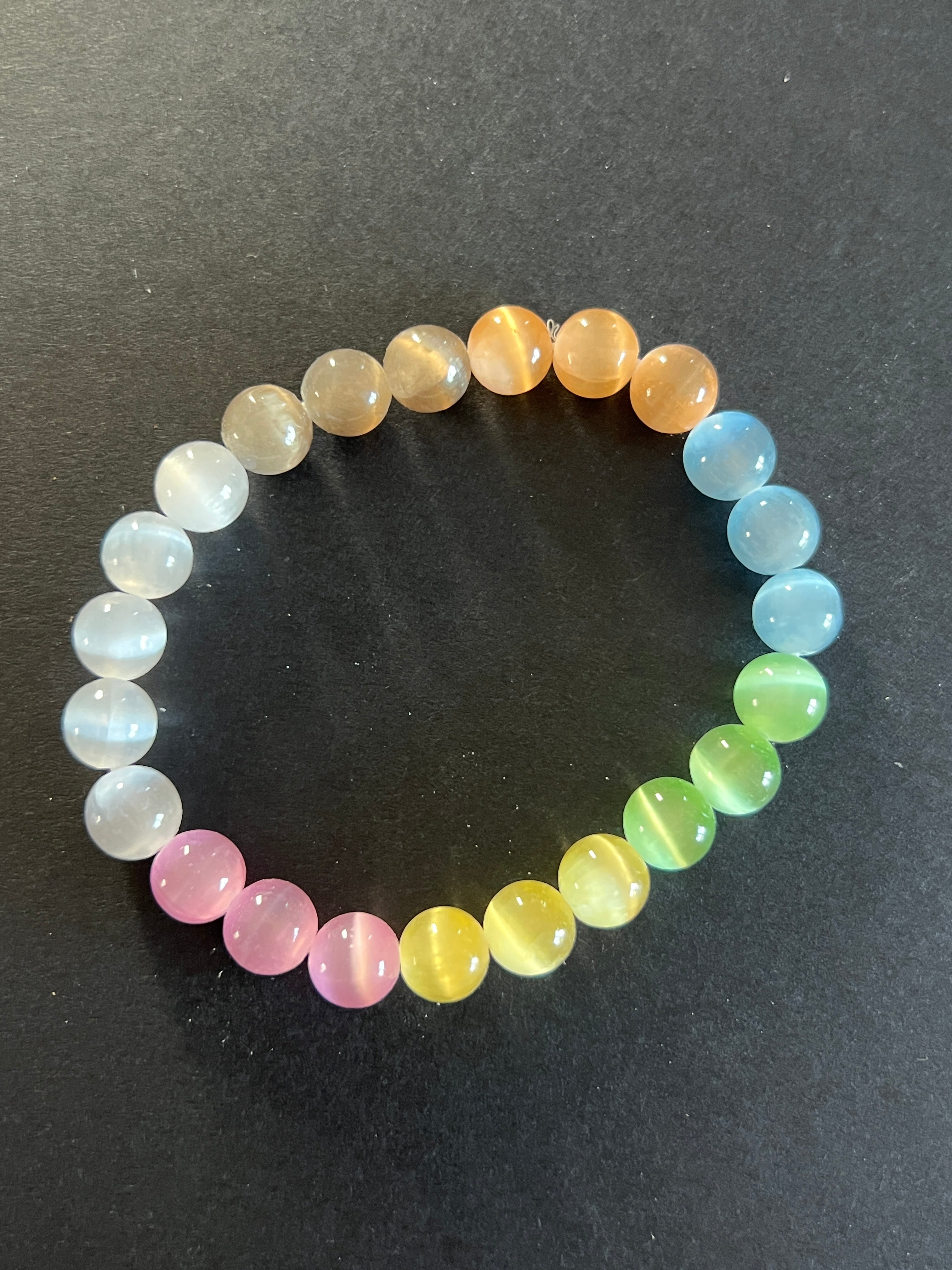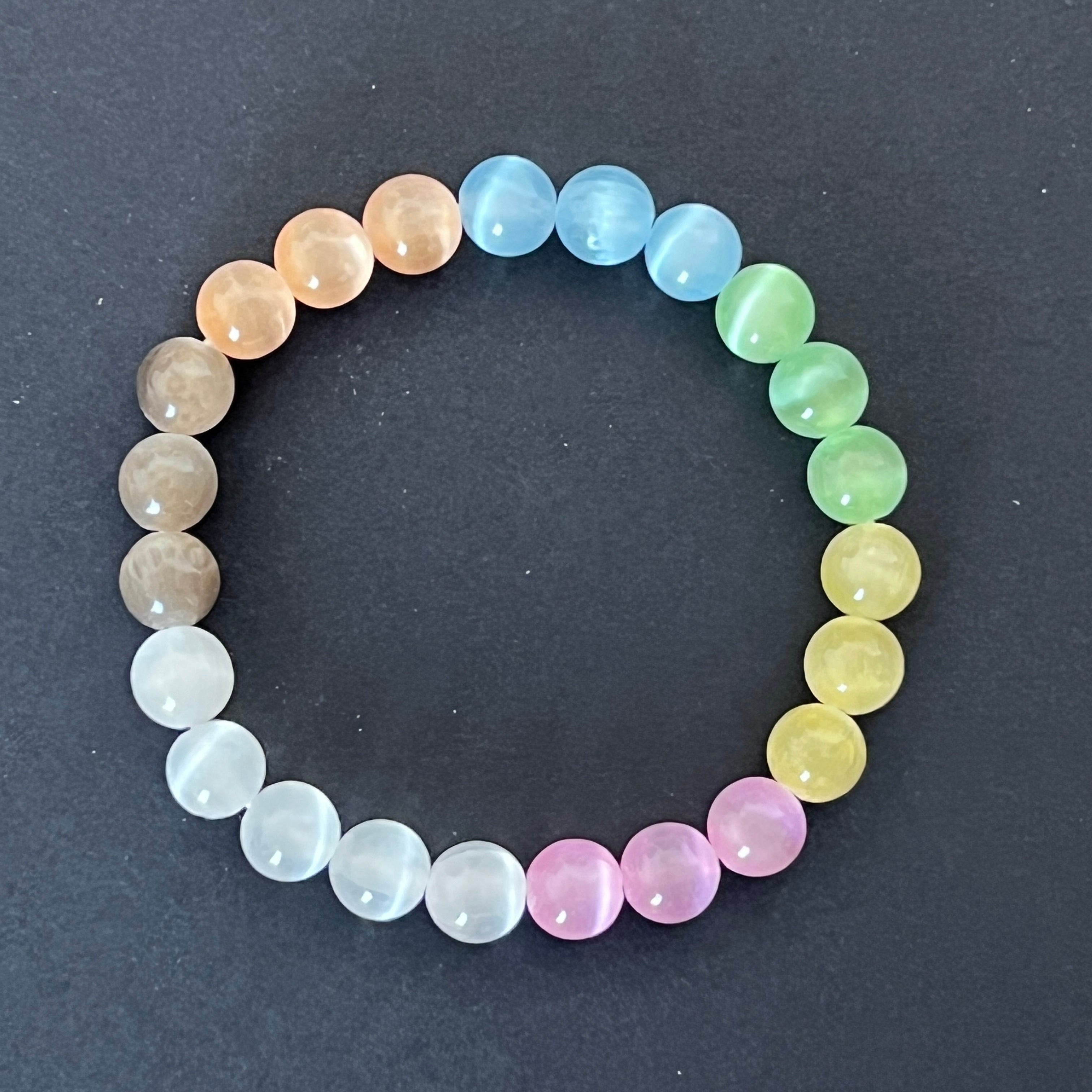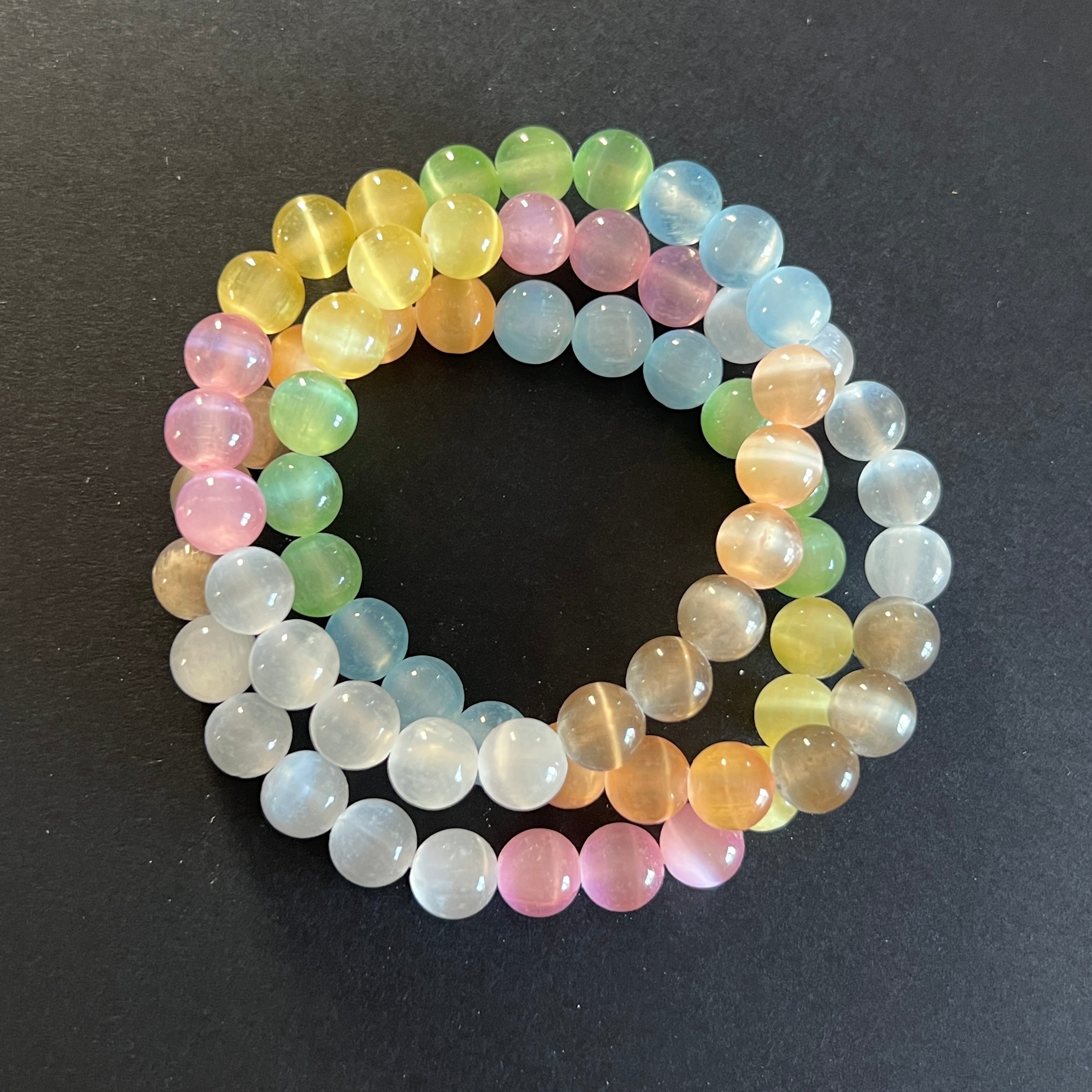 Bransoletka kolorowe kulki wykonane z selenitu 8 mm