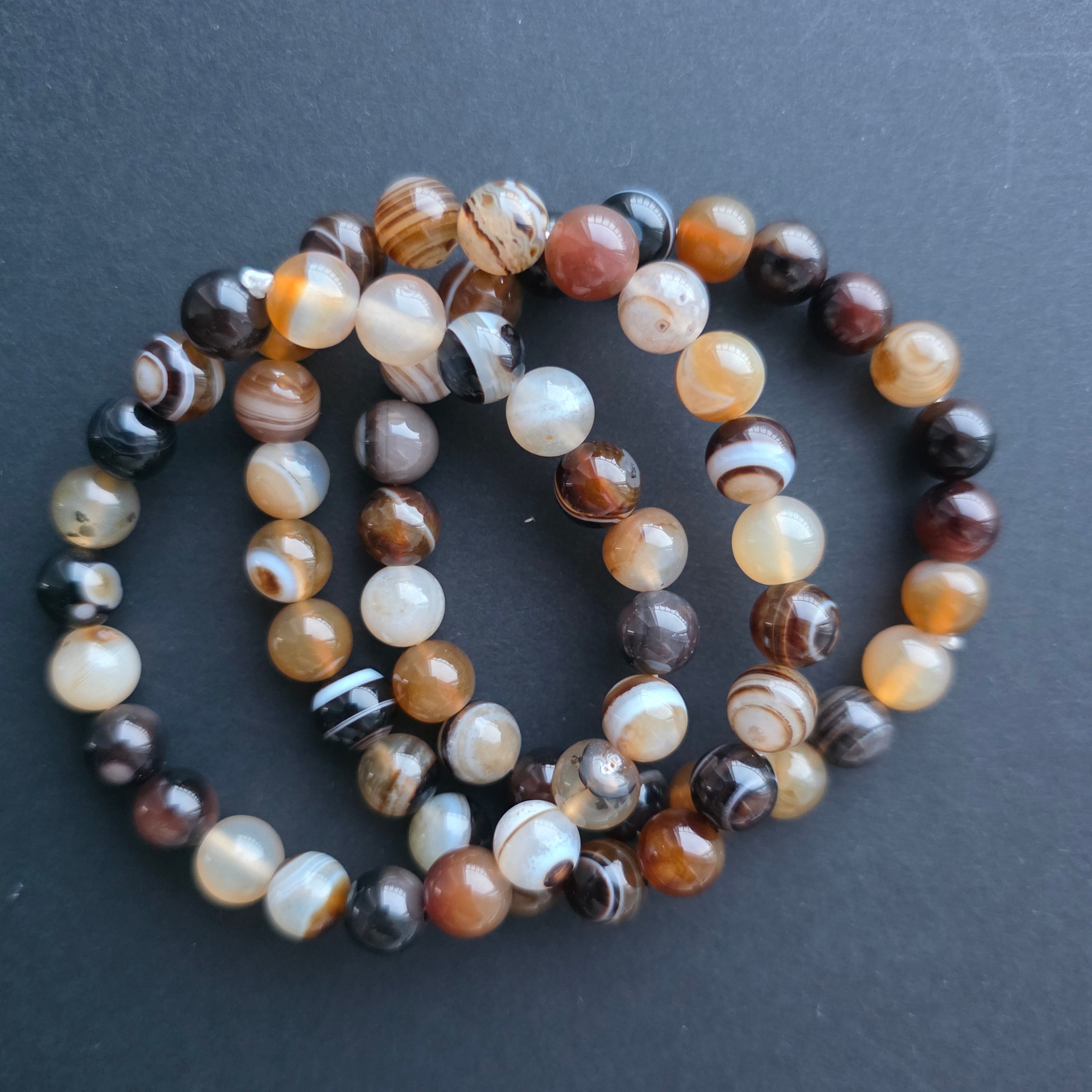 • Tekstura: błyszcząca powierzchnia, masywne koraliki z naturalnymi rysunkami i pasami charakterystycznymi dla agatu