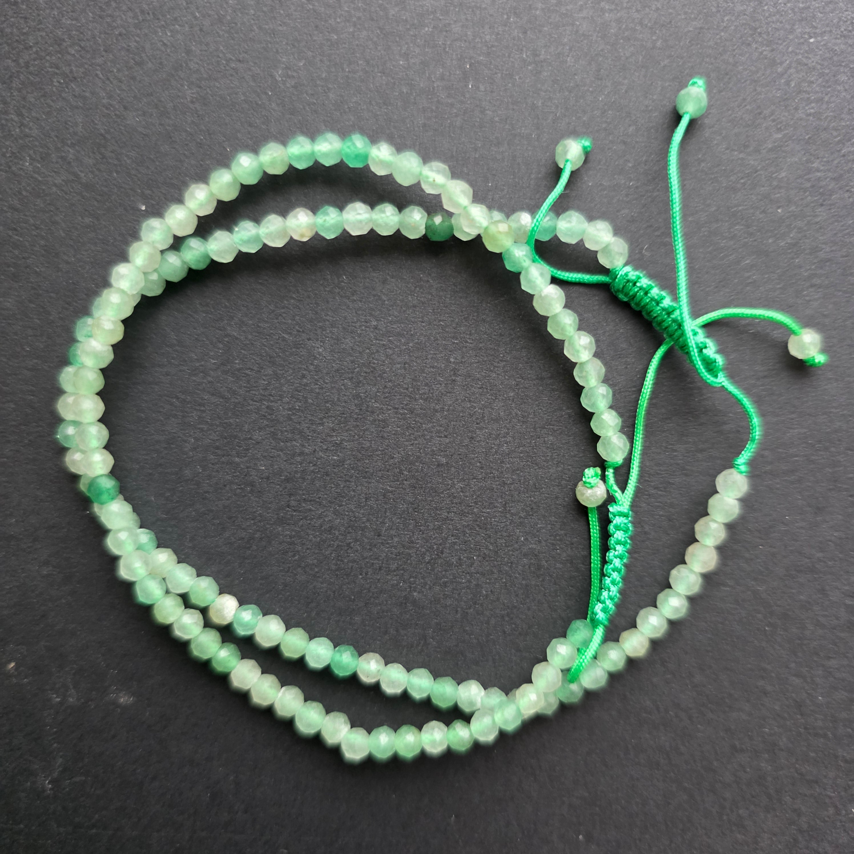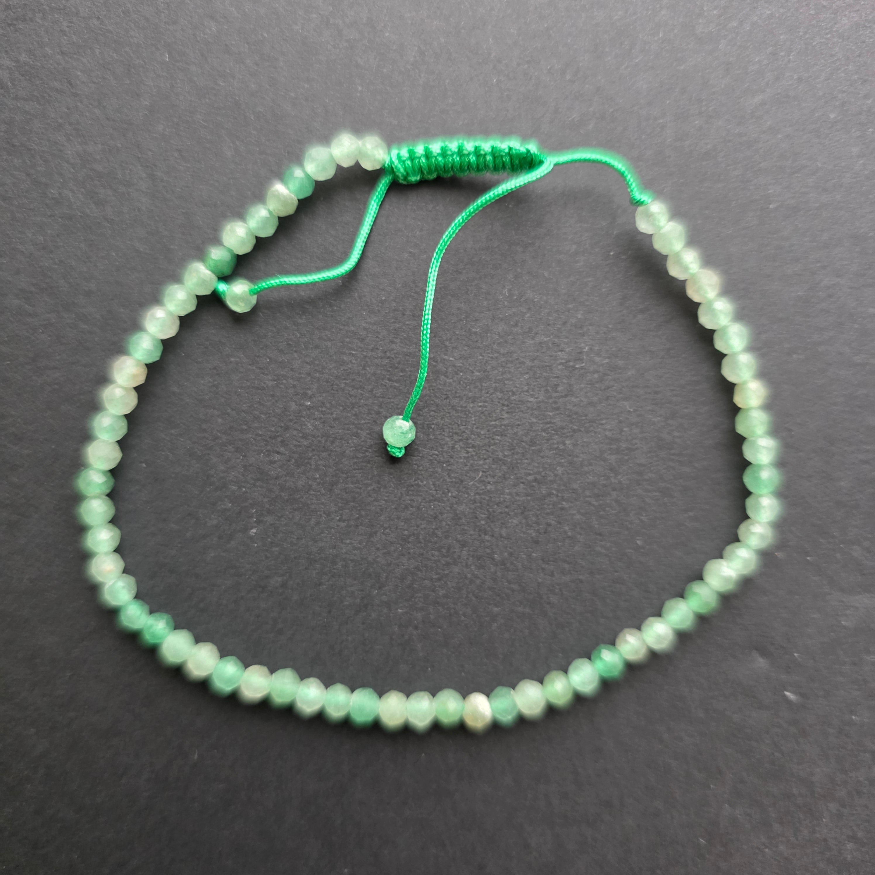 Bransoletka z fasetowanego zielonego awenturynu, regulowany sznurek 3 mm