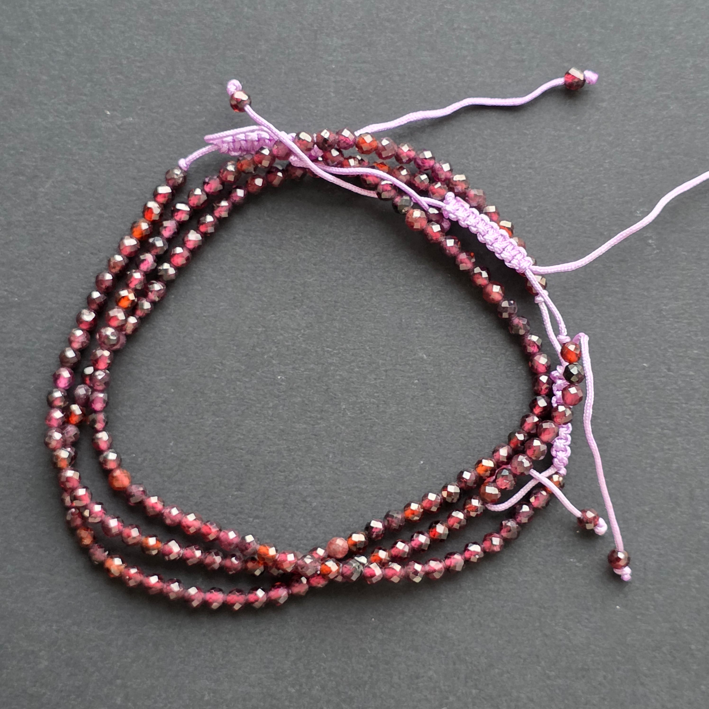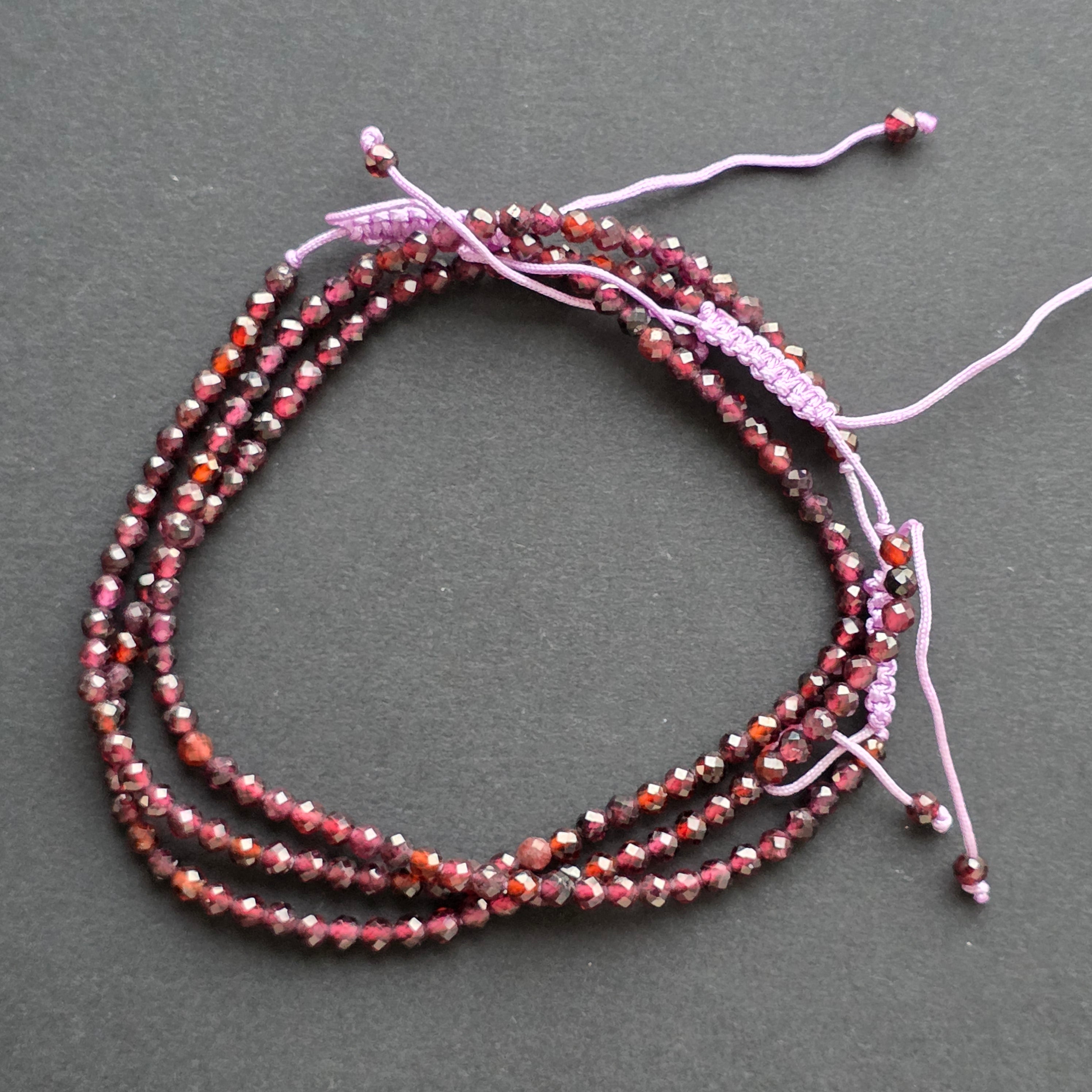 Bransoletka z fasetowanym granatem 3 mm, regulowany sznurek