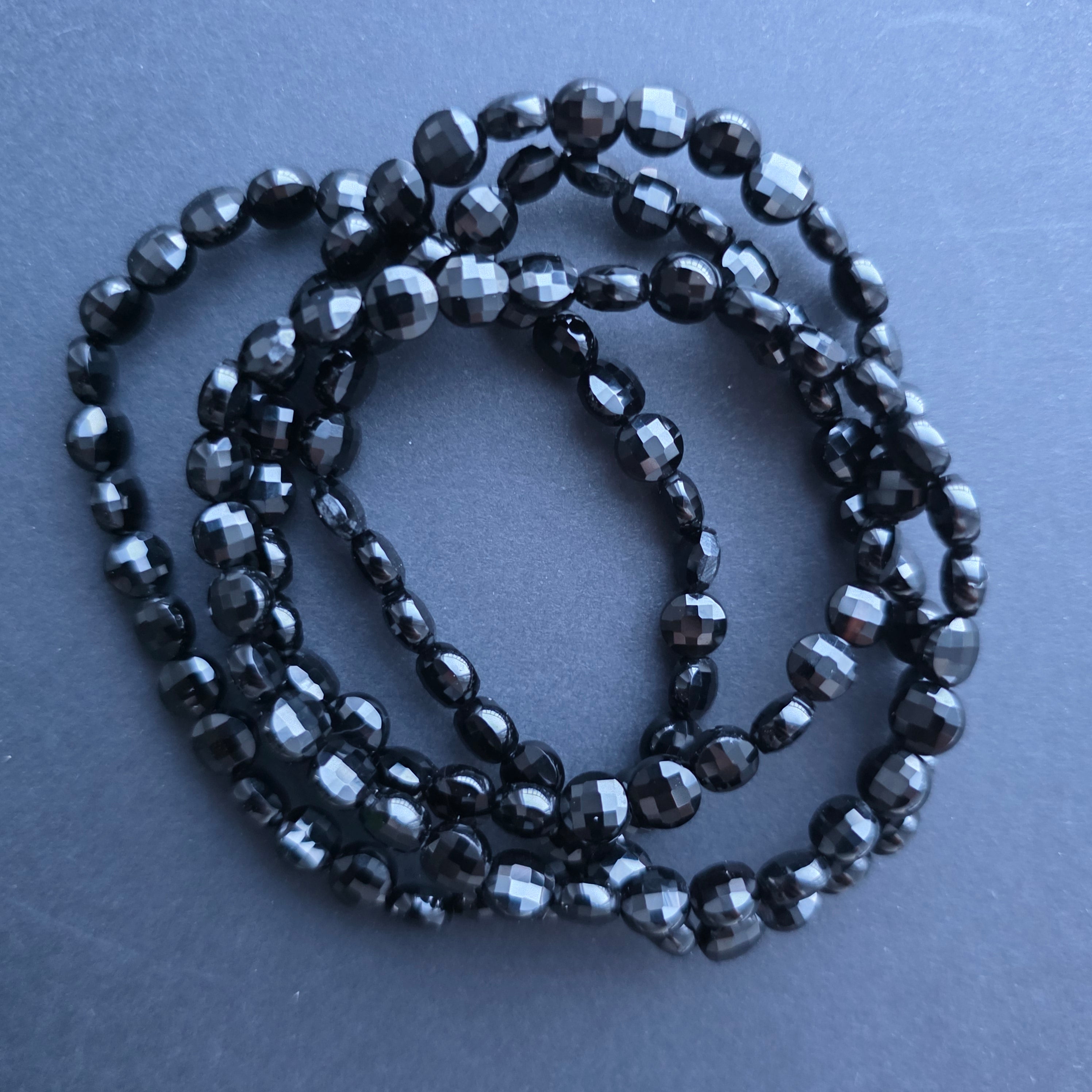 Opis - Bransoletka z fasetowanymi dyskami czarny matowy onyks 6x4 mm