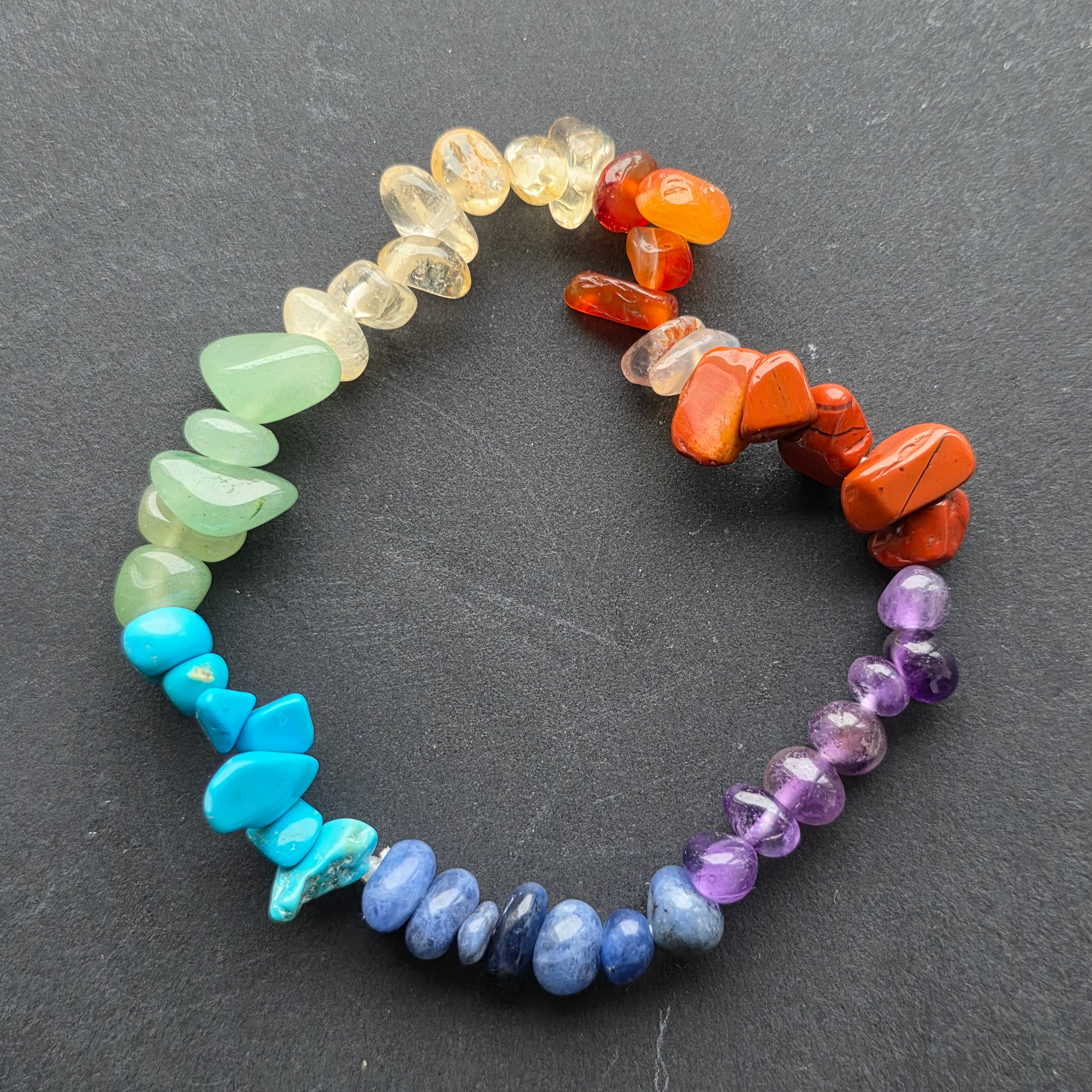 • Pietre: mix natural specific celor 7 chakre (roșu, portocaliu, galben, verde, albastru deschis, albastru închis, violet)
