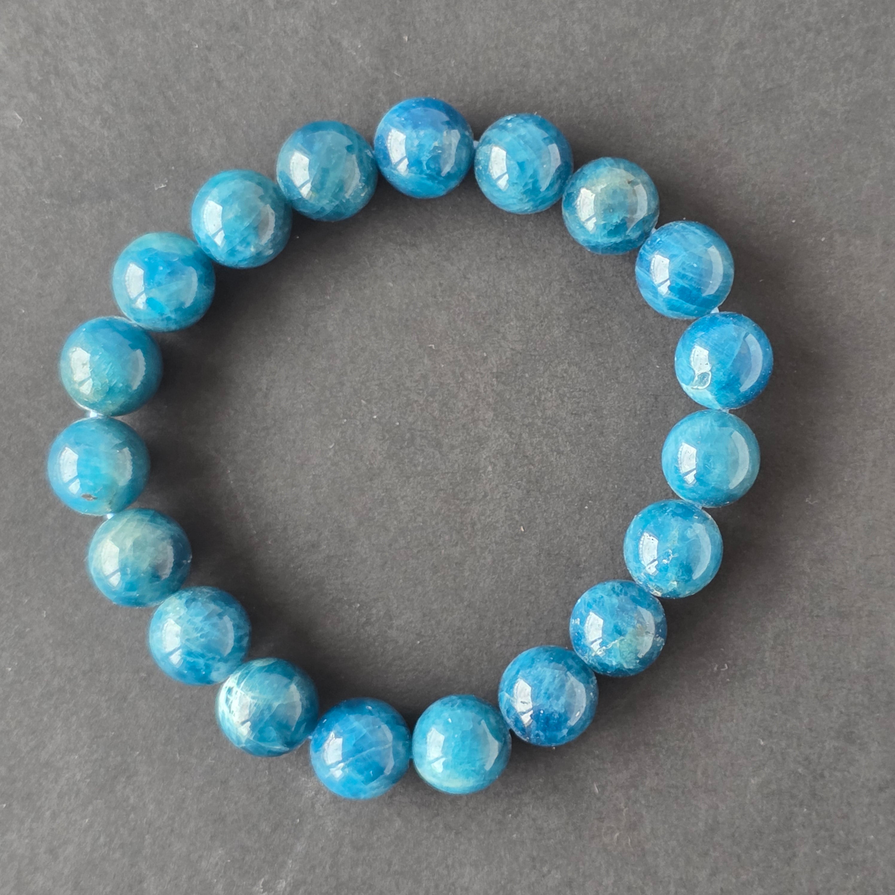 Apatitul albastru este recunoscut pentru faptul că ajută la îmbunătățirea comunicării și a exprimării, fiind util pentru cei care suferă de anxietate socială sau de frică de a vorbi în public. De asemenea, se spune că această piatră ajută la sporirea creativității și a înțelegerii.