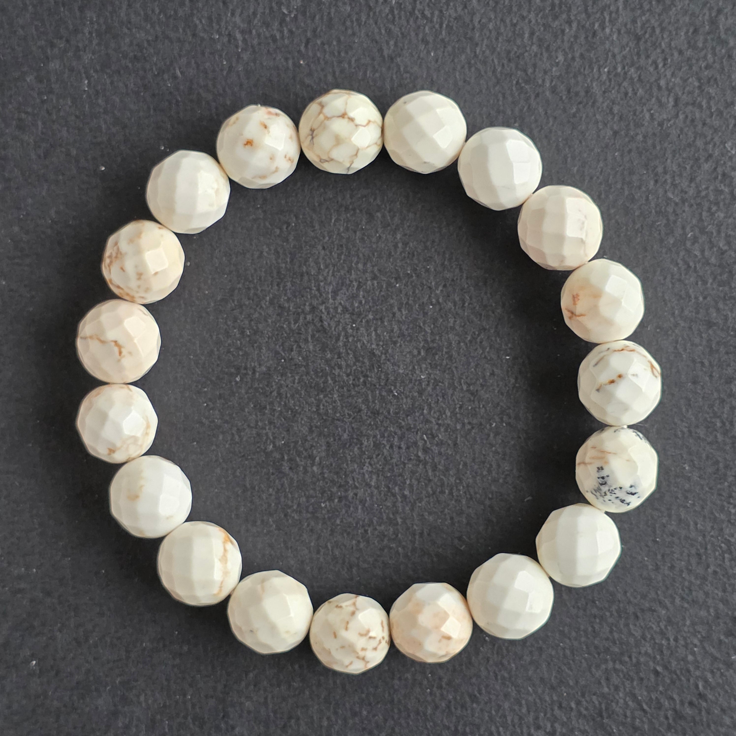 Opis - Bratara fatetata howlit alb 9-10 mm