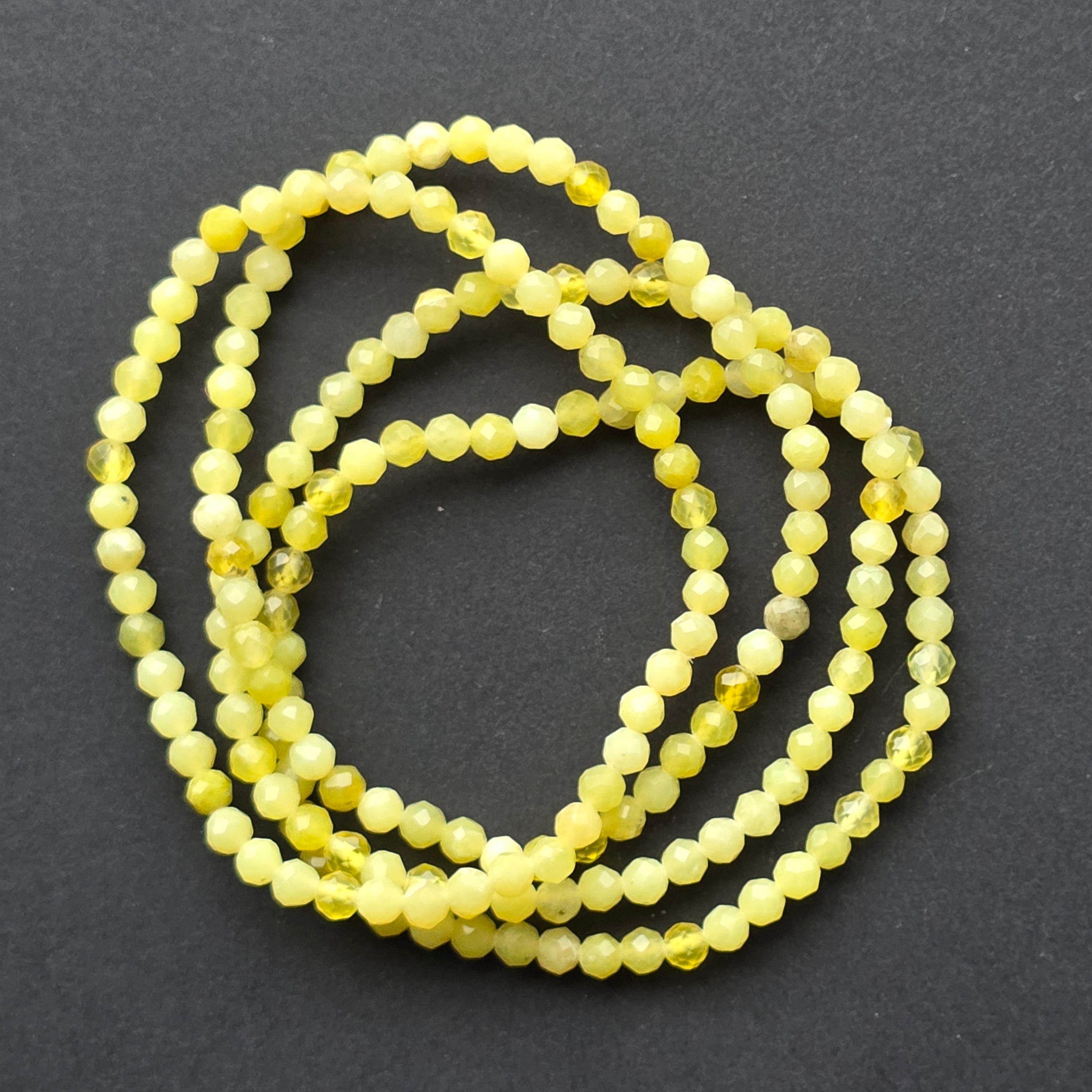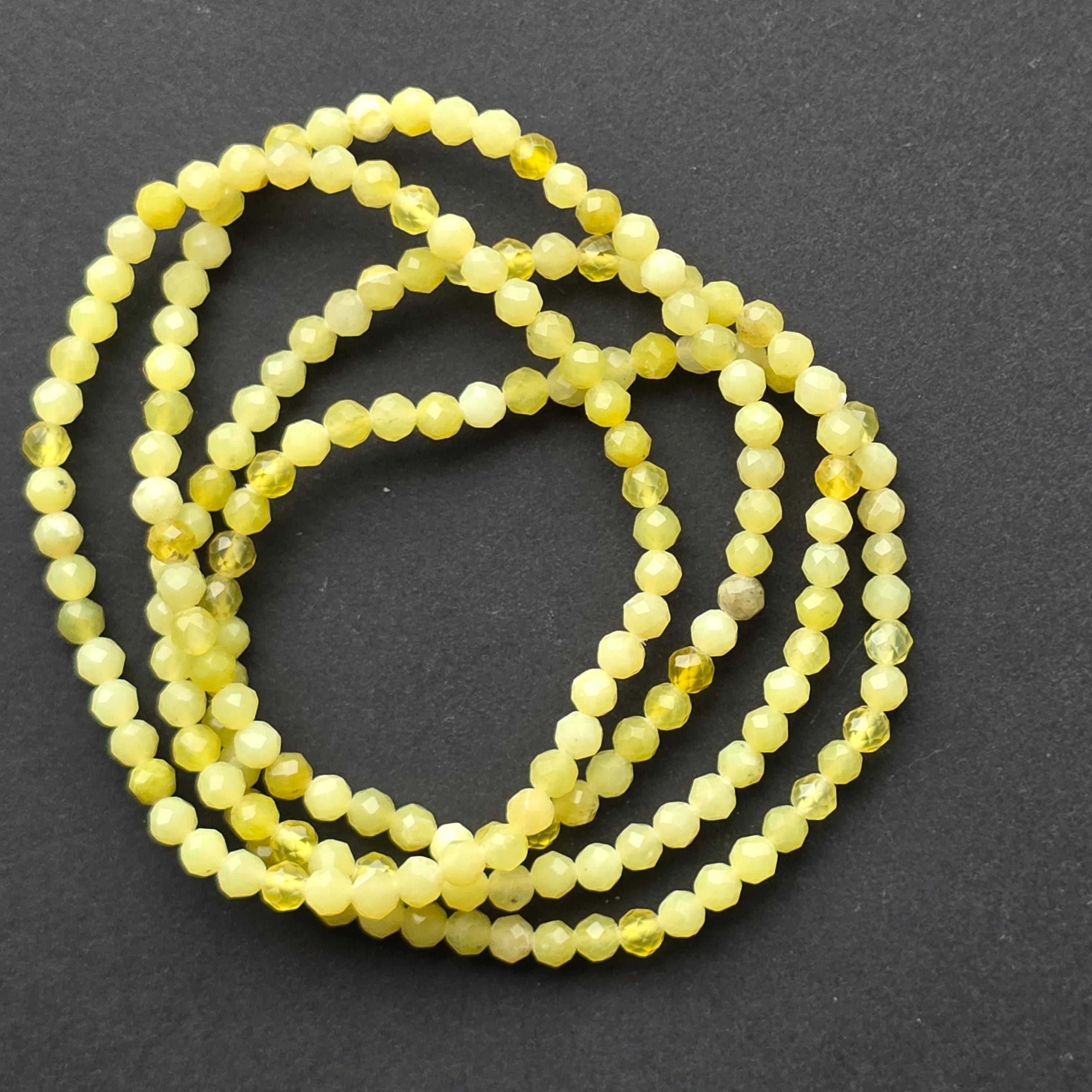 Brățara din jad galben este o bijuterie luminoasă, cu o energie solară care atrage instant privirea. Mărgelele mici, perfect fațetate, surprind lumina în scântei subtile, transformând fiecare mișcare a mâinii într-un joc cald de reflexii aurii.