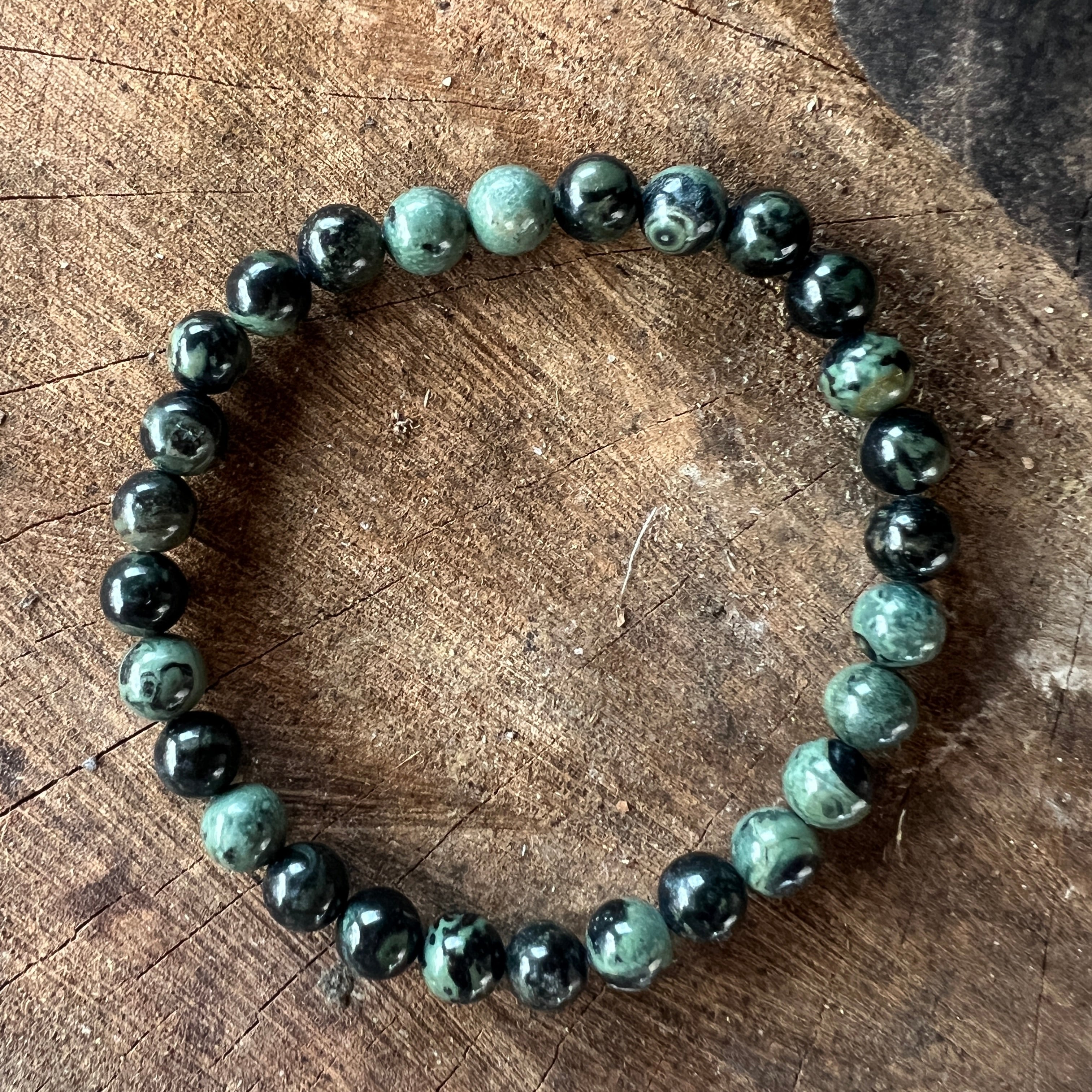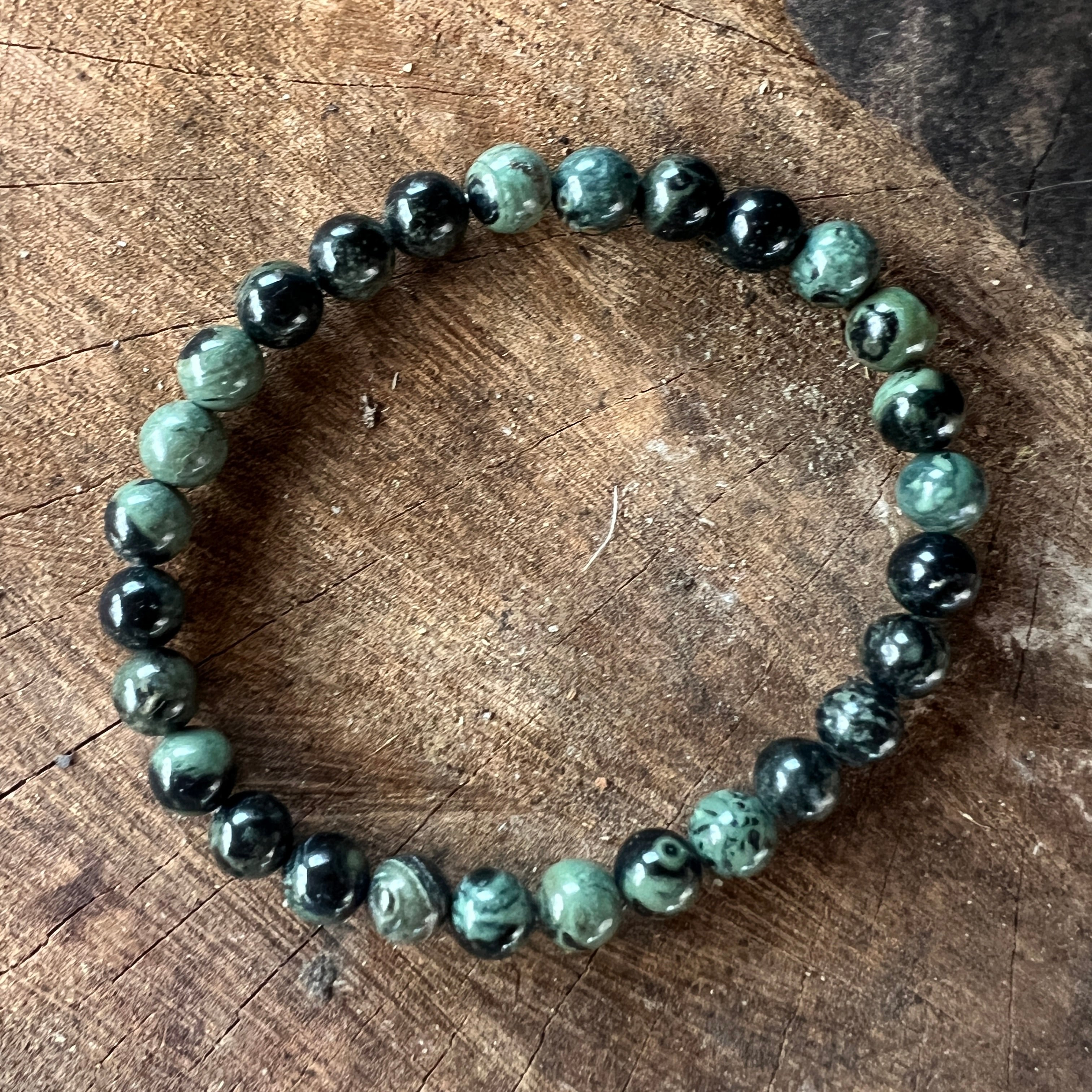 Kambaba Jasper jest szczególnie związany z czakrą serca (czakra 4) i czakrą korzeniową (czakra 1).