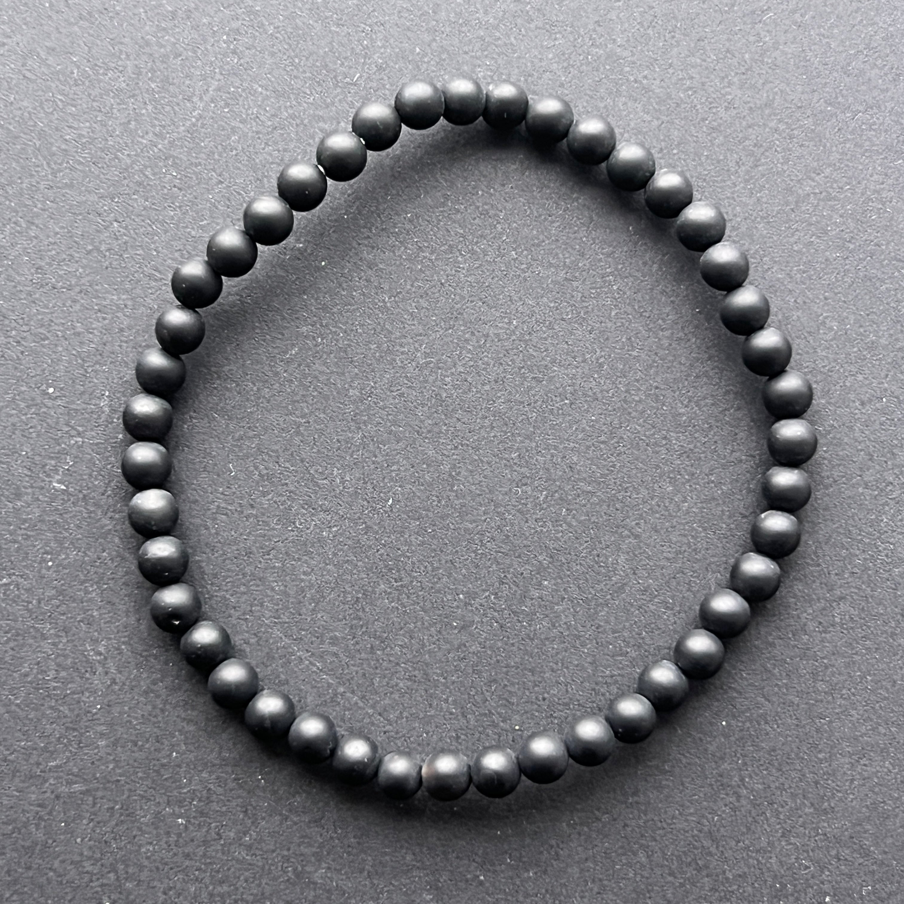 • Piatra: onix negru natural – mărgele sferice 4–5 mm, finisaj mat