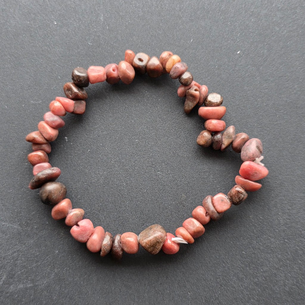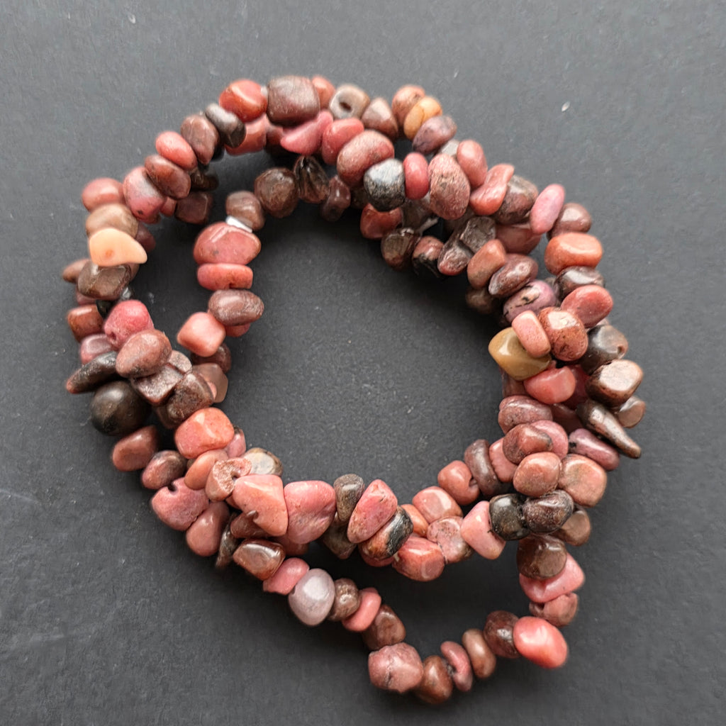 • Piatra: rodonit natural (chipsuri neregulate, șlefuite manual)