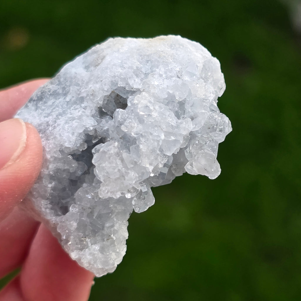 Celestyt to półszlachetny kamień w kolorze niebieskim lub bezbarwnym, składający się z siarczanu strontu. Ma właściwości uspokajające i relaksujące, często stosowany jest w medytacji i praktykach duchowych, aby wspierać wewnętrzny spokój i jasność umysłu. Celestyt jest związany z czakrą gardła i może pomagać w klarownej komunikacji oraz wyrażaniu emocji. Wierzy się również, że zwiększa kreatywność, intuicję i zdolności psychiczne.