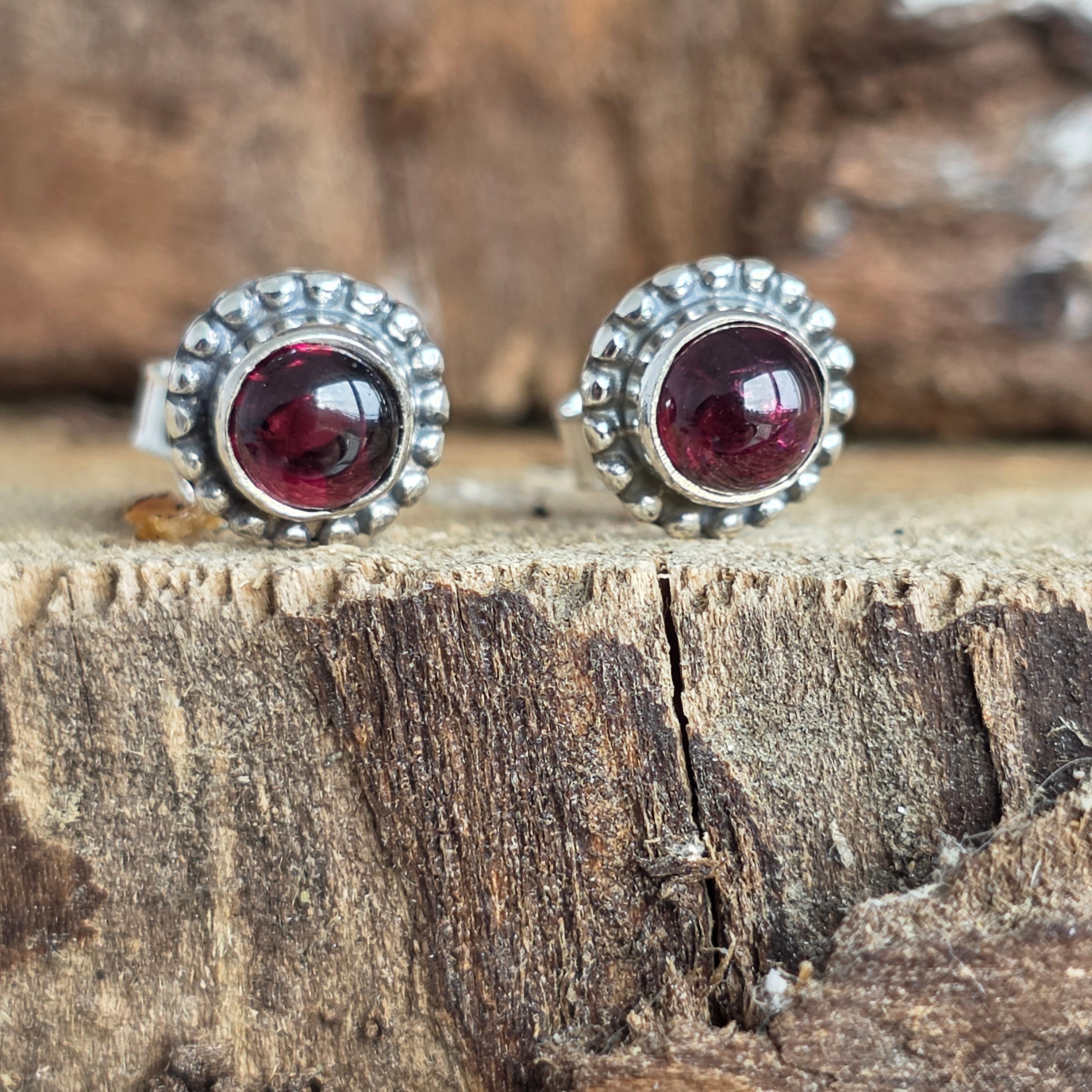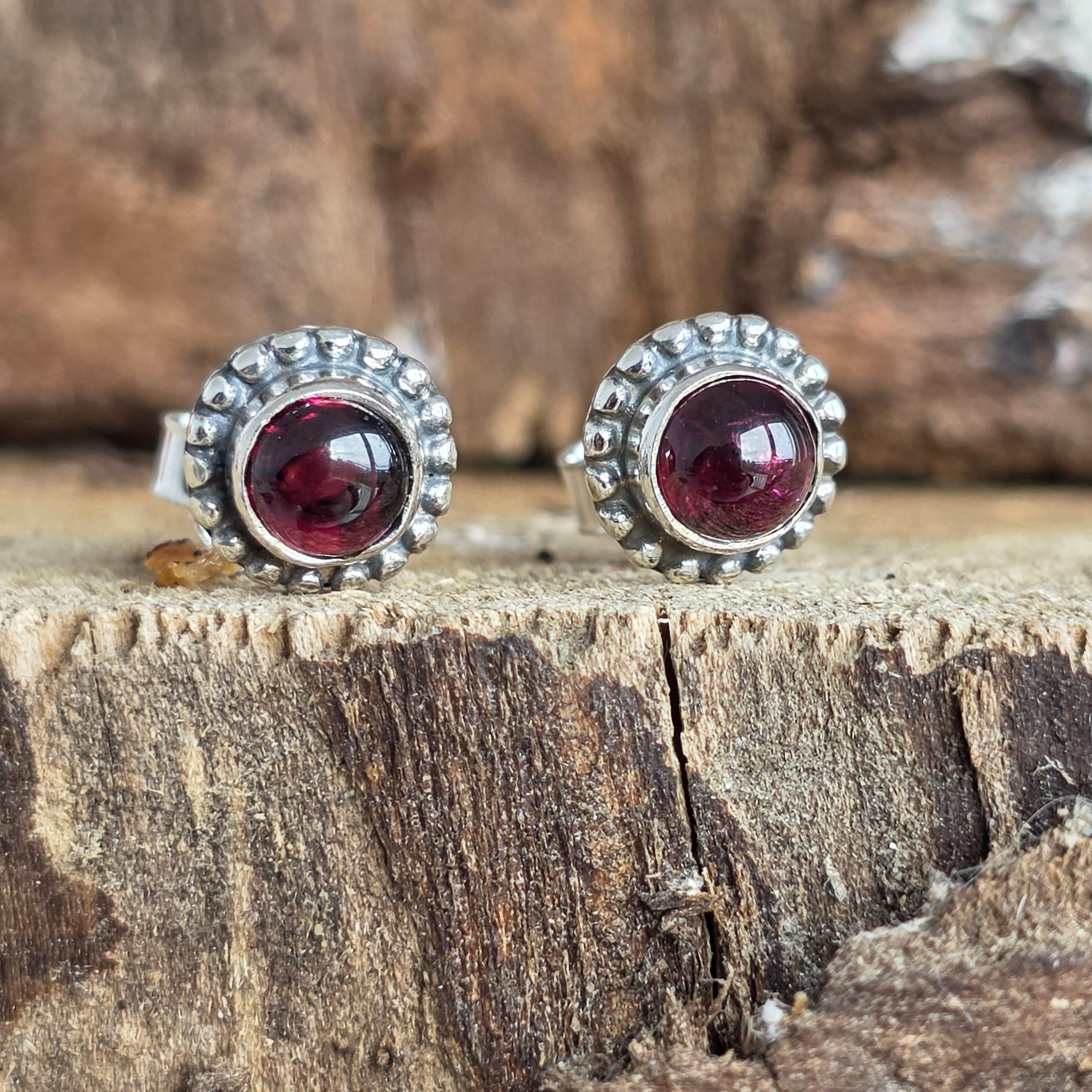 • Piatra: granat natural (nuanță roșu-rubiniu intens, translucid)