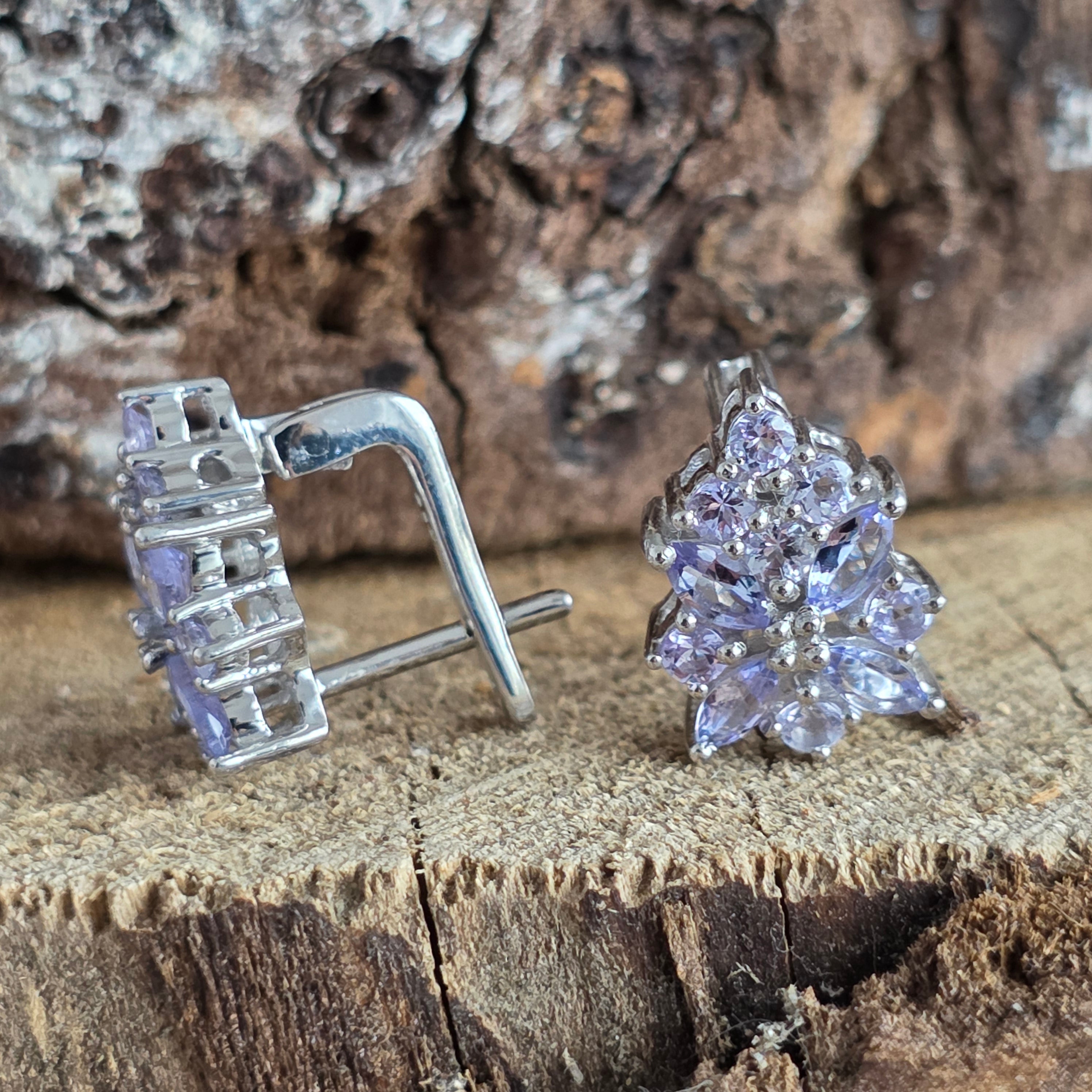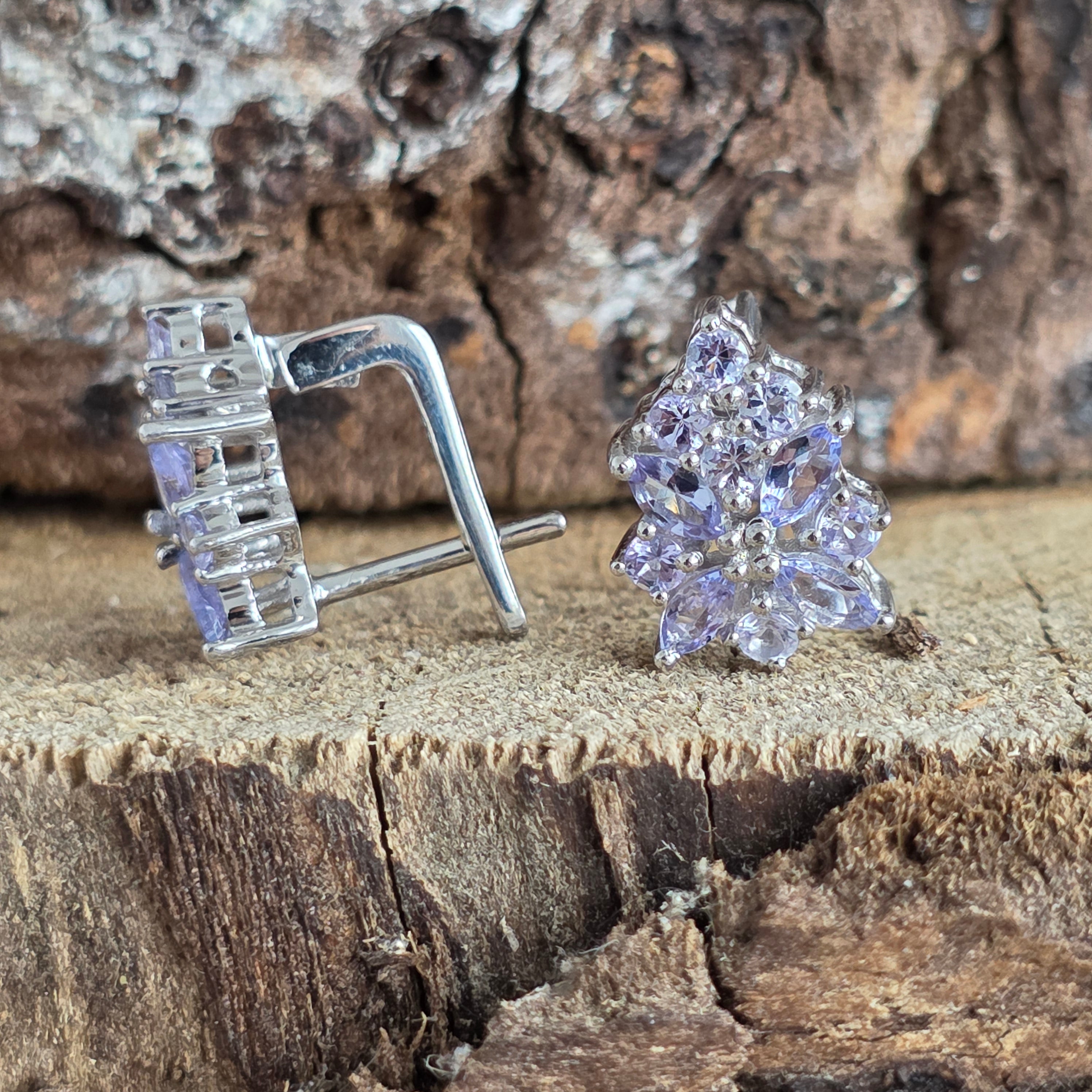 Acești cercei eleganți din argint 925 rodiat poartă farmecul subtil al pietrei de tanzanit, o gemă rară care radiază nuanțe de albastru, violet și lavandă în funcție de lumină.