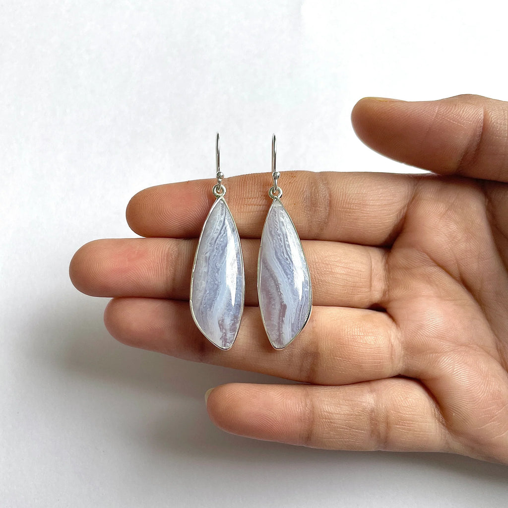 Opis - Cercei calcedonie albastra/ blue lace din argint | Model 1