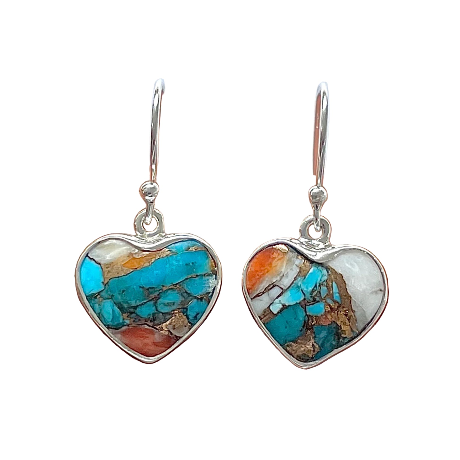 Acești cercei inimă din argint 925 cu Spiny Oyster Turquoise aduc la viață frumusețea oceanului și a apusurilor de foc. Piatra naturală combină turcoaz intens, fragmente albe sidefate și accente portocalii vibrante, creând un tablou mineral plin de contrast și armonie. Fiecare pereche este unicat, sculptată de natură și finisată manual pentru a evidenția autenticitatea.