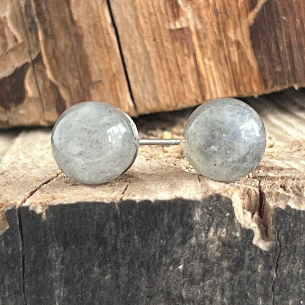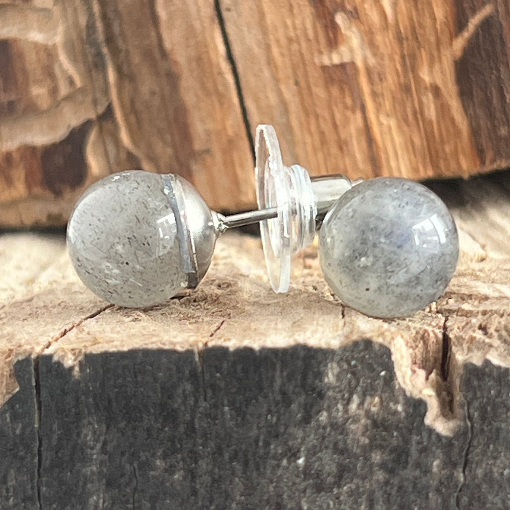 Acești cercei stud din labradorit natural poartă misterul nordului și lumina adâncurilor cerești. Fiecare sferă ascunde o paletă de nuanțe hipnotice – albastru electric, gri sidefat, uneori chiar tonuri aurii – care se schimbă odată cu mișcarea și lumina.