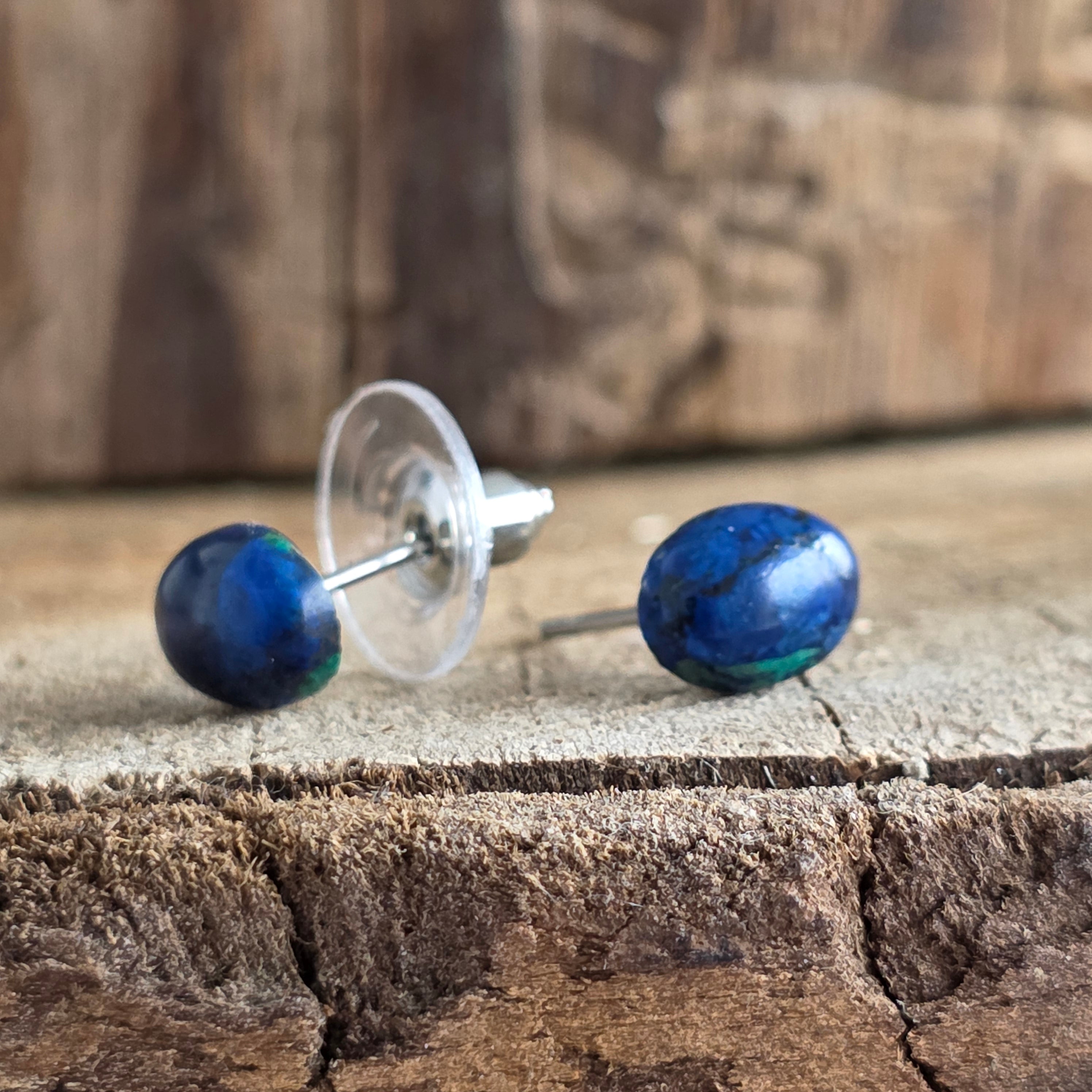 Cercei stud oval azurit-malachit